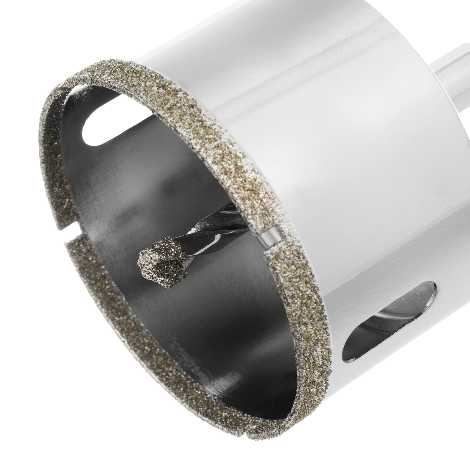 - Легкое засверливание — благодаря центрирующему сверлу коронку не уводит в сторону.