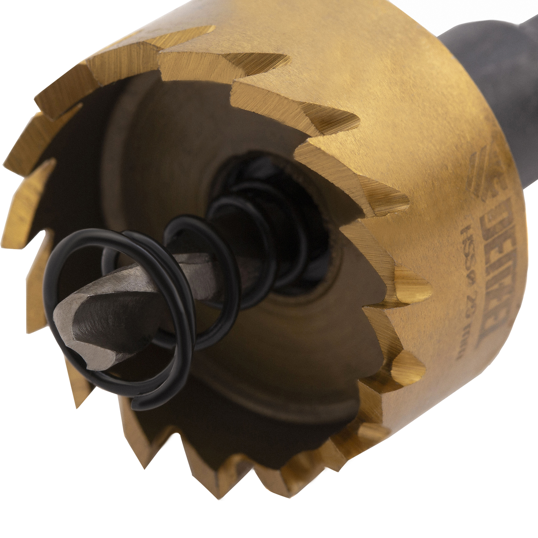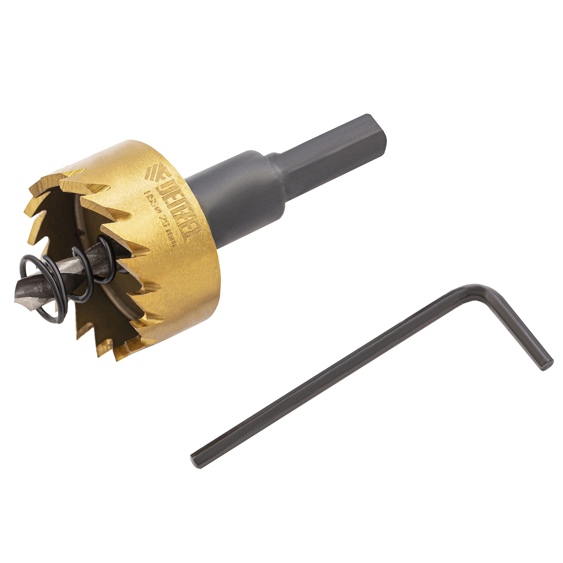 Коронка Denzel 724107 диаметром 29 мм, из стали HSS, с нитридтитановым покрытием, применяется для сверления отверстий в черных, цветных металлах, пластике и других материалах. Рассчитана на профессиональное использование на строительной площадке. Коронка пригодится при прокладке коммуникаций, монтаже оборудования, крепежных элементов и различных конструкций.