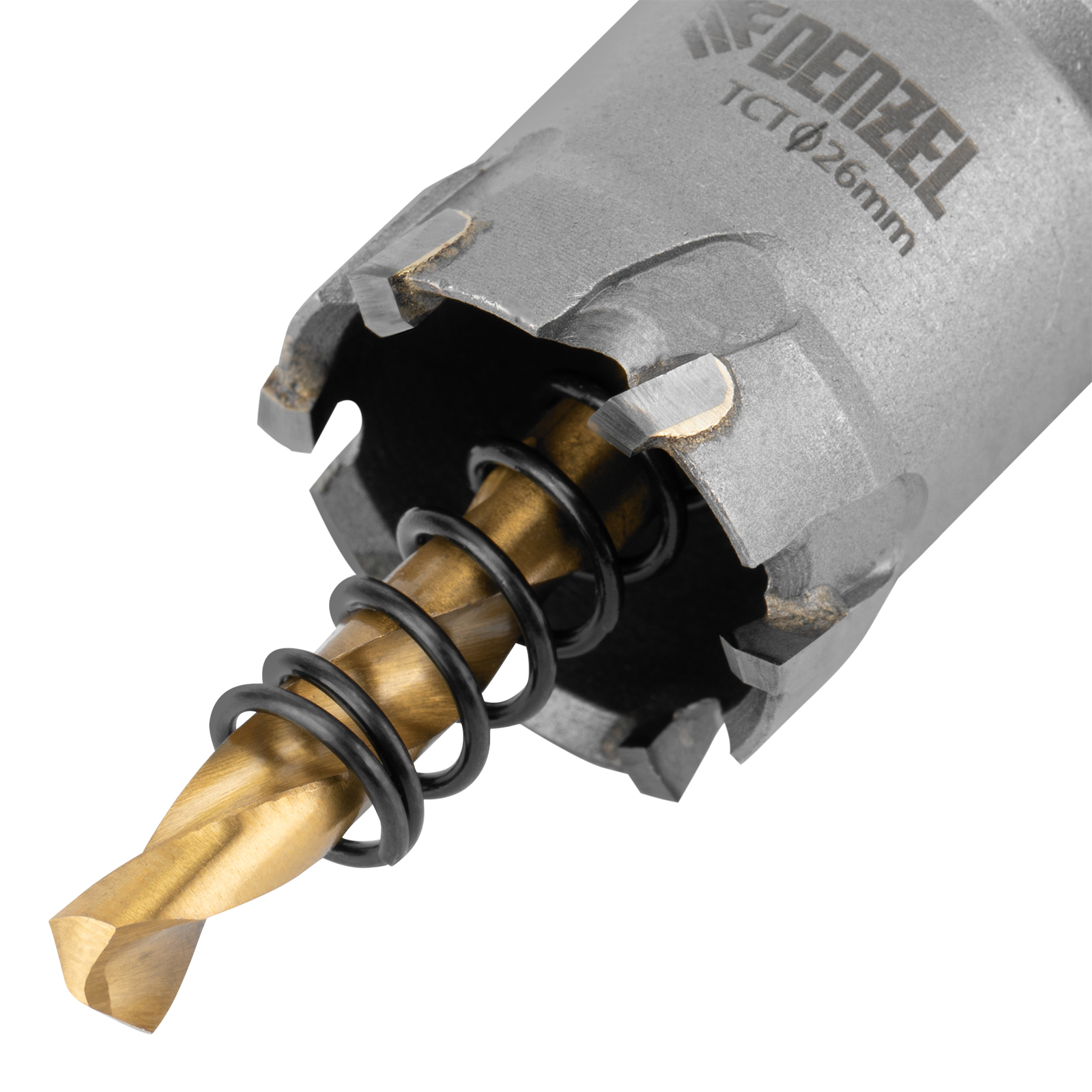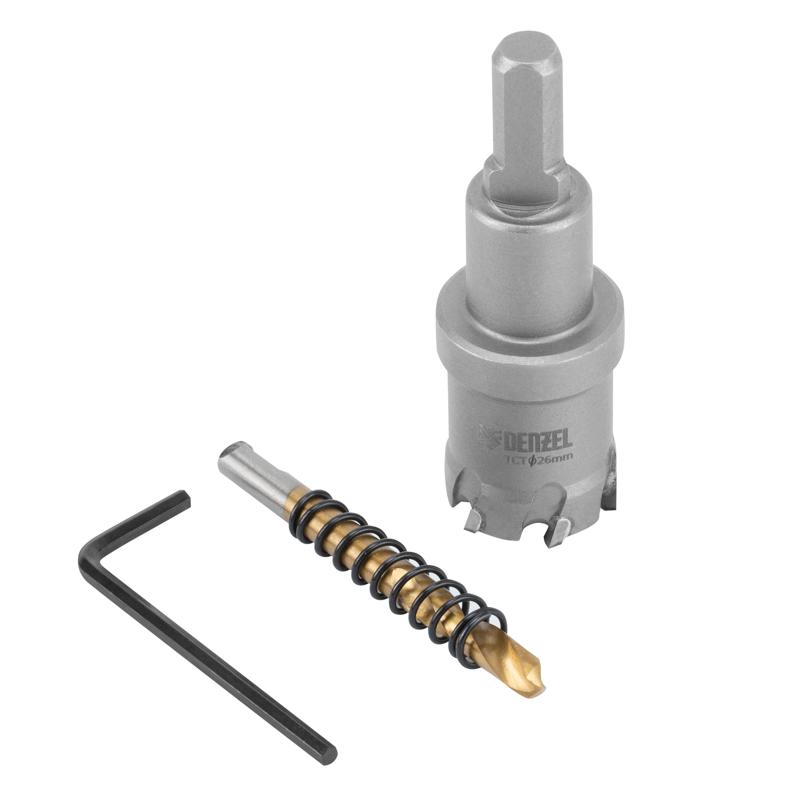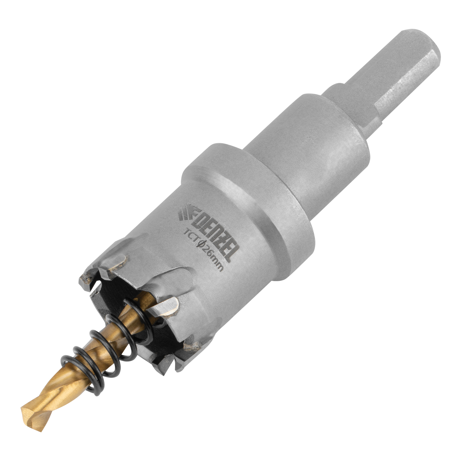 Твердосплавная коронка Denzel 724006 диаметром 26 мм используется для сверлильных работ по черным, цветным металлам, пластику и другим материалам. Позволяет получить отверстия большего диаметра в сравнении с обычным сверлом. Твердосплавные зубья легко выдерживают интенсивные нагрузки, поэтому коронка подходит не только для бытового, но и для профессионального применения.