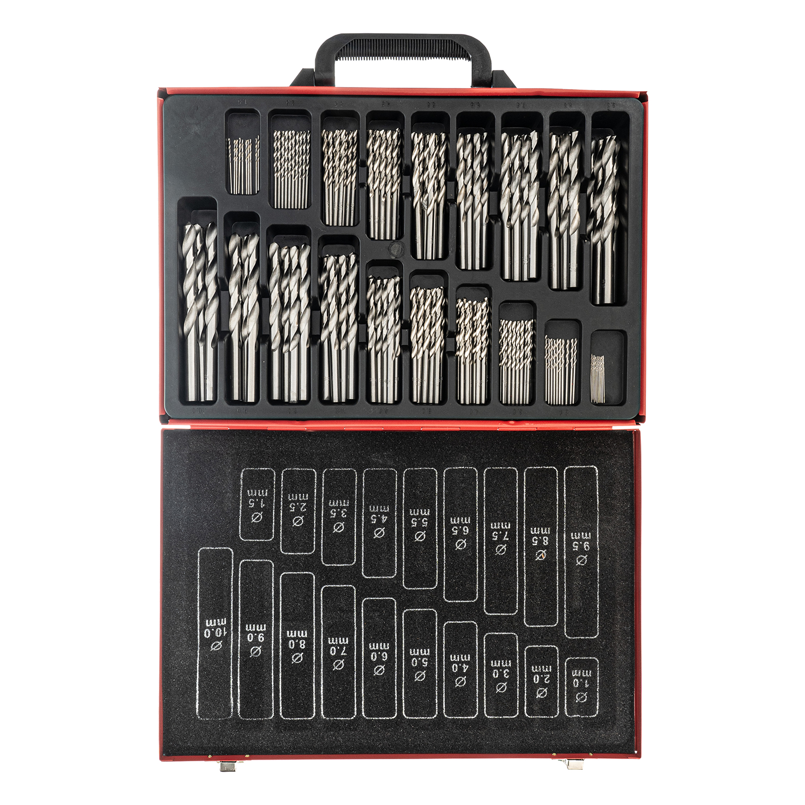 Набор Matrix 723170 включает в себя 170 сверл по металлу из стали HSS, диаметром 1-10 мм, упакованных в металлический кейс. Угол заточки сверл составляет 118°, поэтому они оптимальны для обработки черных металлов, стали, чугуна и твердой бронзы. Набор пригодится в быту и на строительной площадке.