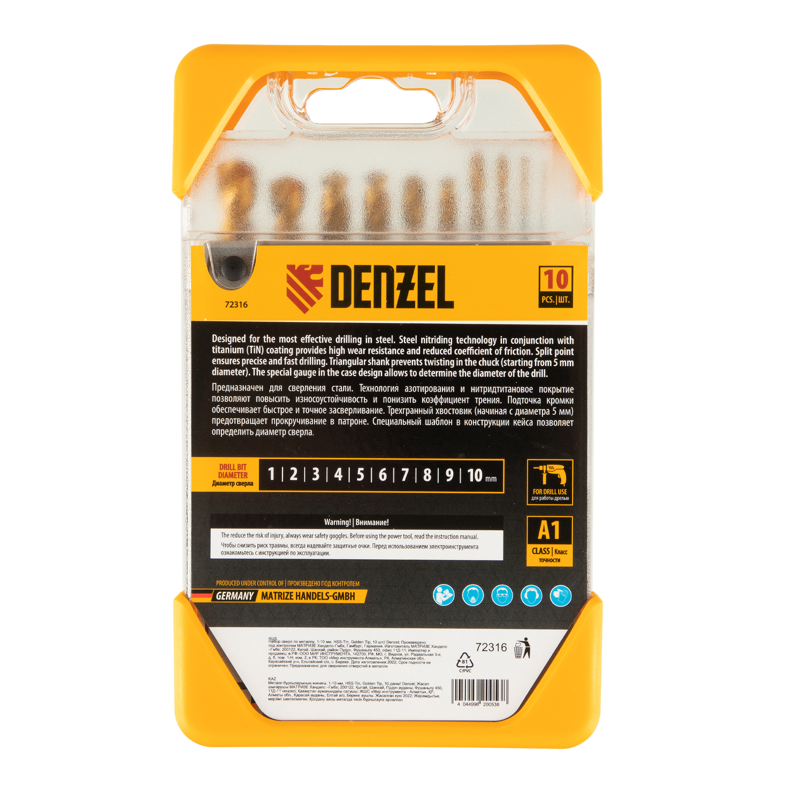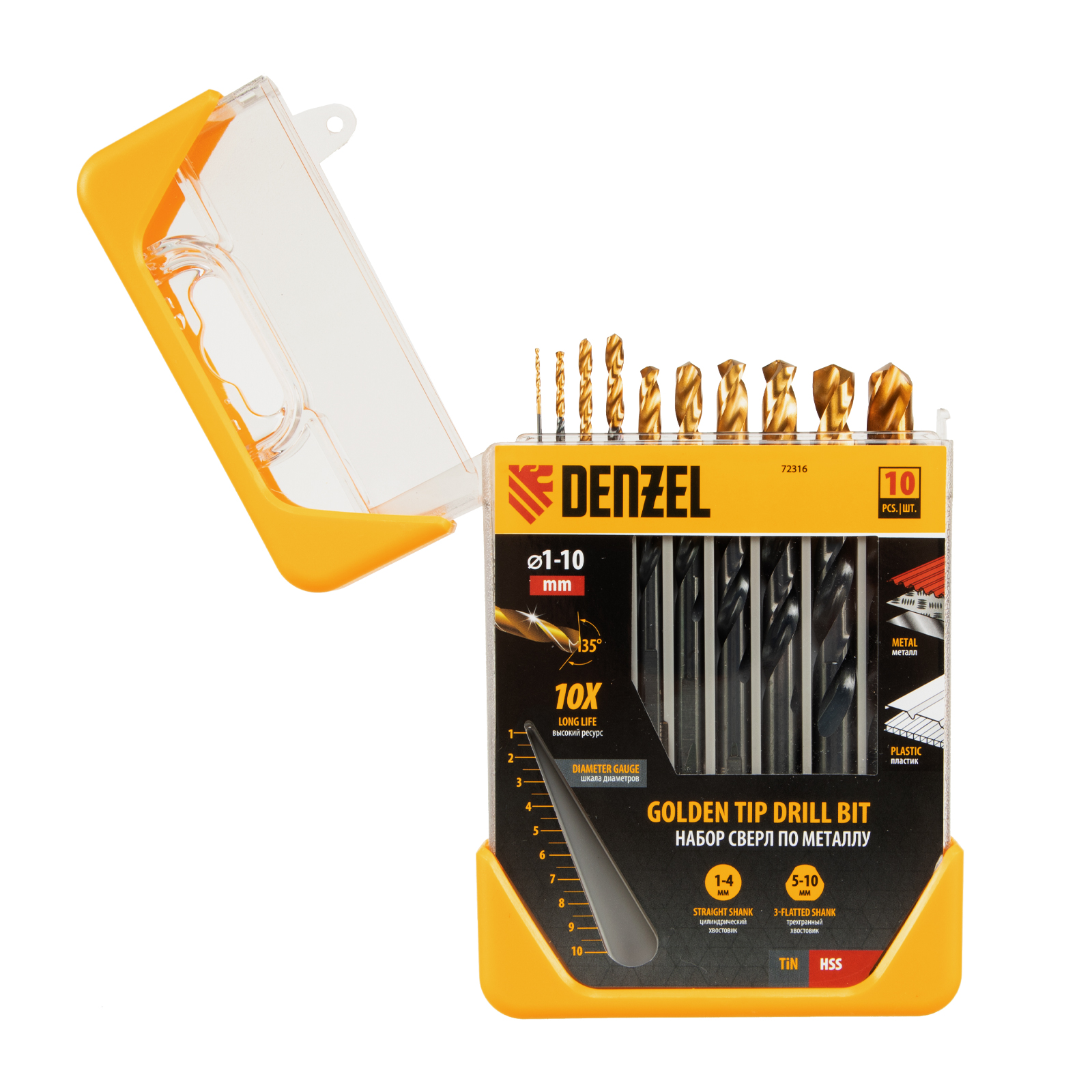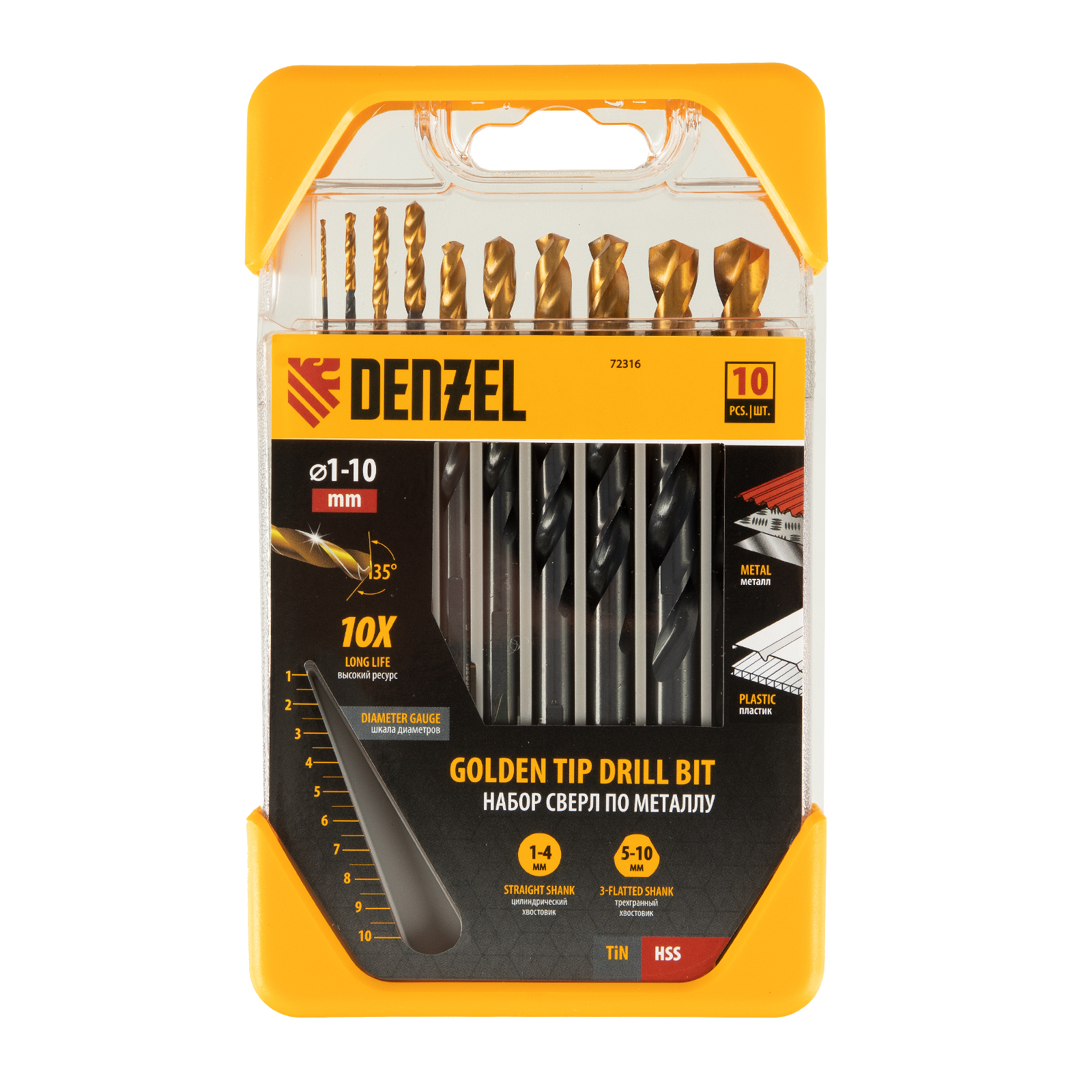 Набор Denzel Golden Tip 72316 включает 10 сверл по металлу из стали HSS-Tin, предназначенных для получения отверстий диаметром 1-10 мм в стальных заготовках. Оснастке присвоен класс точности A1: вышлифованные на высокоточном оборудовании профили имеют оптимальную геометрию, что позволяет получать идеально ровные отверстия. Сверла упакованы в пластиковый кейс, в крышке которого имеется шаблон для быстрого определения диаметра сверла. Набор будет полезен в быту и профессиональной сфере.