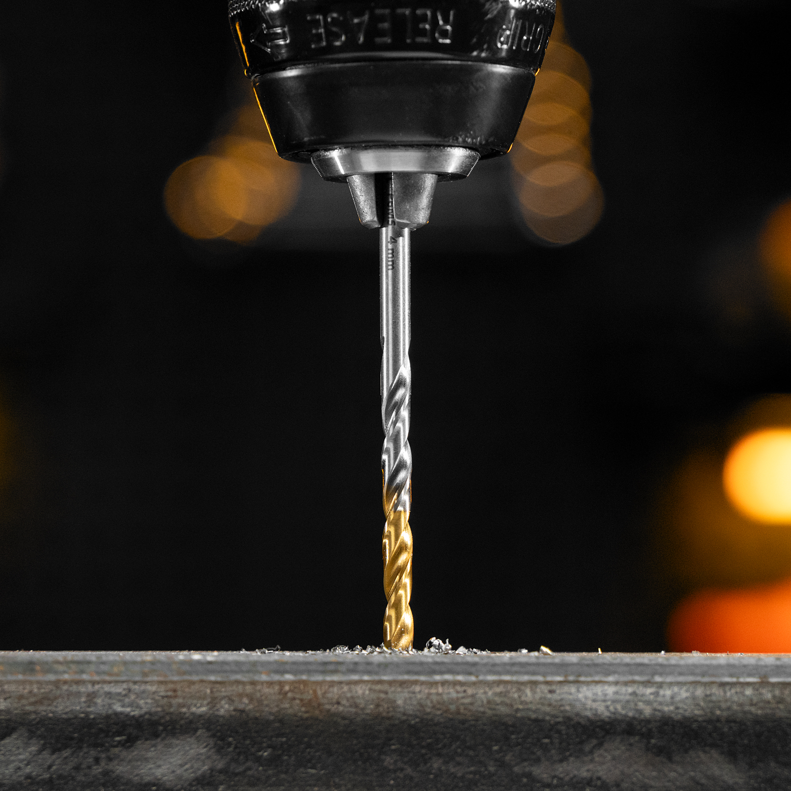 - Высокий ресурс — нитридтитановое покрытие уменьшает трение и увеличивает стойкость сверл к нагреву и износу.