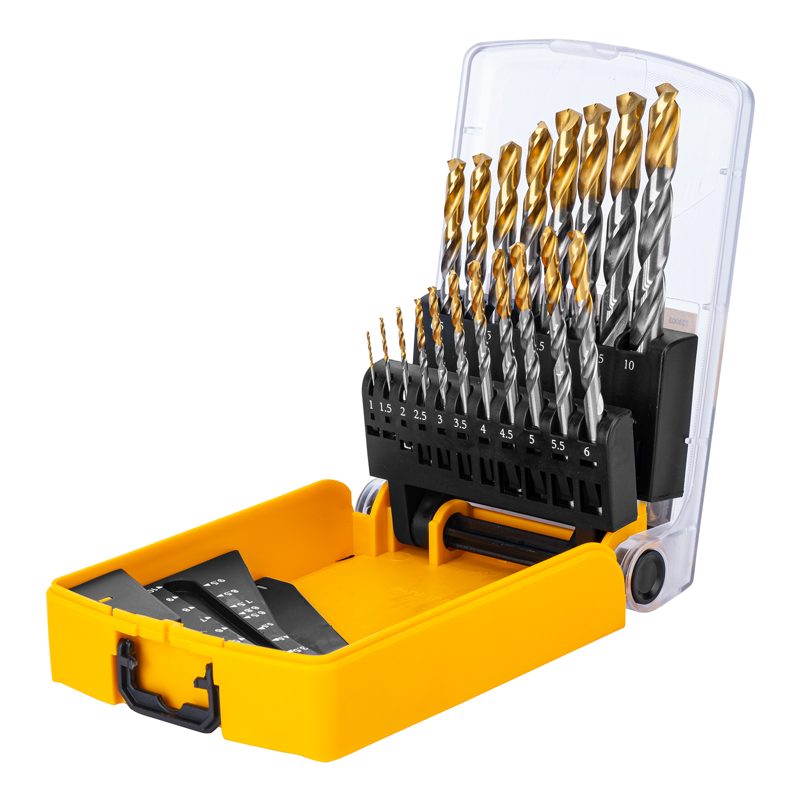 Набор Denzel Golden Tip 723003 состоит из 19 сверл по металлу диаметром 1-10 мм, изготовленных из стали P6M5. Угол заточки составляет 135°, что позволяет получать чистые и ровные отверстия в нержавеющей стали, чугуне, бронзе, алюминии, а также жестком пластике. Сверлам присвоен класс точности A1, что гарантирует высокое качество выполняемых работ. Оснастка характеризуется пониженным коэффициентом трения, что облегчает сверление и улучшает отвод стружки. Набор будет полезен дома и в мастерской.