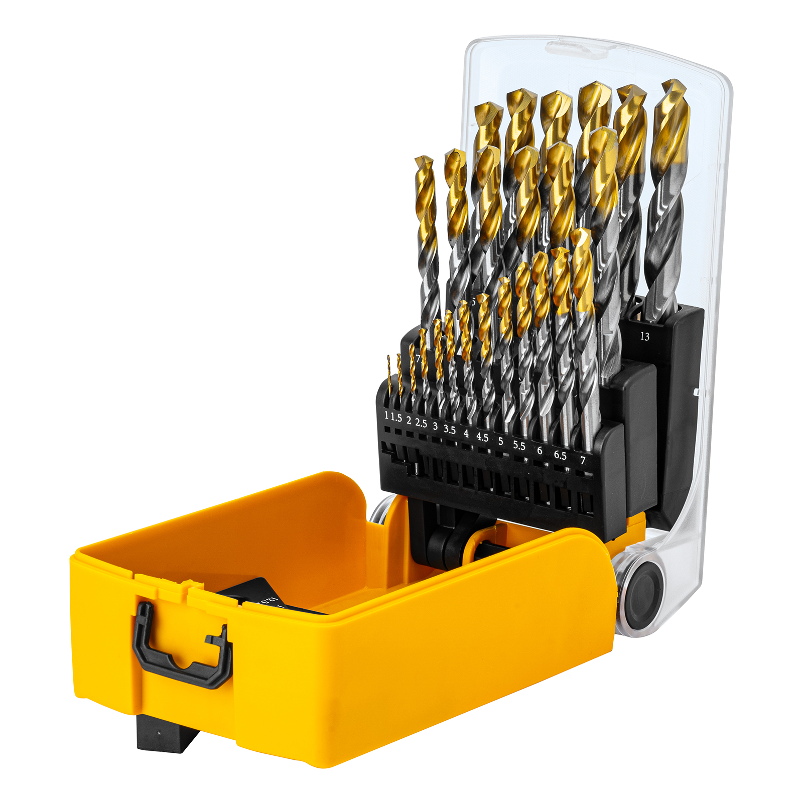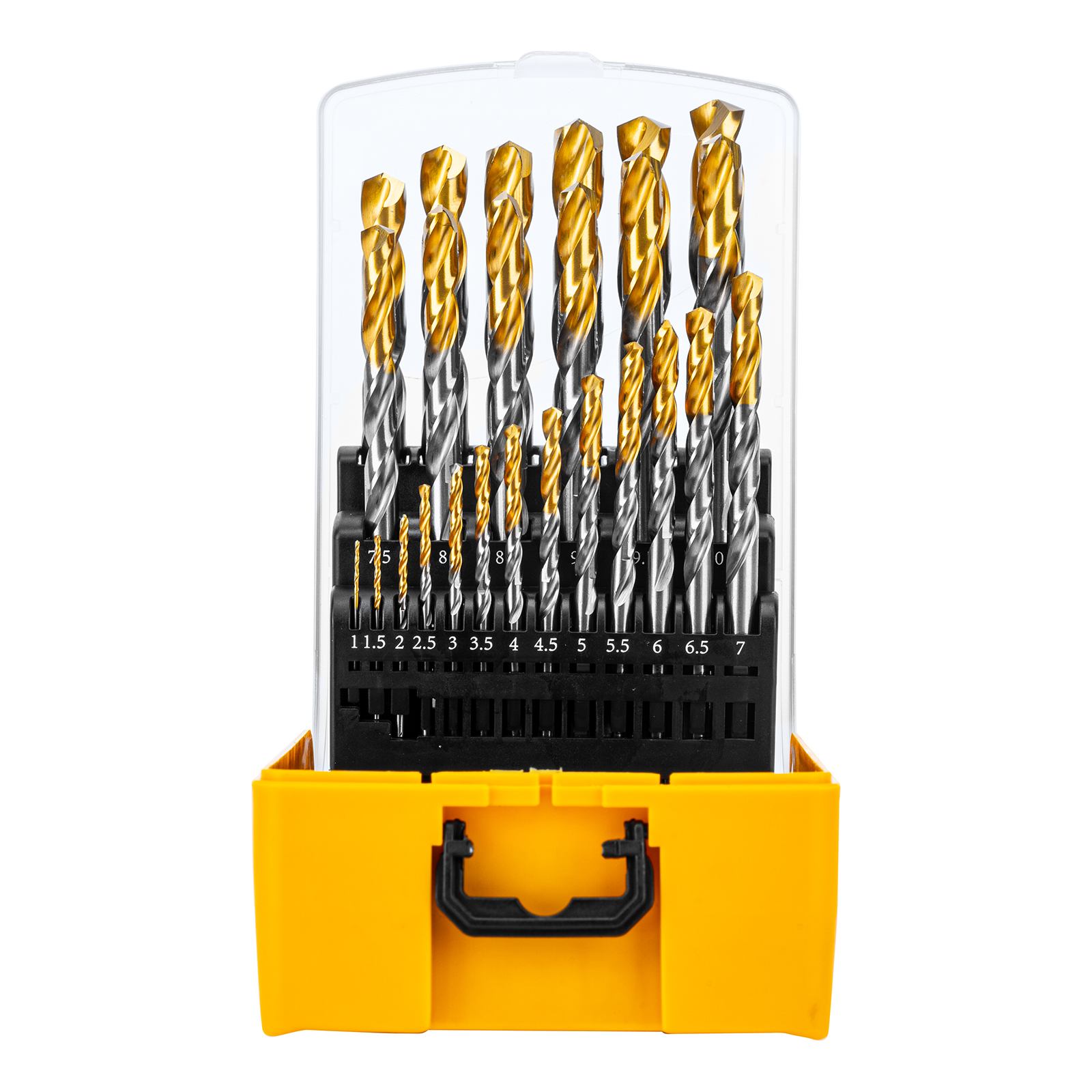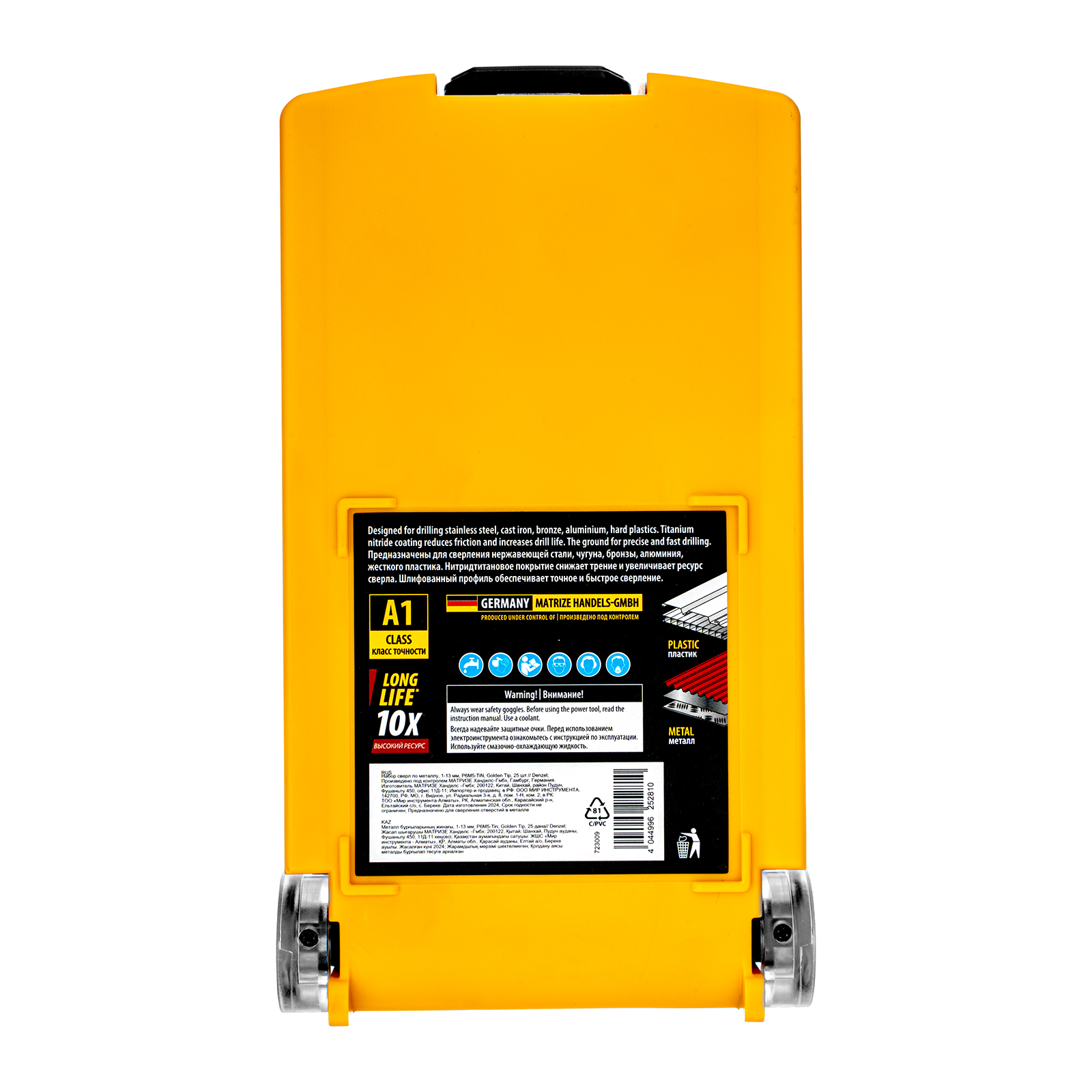 - Удобная упаковка — сверла поставляются в пластиковом кейсе с шаблоном для определения диаметра сверл.