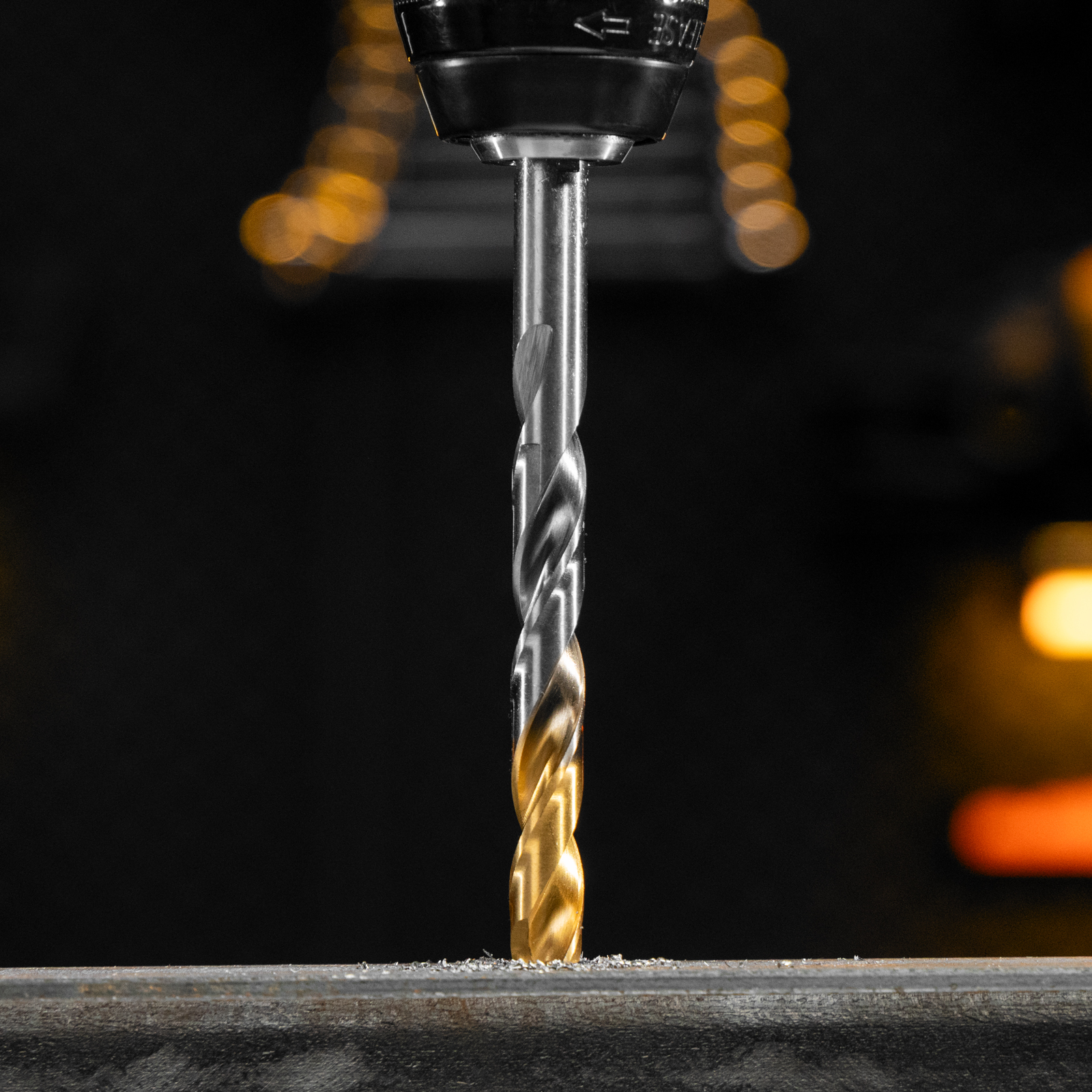 - Высокий ресурс — нитридтитановое покрытие уменьшает трение и увеличивает стойкость сверл к нагреву и износу.