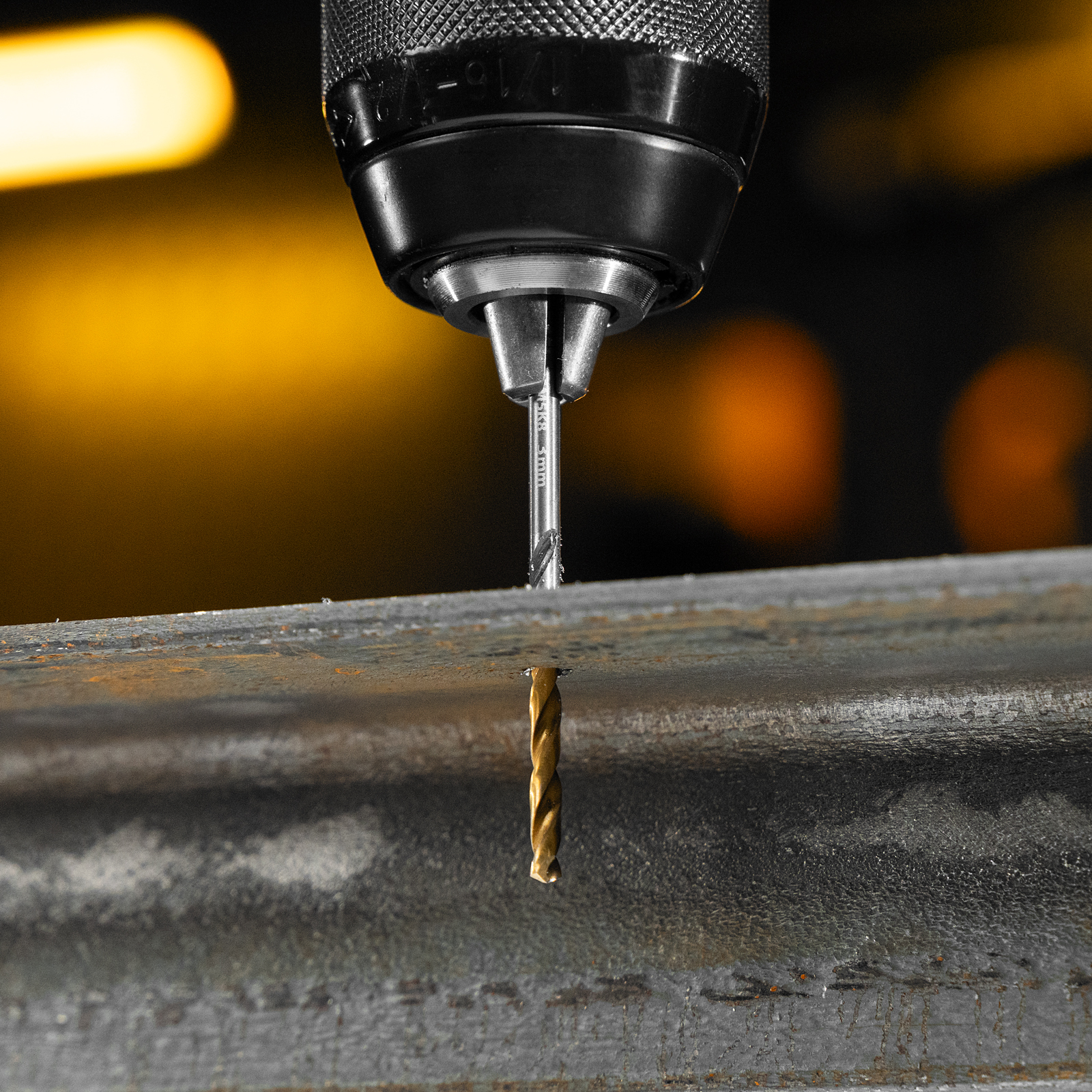- Высокий ресурс — нитридтитановое покрытие уменьшает трение и увеличивает стойкость сверл к нагреву и износу.