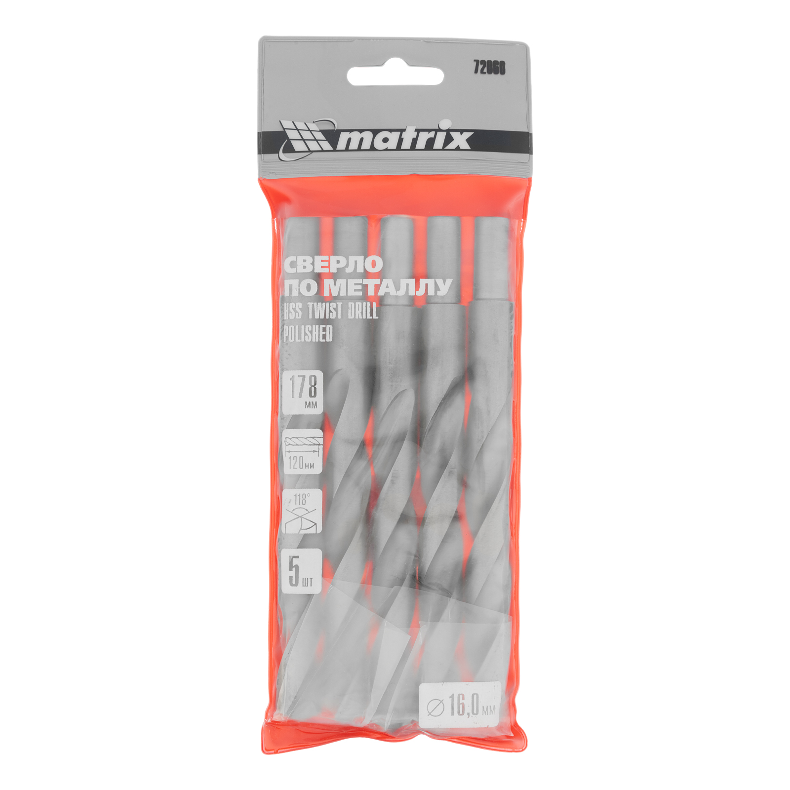 Полированное сверло по металлу Matrix 72060 из стали HSS, с цилиндрическим хвостовиком, 5 шт. в упаковке, используется для получения отверстий диаметром 16 мм. Угол заточки составляет 118°, поэтому сверло оптимально для работы с черными металлами, сталью, чугуном и твердой бронзой.