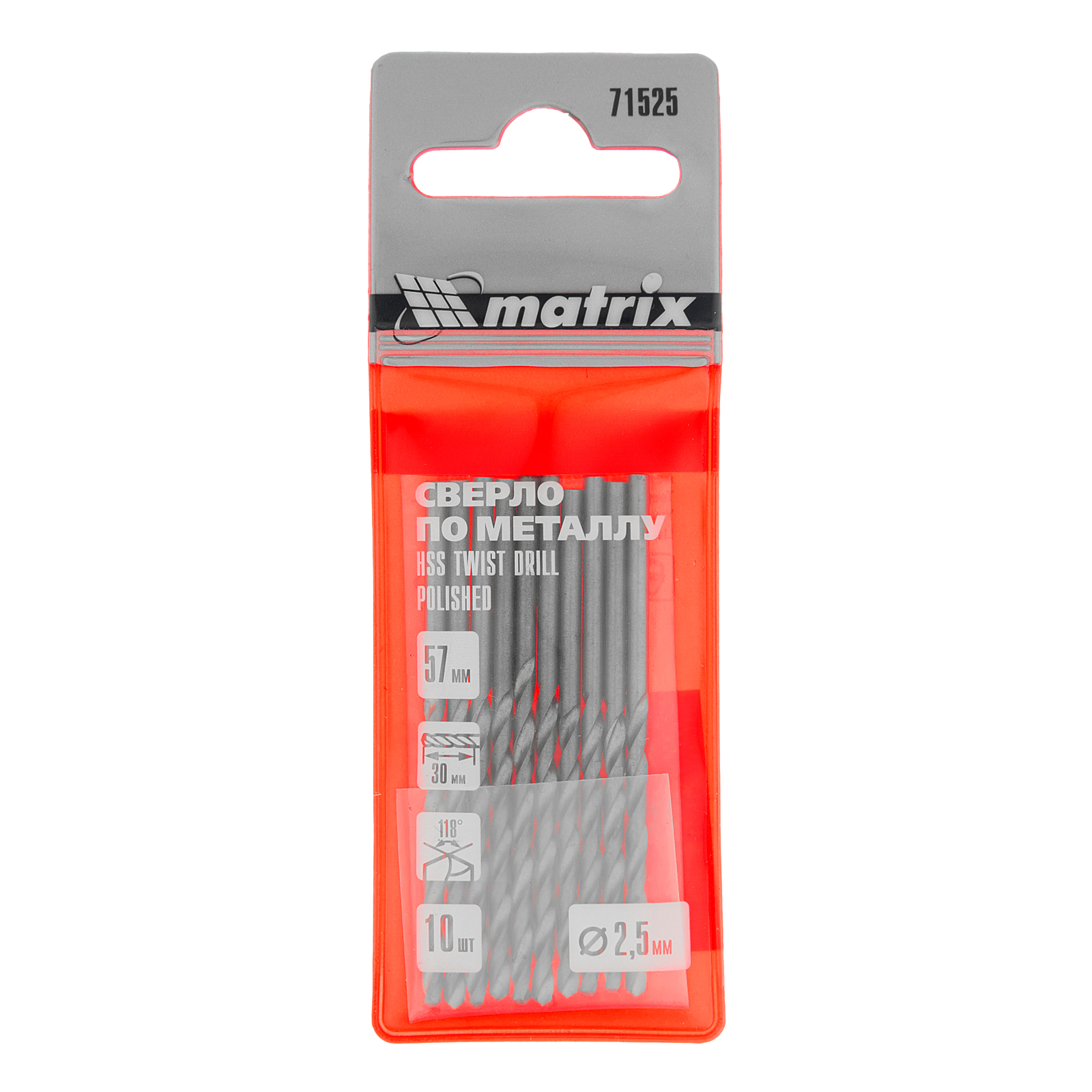 Полированное сверло по металлу Matrix 71525 из стали HSS, с цилиндрическим хвостовиком, 10 шт. в упаковке, используется для получения отверстий диаметром 2,5 мм. Угол заточки составляет 118 градусов, поэтому сверло оптимально для работы с черными металлами, сталью, чугуном и твердой бронзой.
