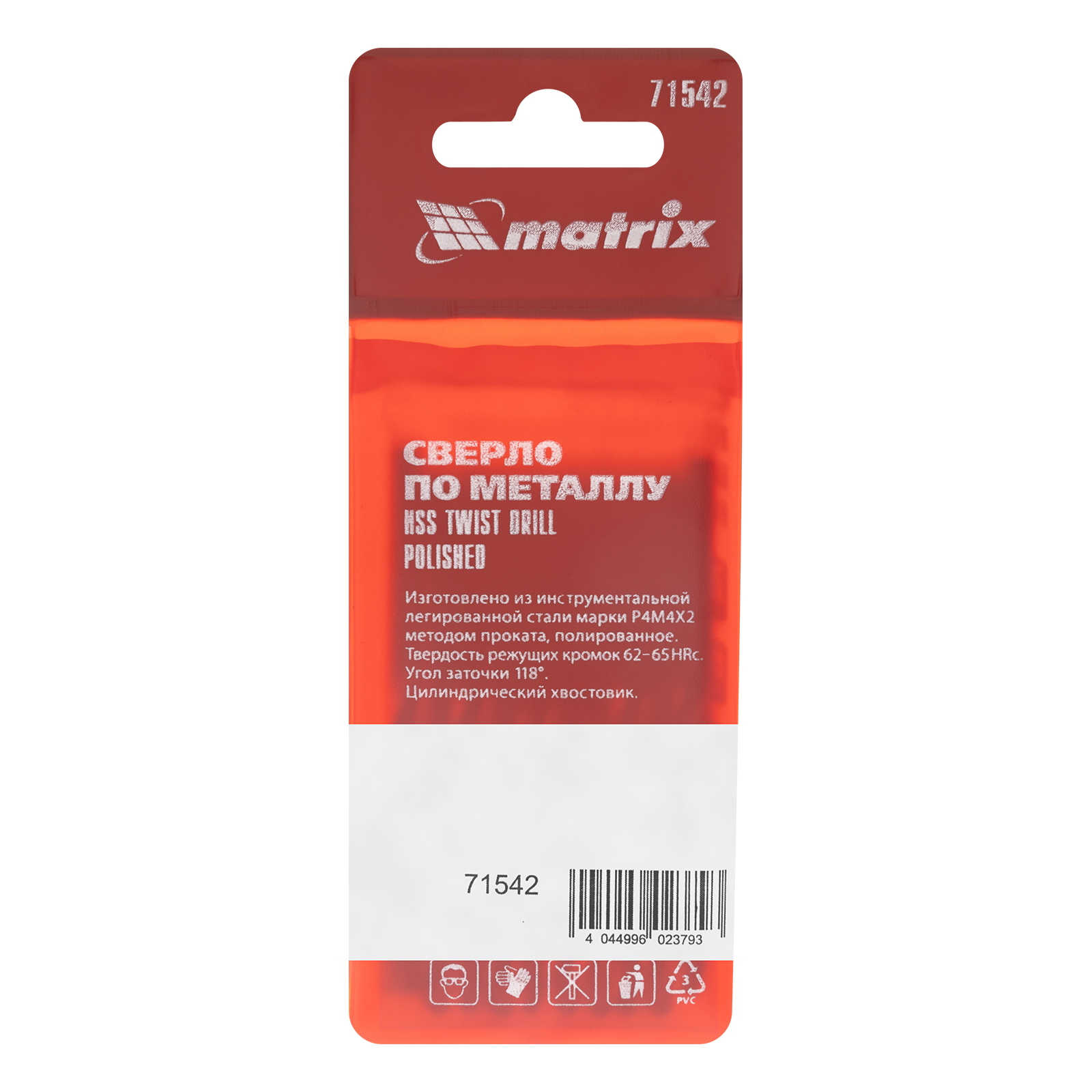 Полированное сверло по металлу Matrix 71542 из стали HSS, с цилиндрическим хвостовиком, 10 шт. в упаковке, используется для получения отверстий диаметром 4,2 мм. Угол заточки составляет 118°, поэтому сверло оптимально для работы с черными металлами, сталью, чугуном и твердой бронзой.
