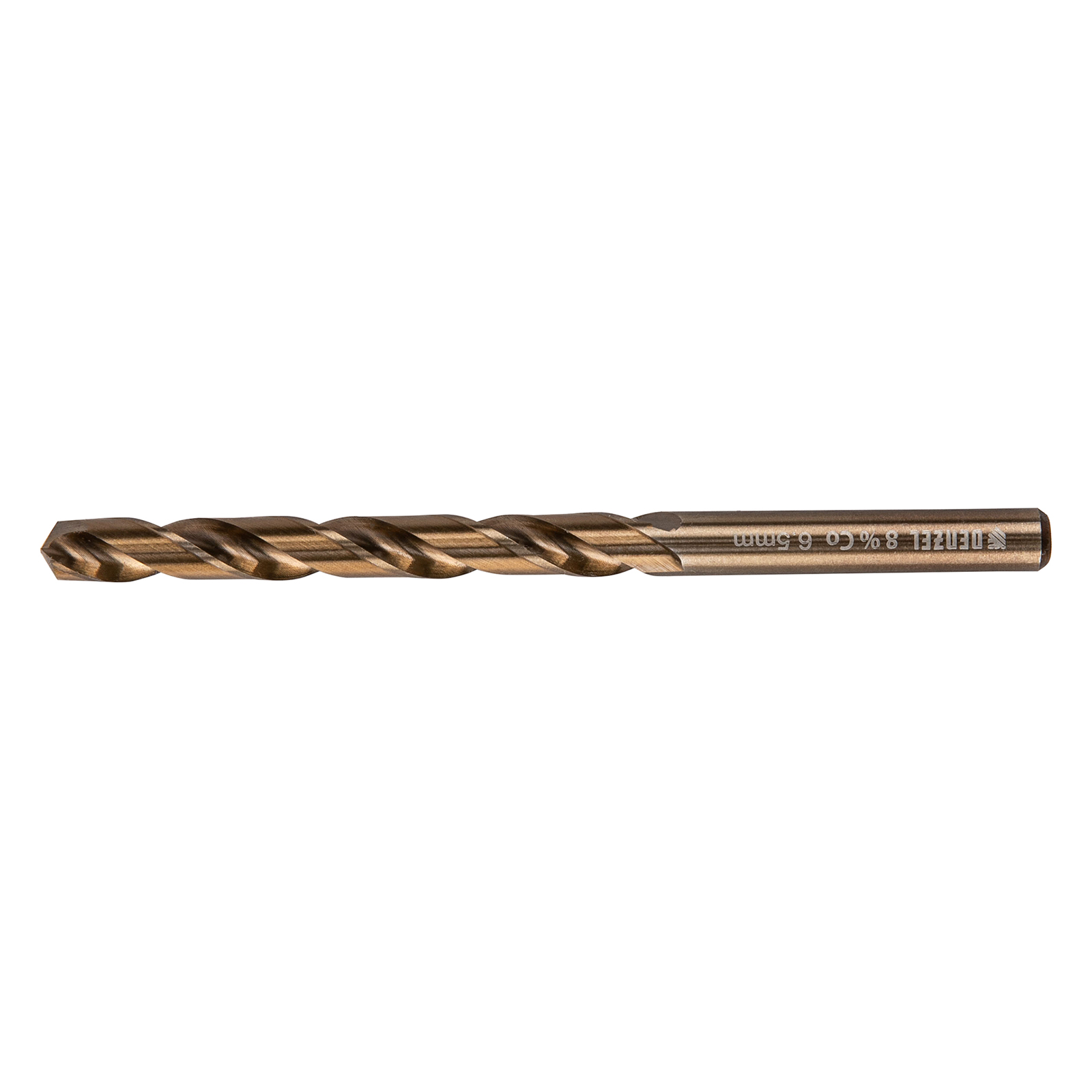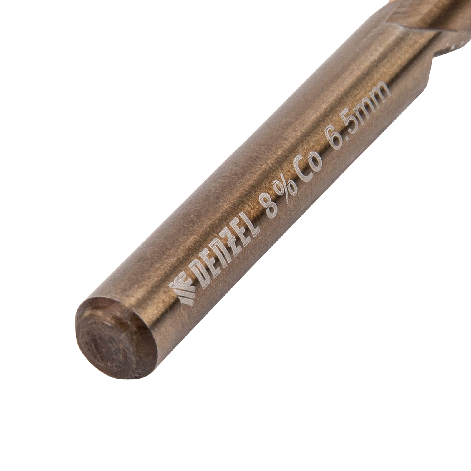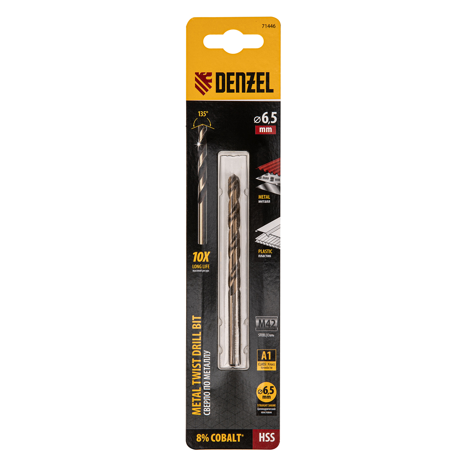 Кобальтовое сверло по металлу Denzel 71446 диаметром 6,5 мм, из стали HSS Co-8%, позволяет получать отверстия высокой точности в нержавеющей стали, цветных металлах, легированных и нелегированных сталях с пределом прочности до 1100 Н/мм2, а также в жестком пластике. Угол заточки 135° обеспечивает повышенную точность и чистоту сверления.