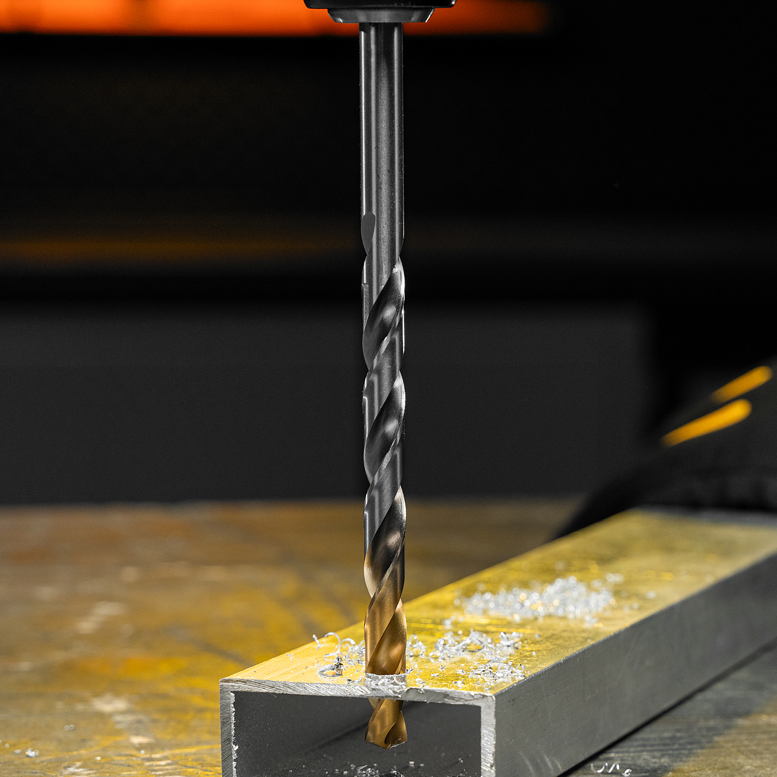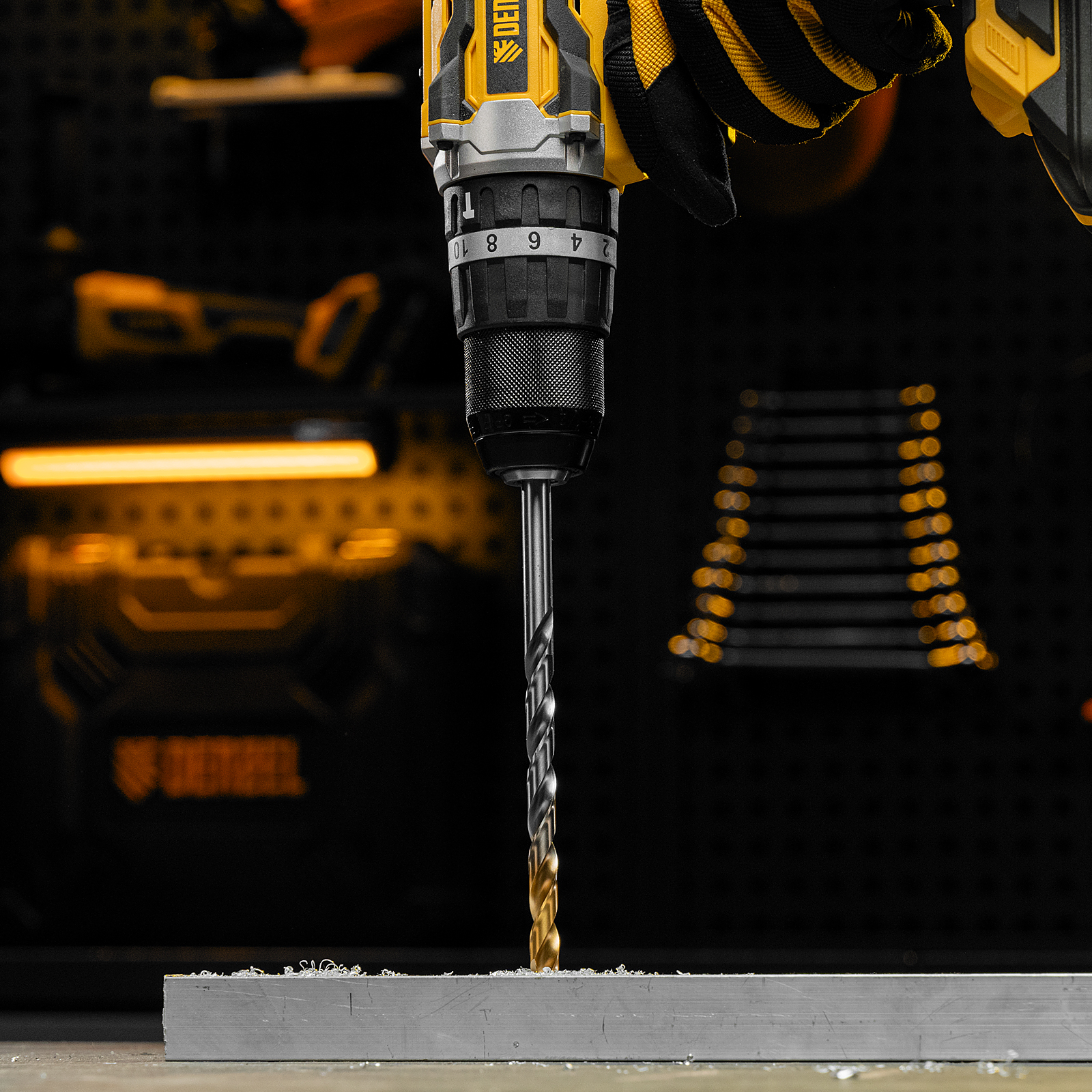 - Высокая производительность — поверхность сверла покрыта нитридом титана, что снижает трение о стенки отверстия и уменьшает нагрев, а также улучшает отвод стружки.