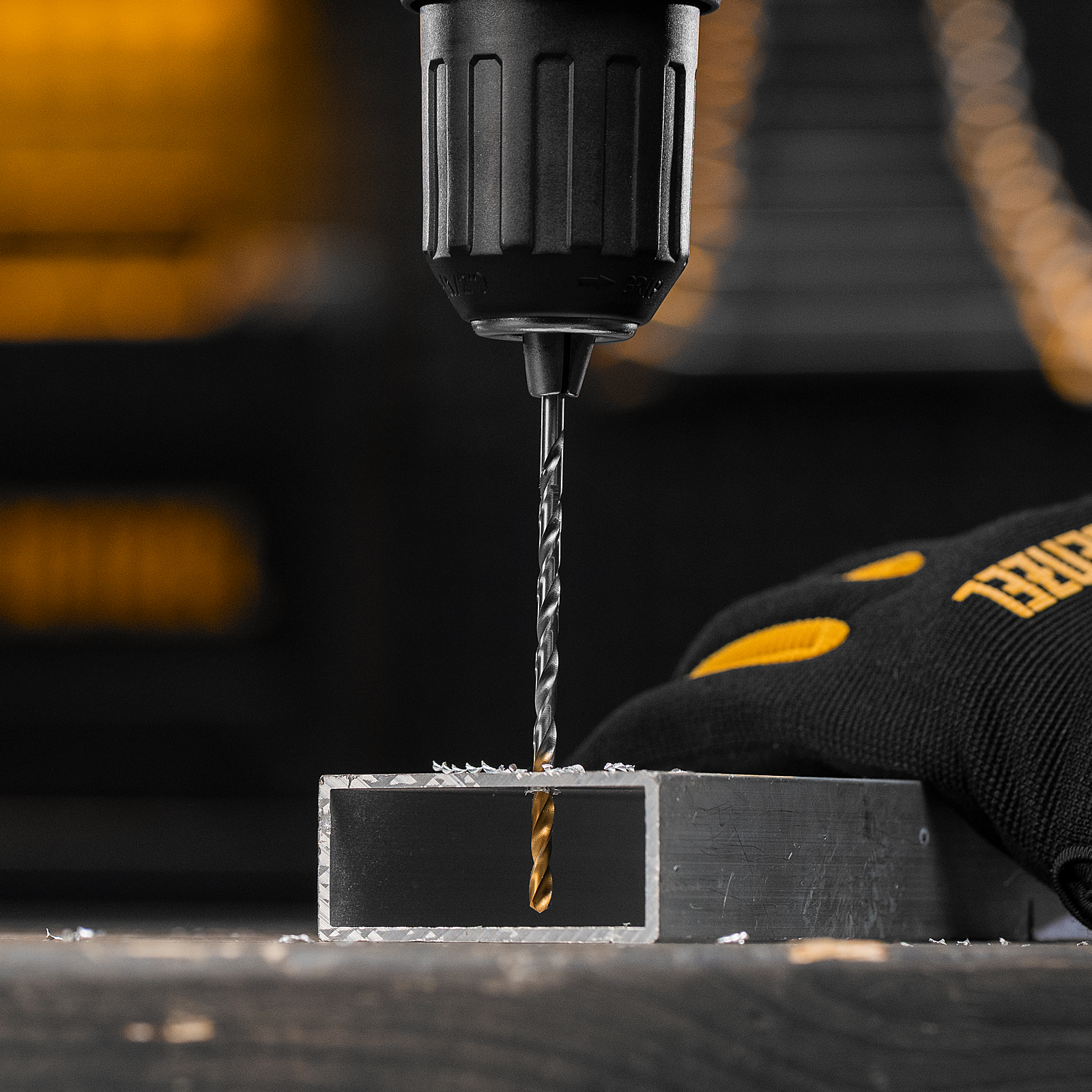 - Высокая производительность — поверхность сверла покрыта нитридом титана, что снижает трение о стенки отверстия и уменьшает нагрев, а также улучшает отвод стружки.