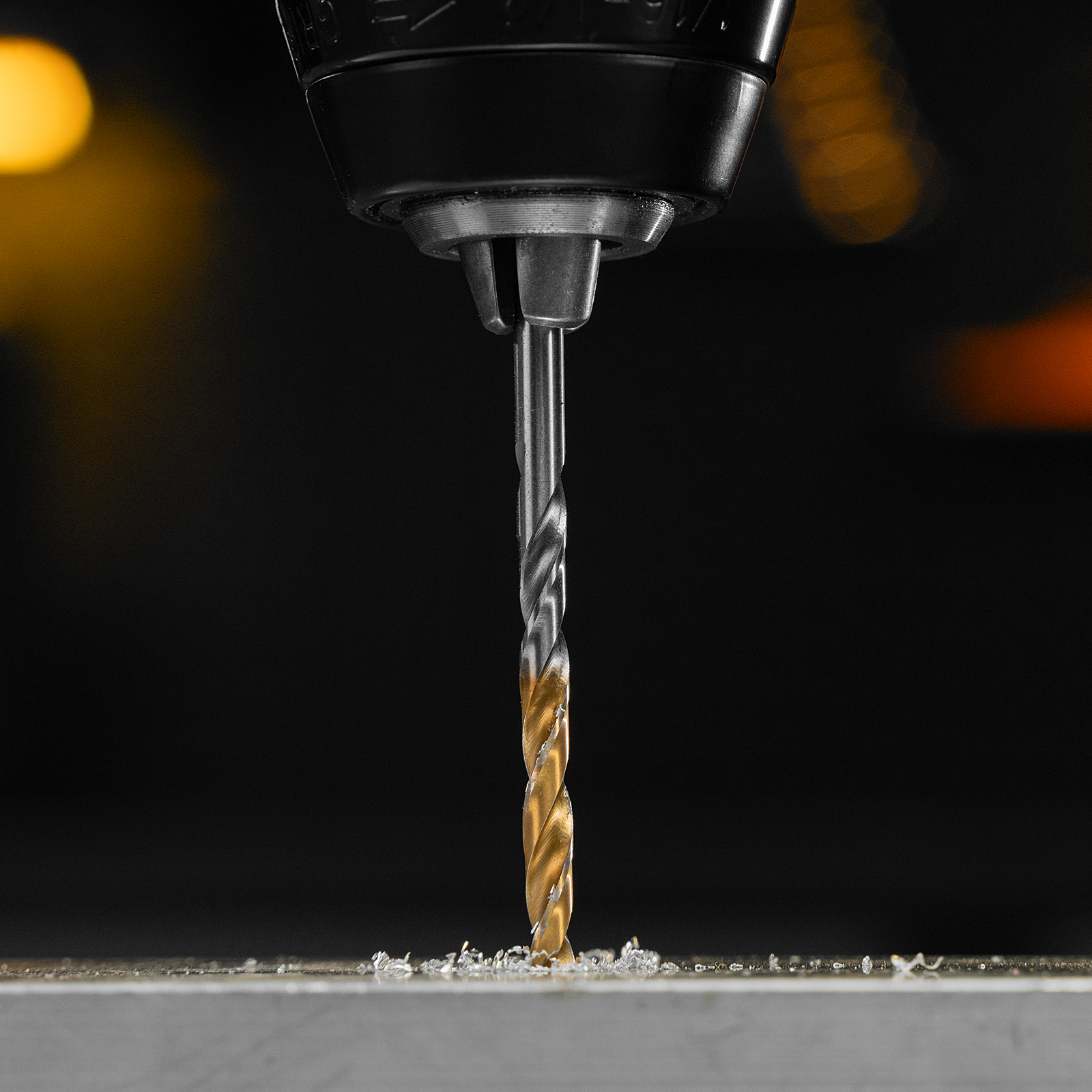 - Высокая производительность — поверхность сверла покрыта нитридом титана, что снижает трение о стенки отверстия и уменьшает нагрев, а также улучшает отвод стружки.