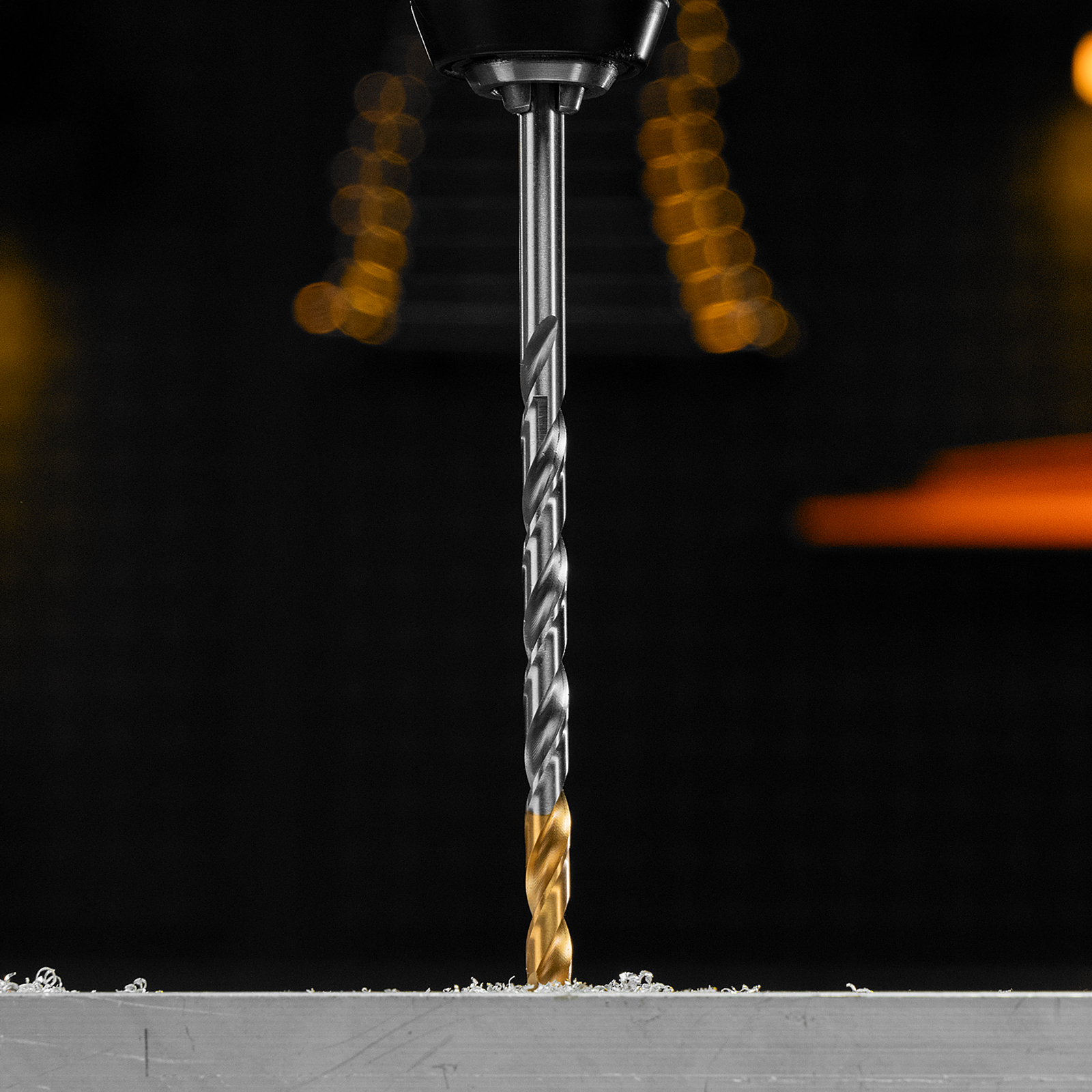 - Высокая производительность — поверхность сверла покрыта нитридом титана, что снижает трение о стенки отверстия и уменьшает нагрев, а также улучшает отвод стружки.