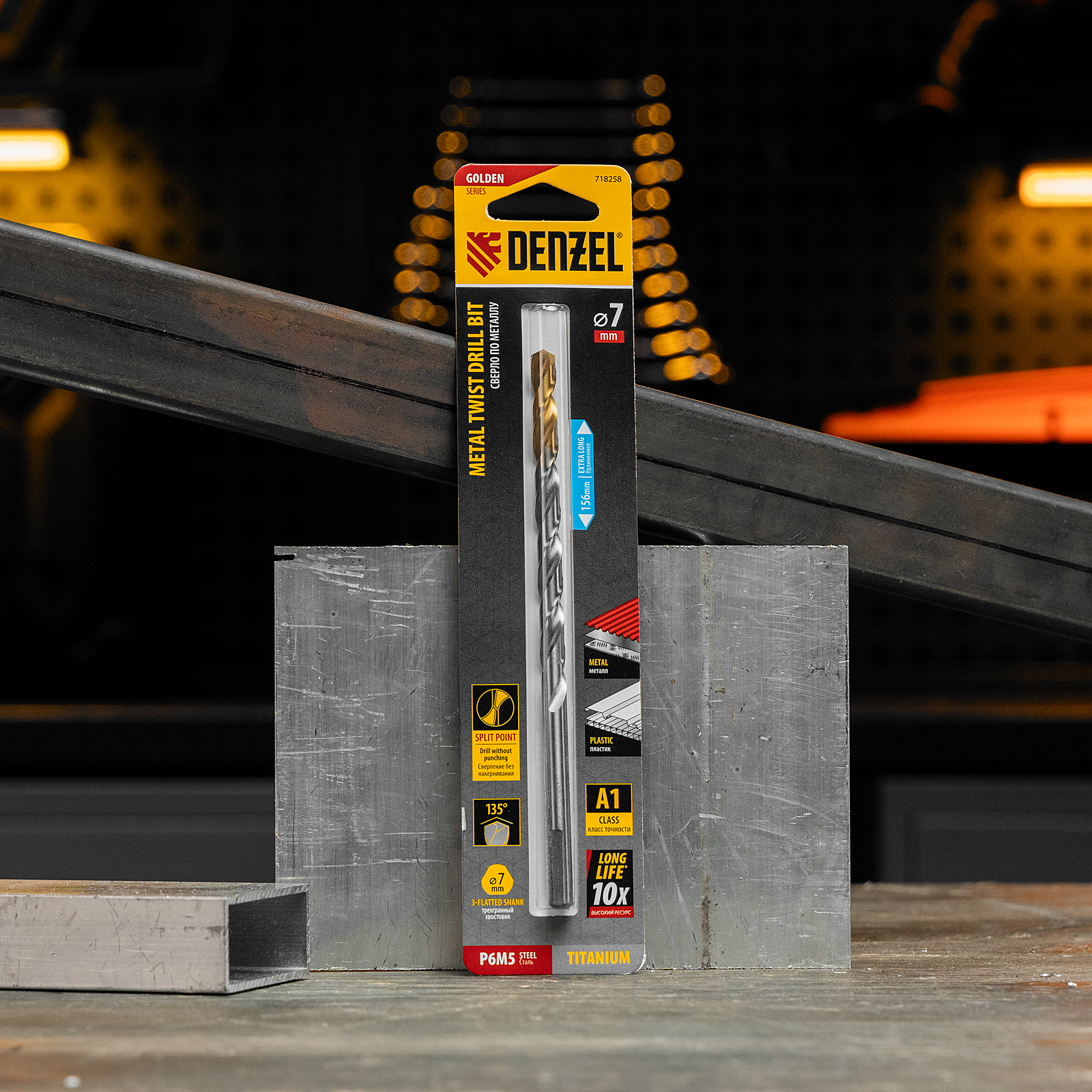 Удлиненное спиральное сверло по металлу Denzel Golden Tip 718258 из стали P6M5, размером 7 х 156 мм, предназначено для получения отверстий в легированных и цветных металлах — меди, алюминии, мягкой бронзе, титане, латуни. Оснастка позволяет эффективно справляться с этими задачами благодаря оптимальному углу заточки 135°. Класс точности A гарантирует высокое качество работ, а удлиненный профиль позволяет сверлить глубокие отверстия. Сверло используется для проведения монтажно-сборочных работ.
