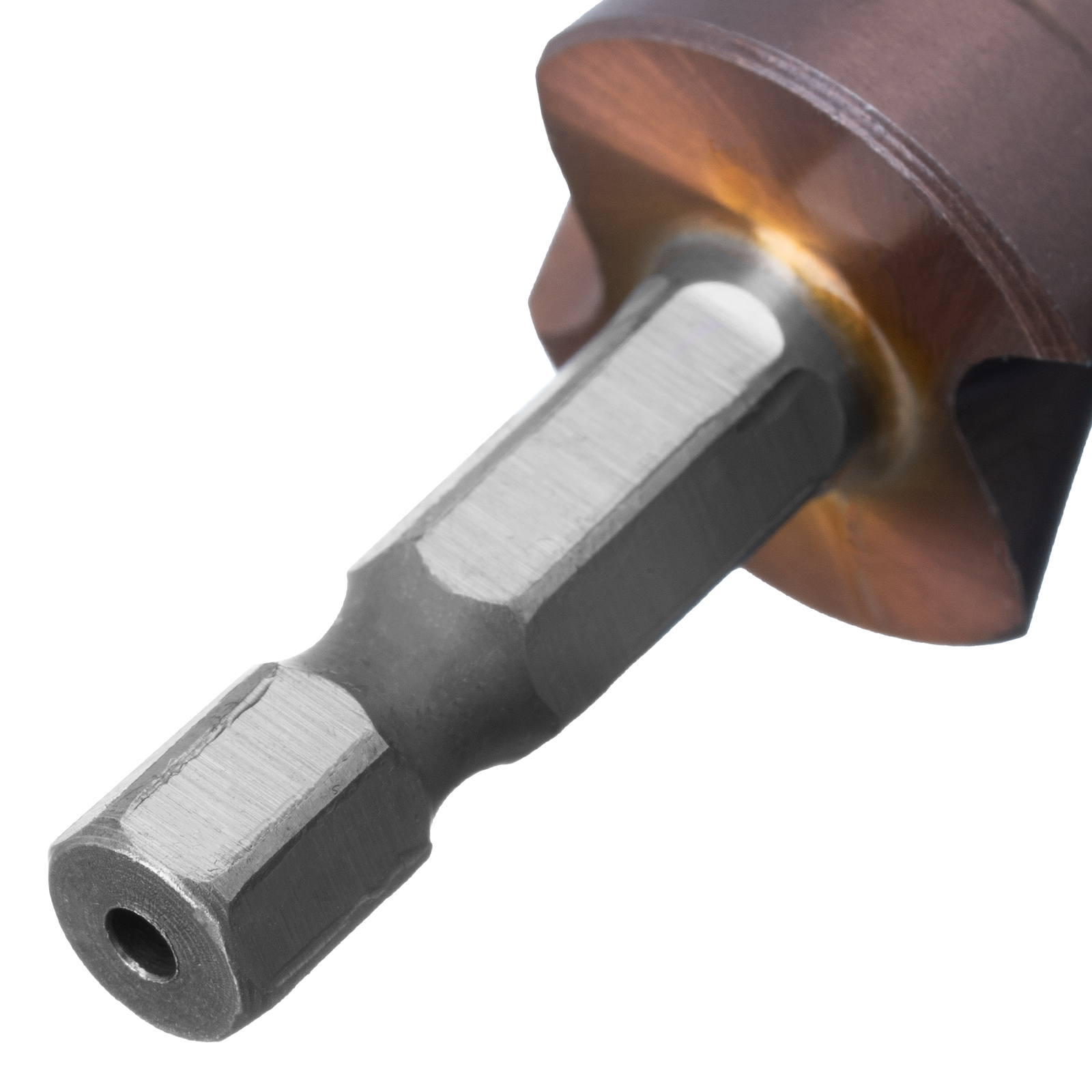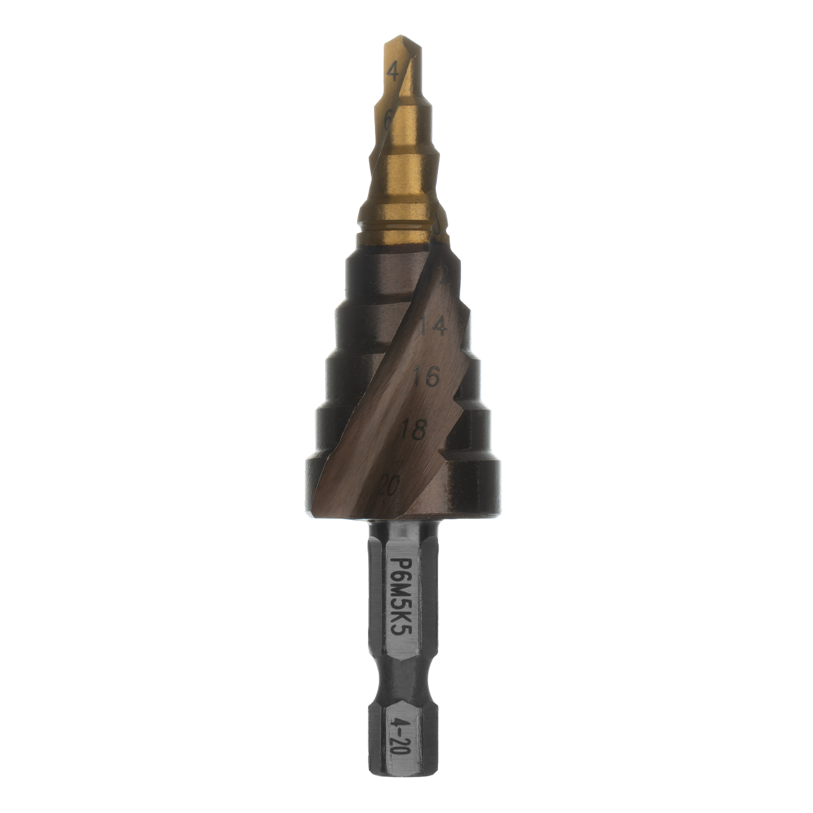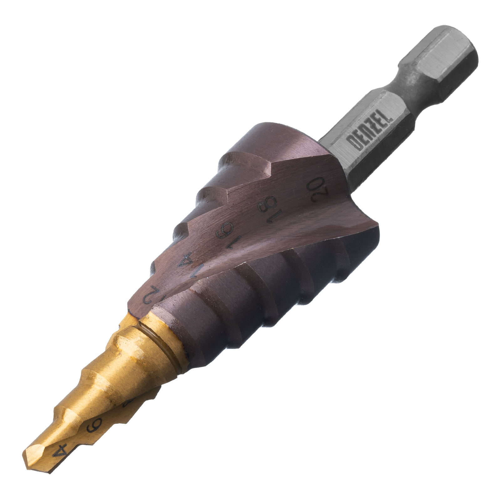 Ступенчатое сверло Denzel 723613 из стали P6M5K5, с 6-гранным хвостовиком, предназначено для сверления отверстий диаметром от 4 до 20 мм в сталях, цветных металлах и пластике. Избавляет от необходимости иметь при себе целый набор традиционных сверл. Позволяет получать отверстия с ровными краями и уже снятой фаской под гайку или болт. Оснастке присвоен класс точности A1. Сверло пригодится дома и в мастерской.