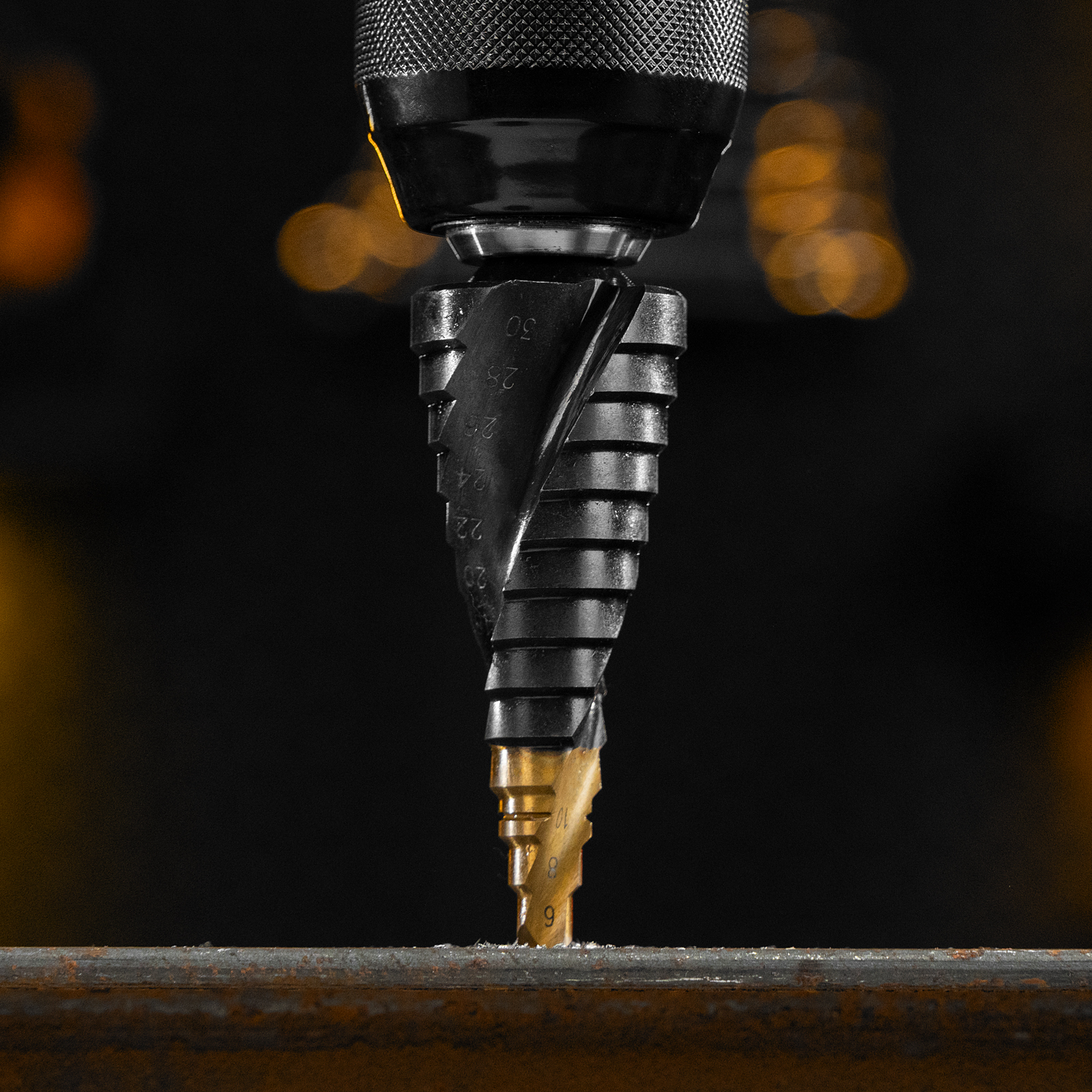 - Долговечность — нитридтитановое покрытие повышает стойкость к перегреву и предотвращает образование коррозии, также сверло покрыто техническим маслом для дополнительной защиты от разрушения.