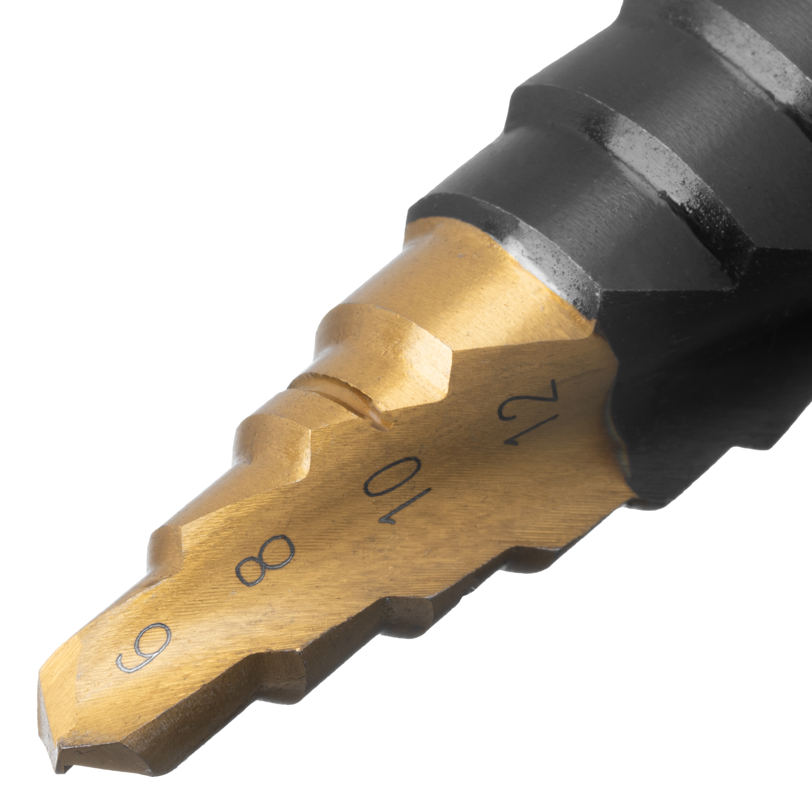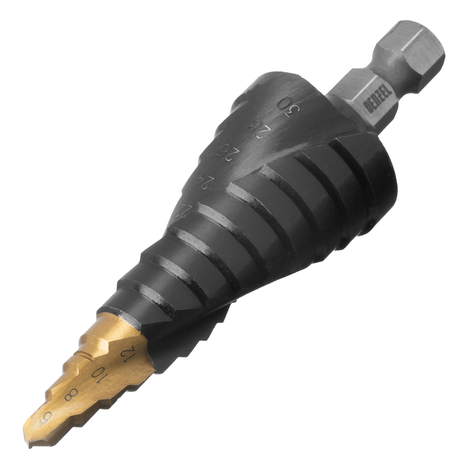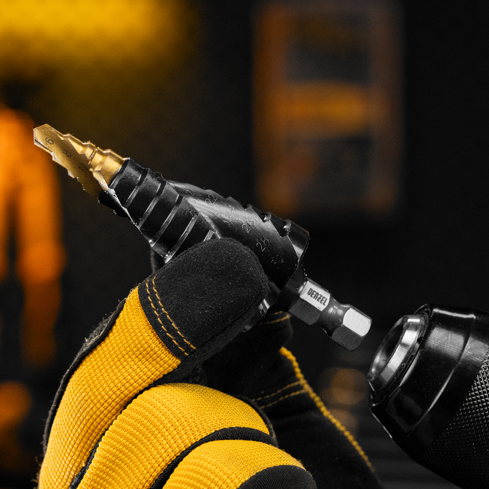 Ступенчатое сверло Denzel 723604 из стали P6M5, с 6-гранным хвостовиком, предназначено для сверления отверстий диаметром от 6 до 30 мм в сталях, цветных металлах и пластике. Избавляет от необходимости иметь при себе целый набор традиционных сверл. Позволяет получать отверстия с ровными краями и уже снятой фаской под гайку или болт. Оснастке присвоен класс точности A1. Сверло пригодится дома и в мастерской.