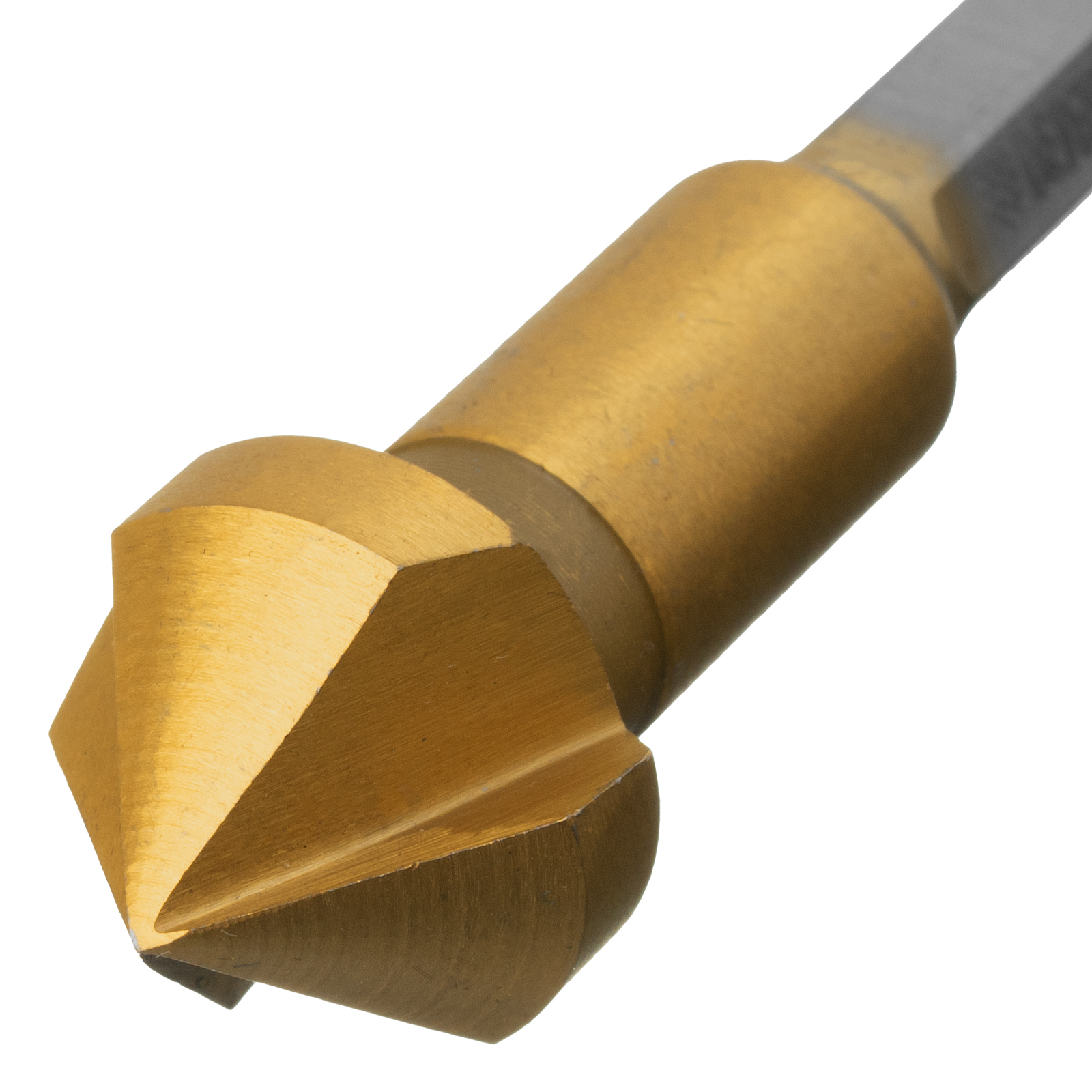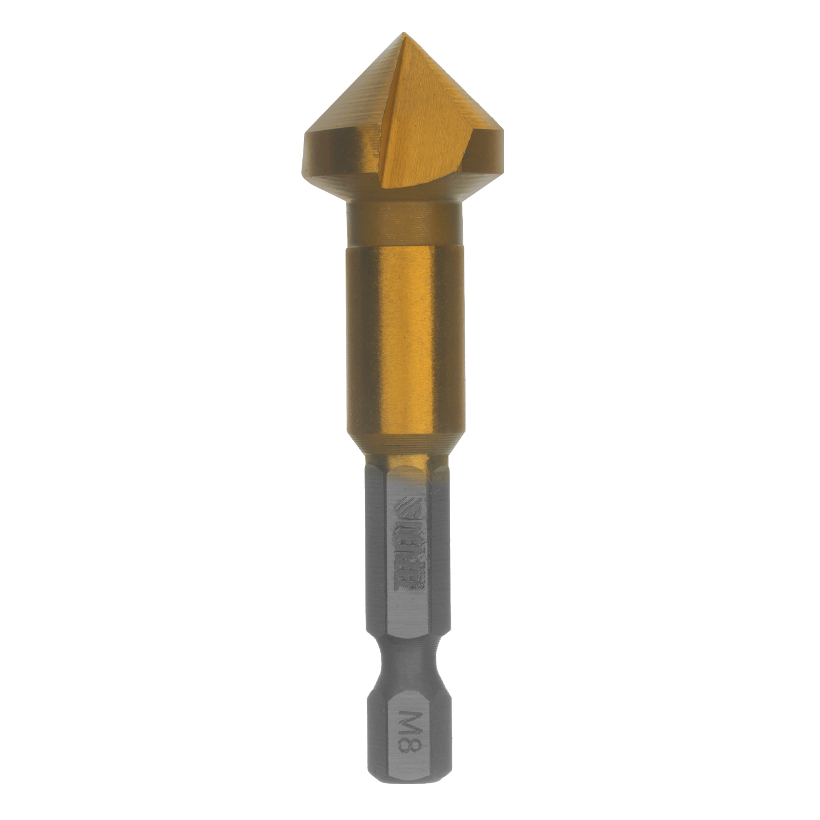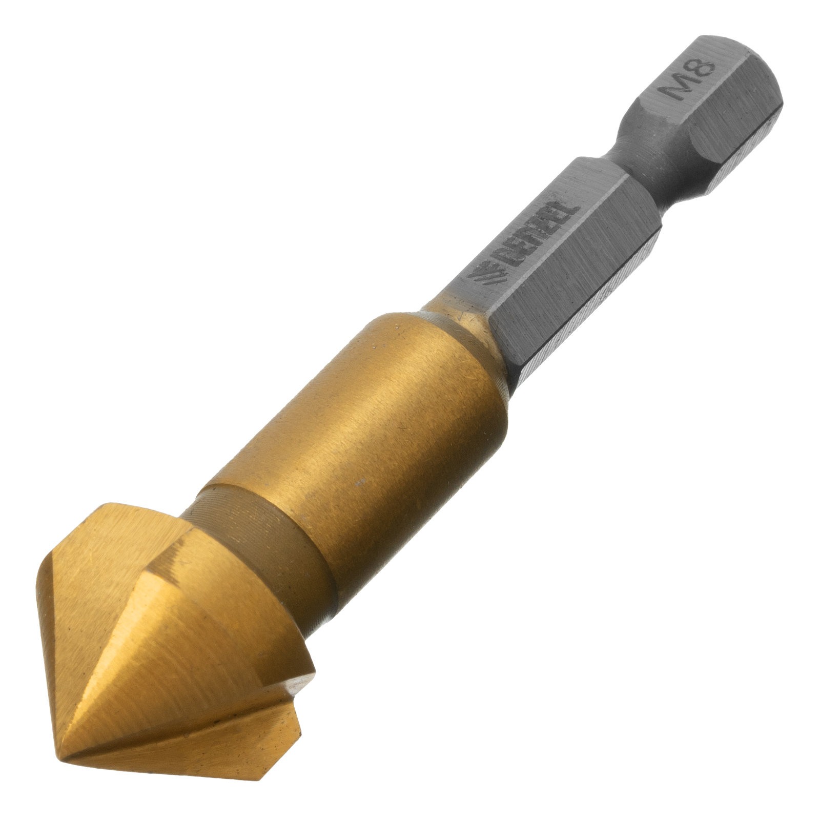 Конусная зенковка Denzel 72308 под болт M8, с 6-гранным хвостовиком, применяется для выполнения конических отверстий и снятия фасок в стали, цветных металлах, древесине и пластике. Устанавливается в патрон дрели или сверлильного станка. Три режущие кромки и идеальные углы заточки 90° обеспечивают точную и быструю обработку отверстий. Оснастка используется во время выполнения слесарных работ.