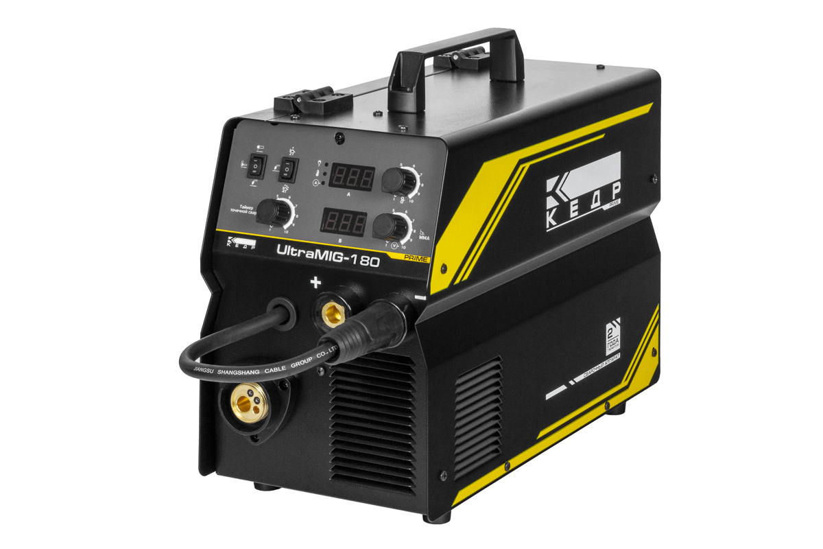 Полуавтомат КЕДР UltraMIG-180 (220В, 30-180А) - предназначен для сварки на малых и средних предприятиях, частных мастерских, а также для использования в домашних хозяйствах. Аппарат выполнен на современных IGBT-модулях, надежно защищенных силовой частью, а высокопрочный металлический корпус позволяет использовать его в тяжелых промышленных условиях. Цифровая панель с дисплеями значительно упрощает работу с данным аппаратом и позволяет снизить классификацию сварщика без потери качества сварки.