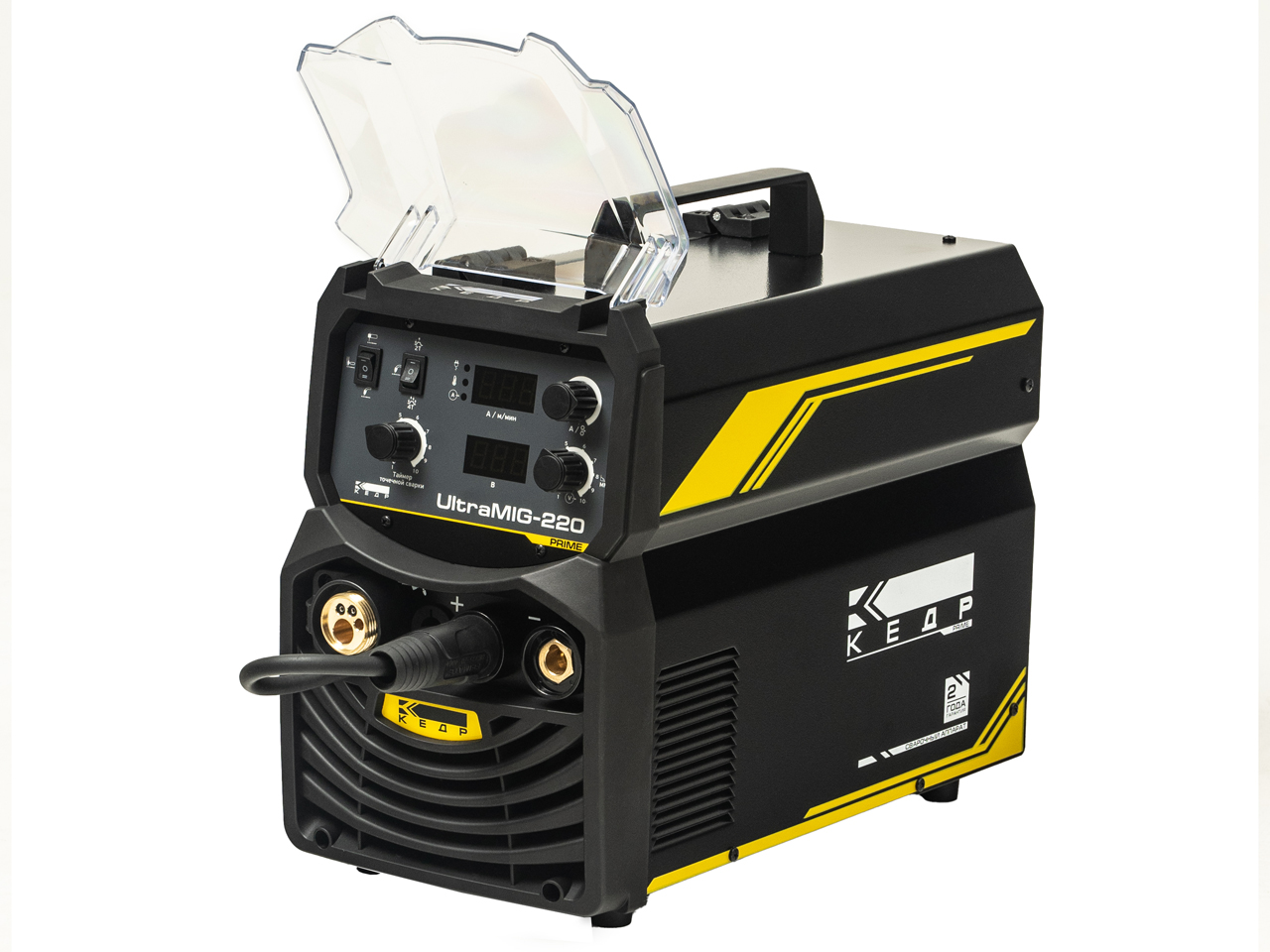 Полуавтомат КЕДР UltraMIG-220 (230В, 30-220А) - предназначен для сварки на малых и средних предприятиях, частных мастерских, а также для использования в домашних хозяйствах. Аппарат выполнен на современных IGBT-модулях, надежно защищенных силовой частью, а высокопрочный металлический корпус позволяет использовать его в тяжелых промышленных условиях. Цифровая панель с дисплеями значительно упрощает работу с данным аппаратом и позволяет снизить классификацию сварщика без потери качества сварки.