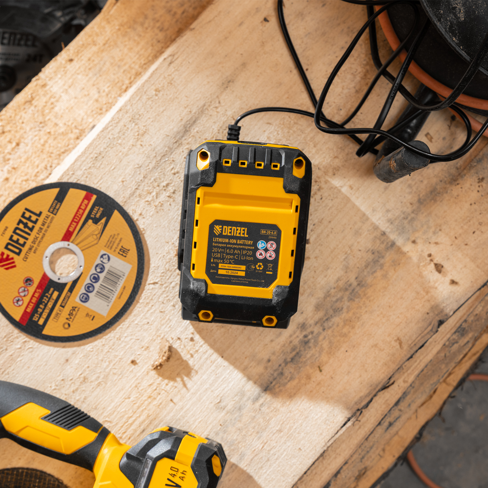 Батарея Li-Ion Denzel BH-20-6.0 28446 номинальным напряжением 20 В и емкостью 6,0 А·ч обеспечивает работоспособность аккумуляторного инструмента. Подходит для всех инструментов единой платформы Denzel Power System 20V. Также может использоваться в качестве зарядного устройства для мобильных устройств, поддерживающих зарядку от разъемов USB 3.0 (USB-A) и USB Type-C.