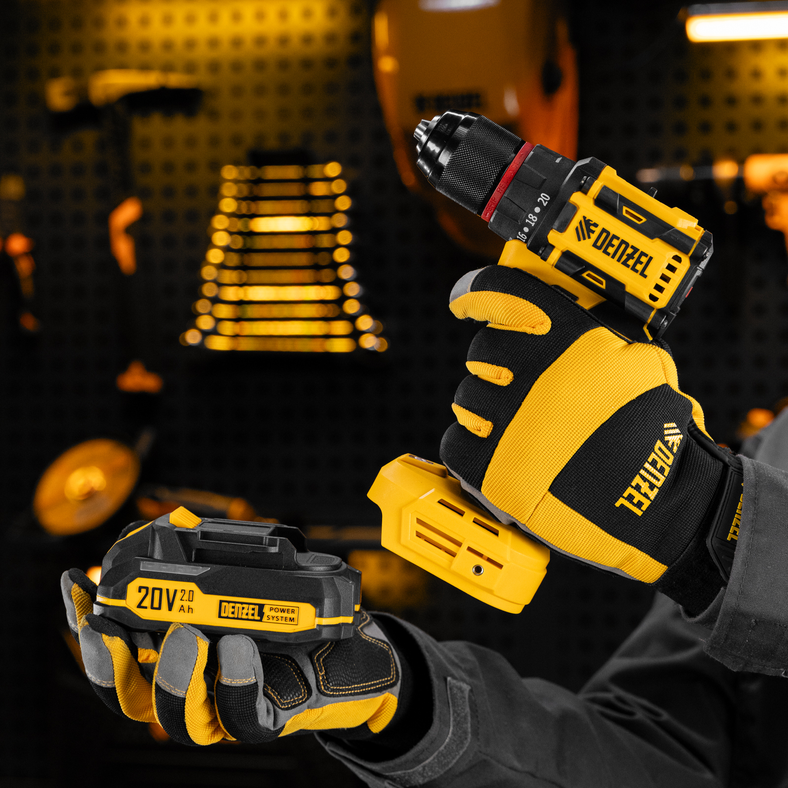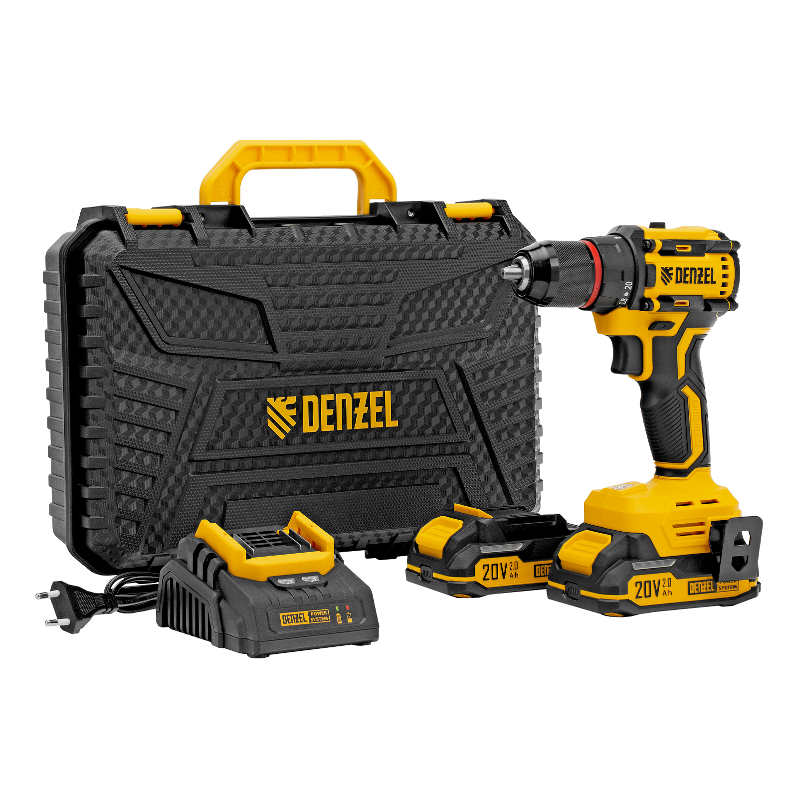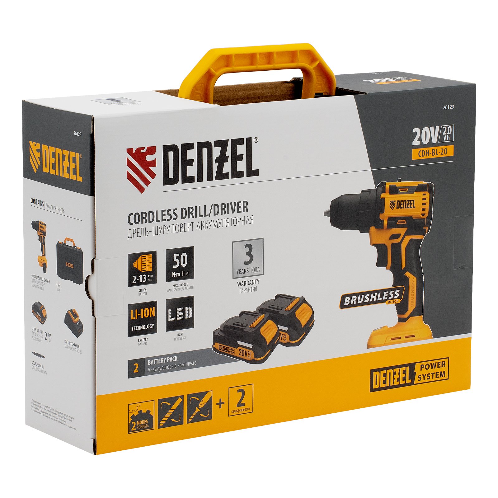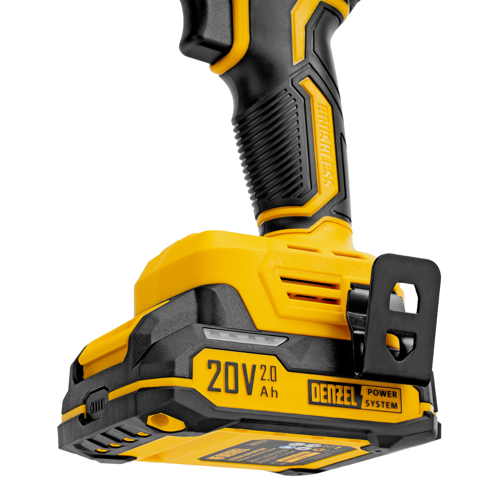 - Универсальность — аккумуляторы Li-Ion емкостью 2 А·ч совместимы со всеми инструментами единой платформы Denzel Power System 20V.