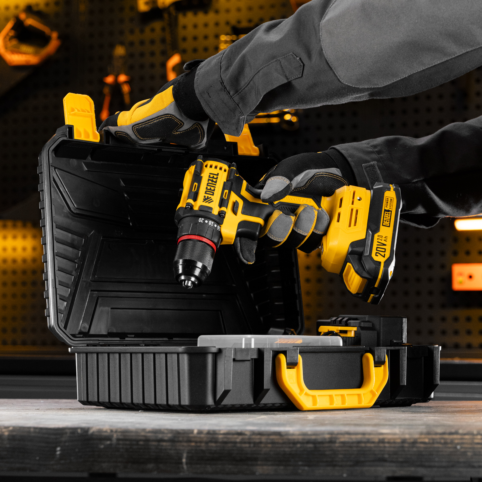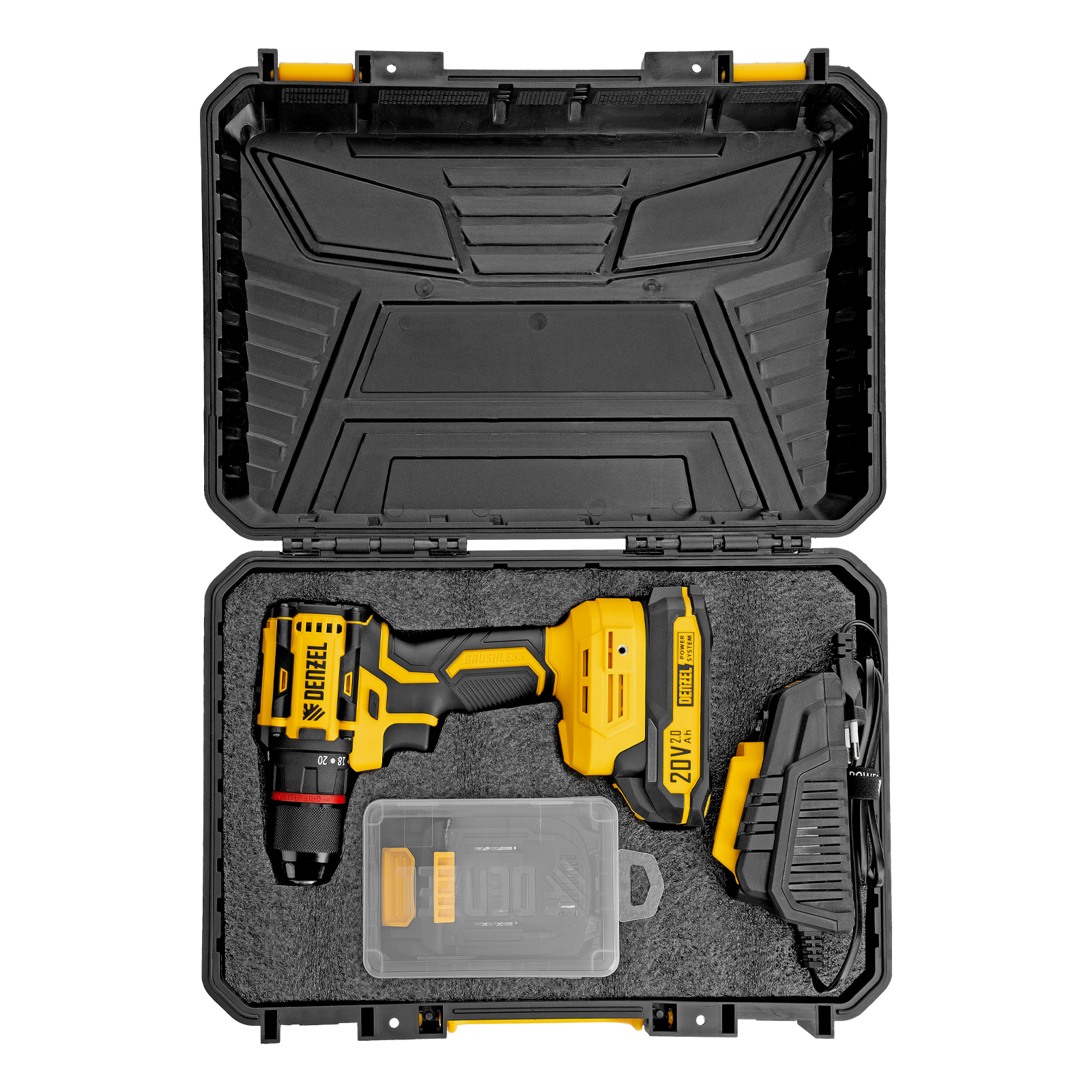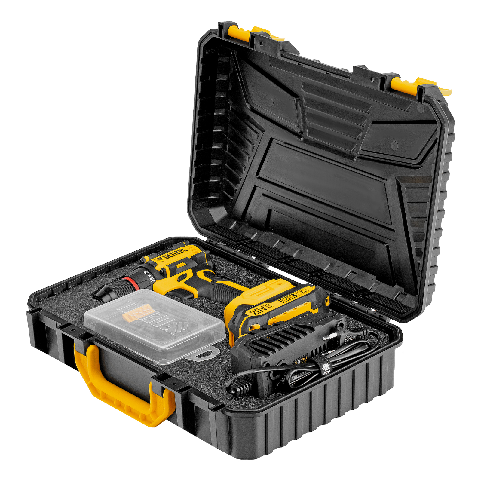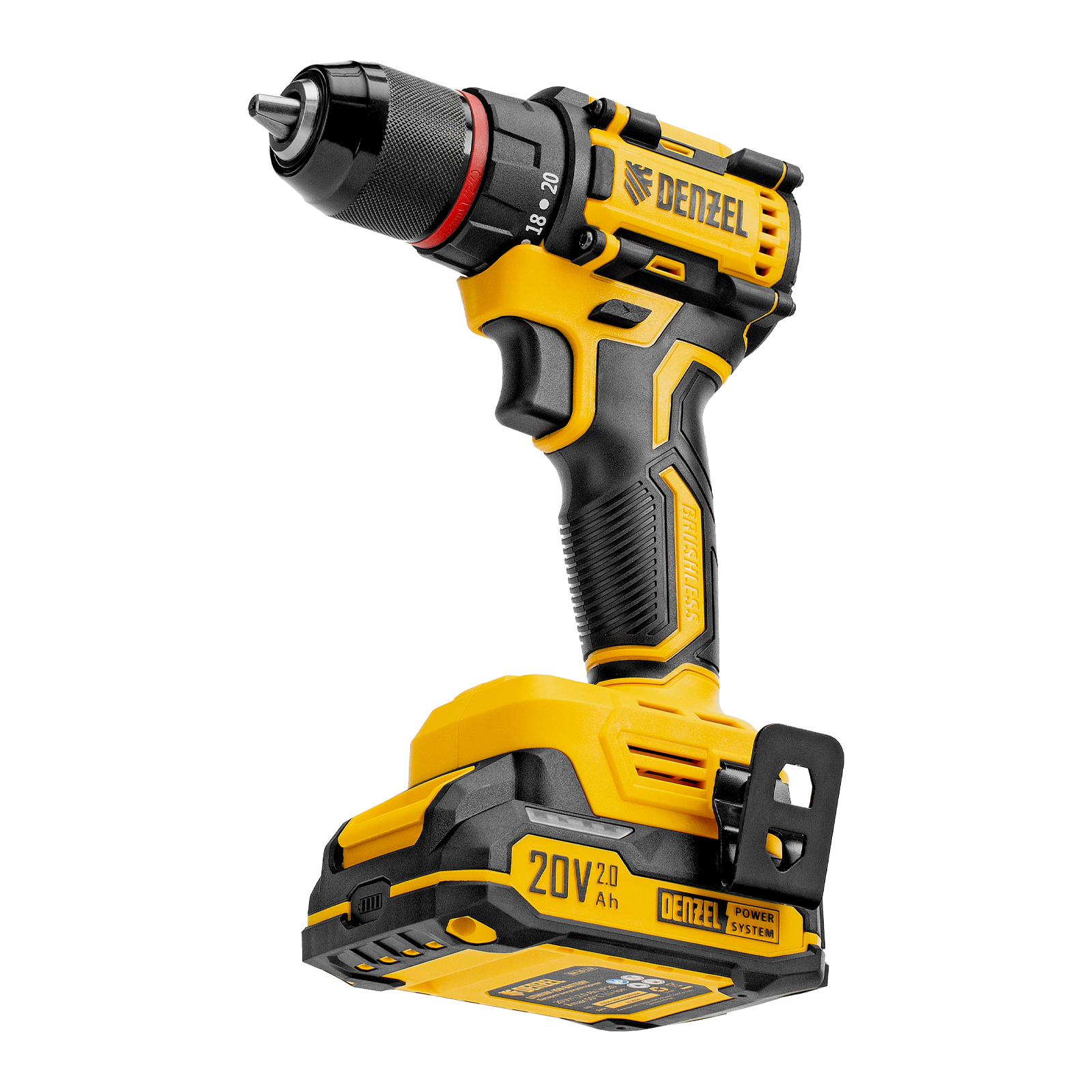 - Универсальность — аккумуляторы Li-Ion емкостью 2 А·ч совместимы со всеми инструментами единой платформы Denzel Power System 20V.