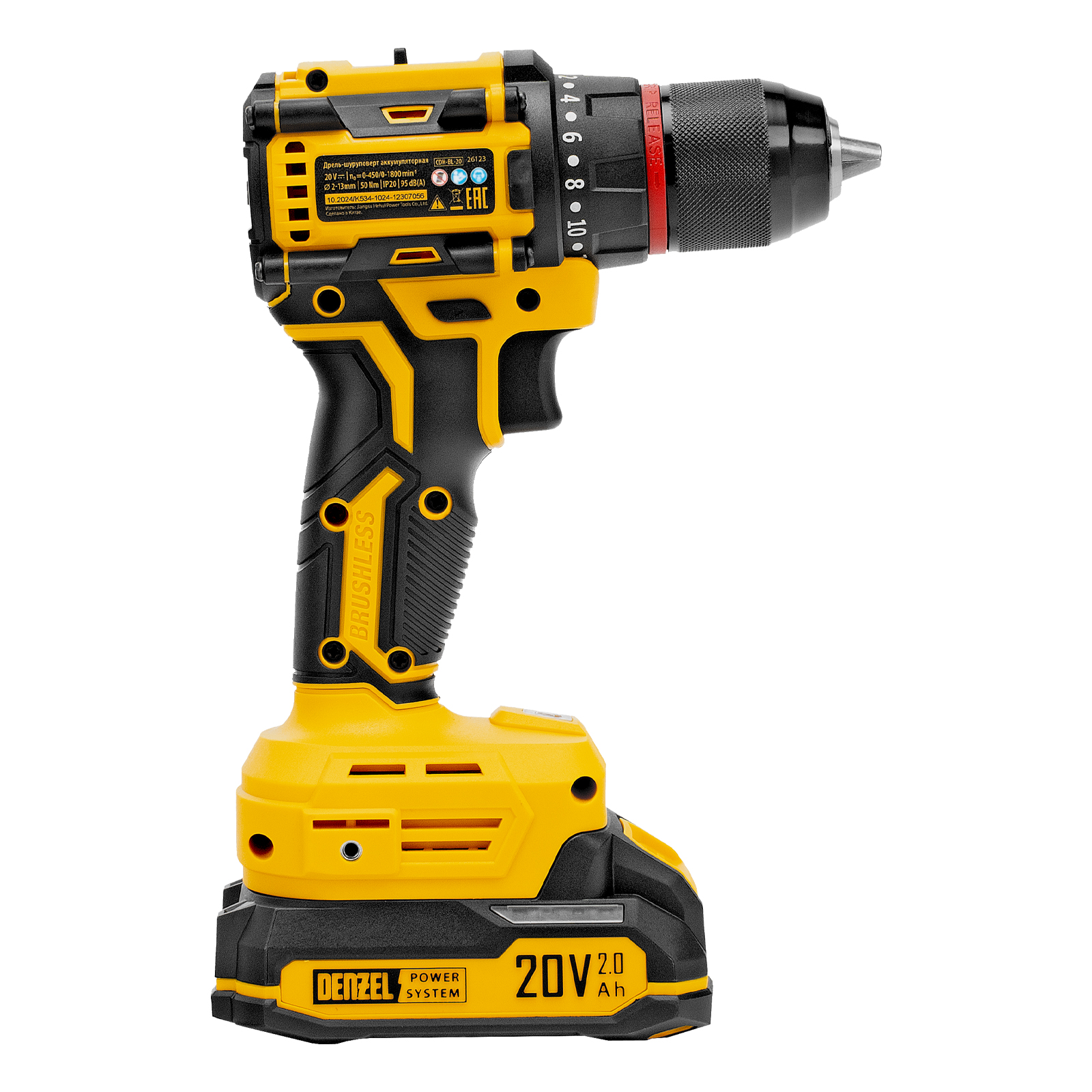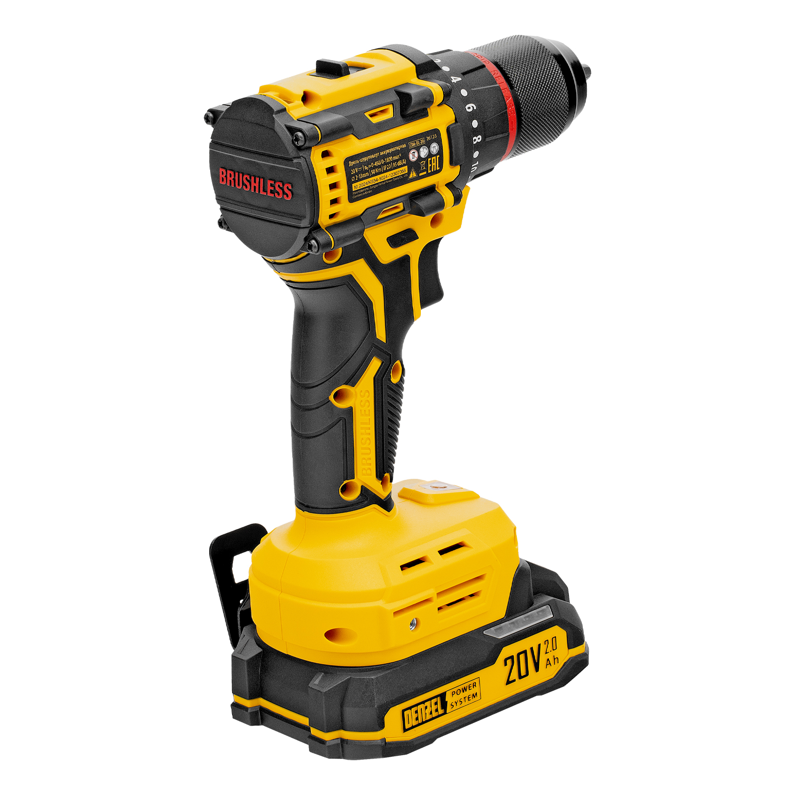 Аккумуляторная дрель-шуруповерт Denzel CDH-BL-20 26123 работает от аккумулятора Li-Ion 20 В и предназначена для закручивания и откручивания резьбового крепежа, а также для выполнения сверлильных работ. Максимальный крутящий момент составляет 50 Н·м, что позволяет затягивать крепеж со значительным усилием. При помощи инструмента можно получать отверстия диаметром до 13 мм в металле и до 30 мм — в древесине. Надежный бесщеточный двигатель не требует сложного обслуживания и обеспечивает стабильную работу дрели-шуруповерта в течение длительного времени.
