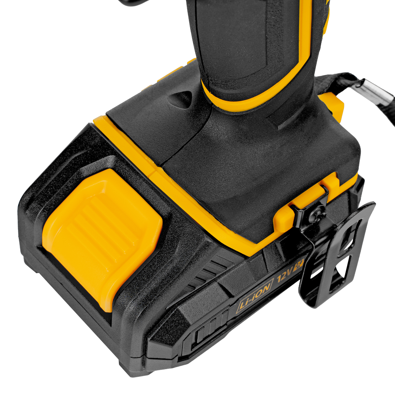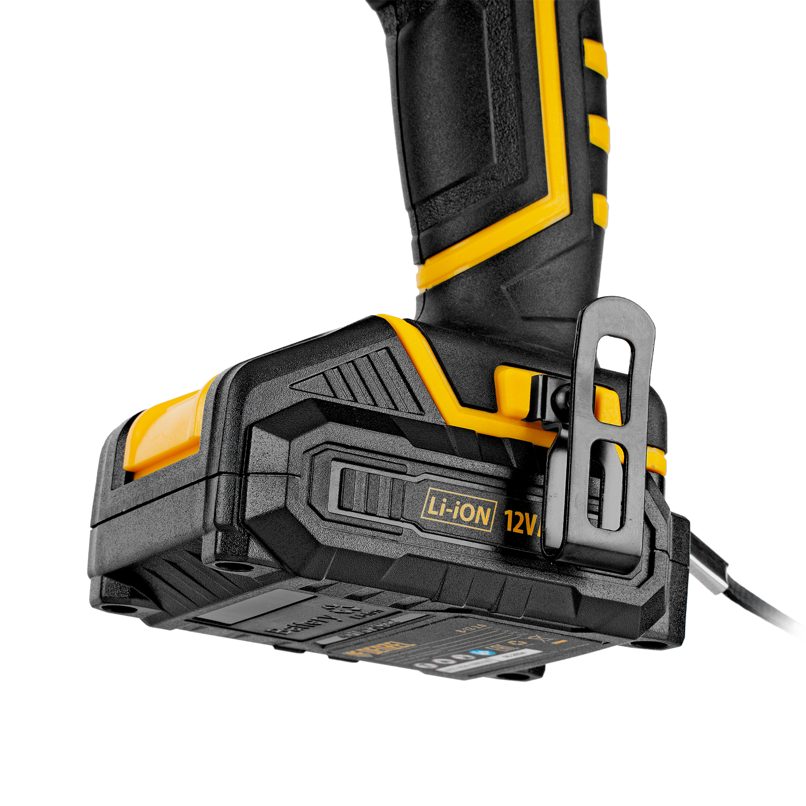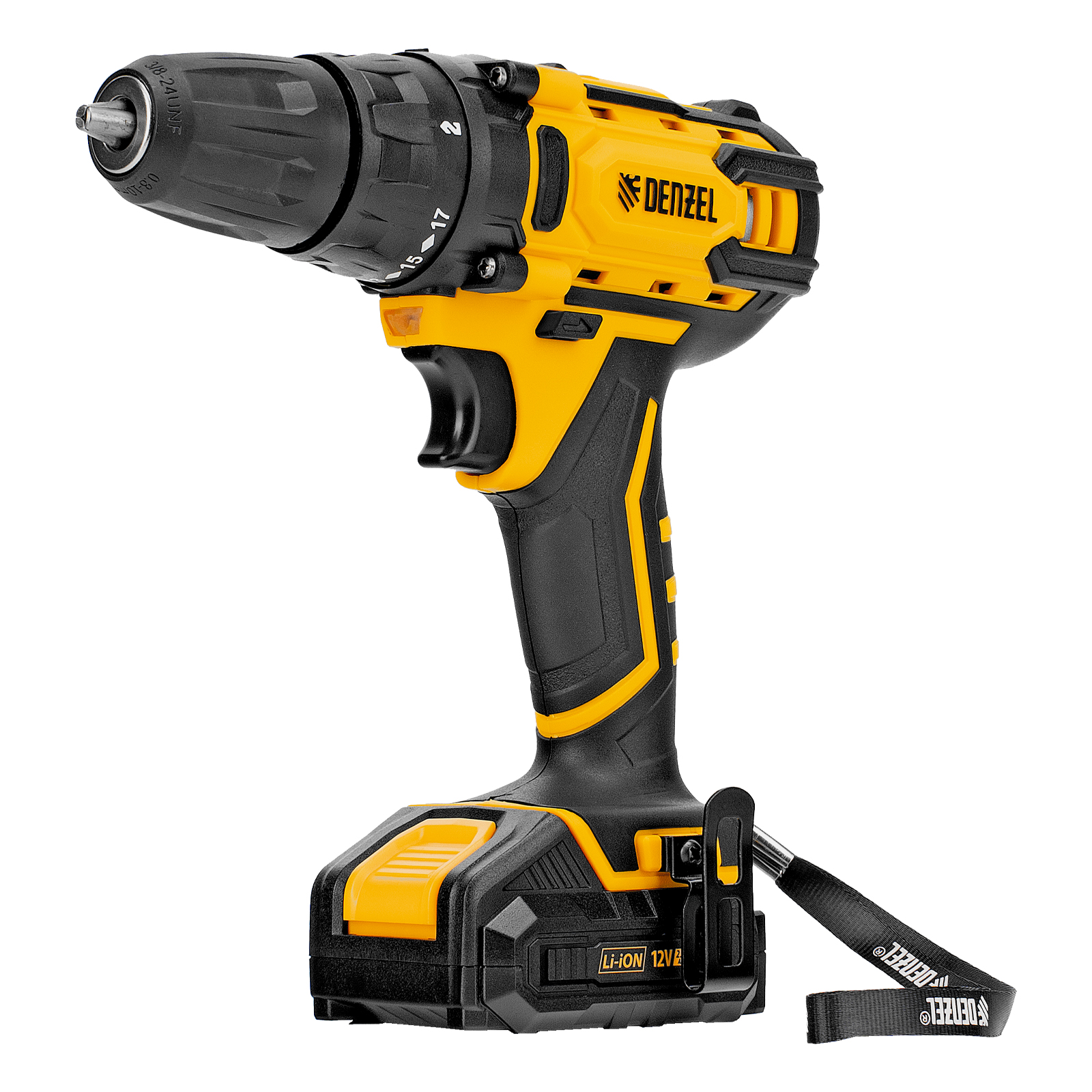 Аккумуляторная дрель-шуруповерт Denzel CDL-12-02BM 26105 с 2 батареями Li-Ion 12 В предназначена для монтажа и демонтажа резьбовых соединений, cверления отверстий в металле (до 10 мм), древесине (до 16 мм), пластмассе и других материалах. Инструмент пригодится профессионалам и любителям на строительной площадке, дома или на даче.,Надежные литий-ионные аккумуляторы без эффекта памяти и защитой от глубокого разряда обеспечивают долгий срок службы инструмента. Дрель не зависит от сети питания, что делает удобной работу на строительных объектах, на высоте и в отдаленных участках дома.