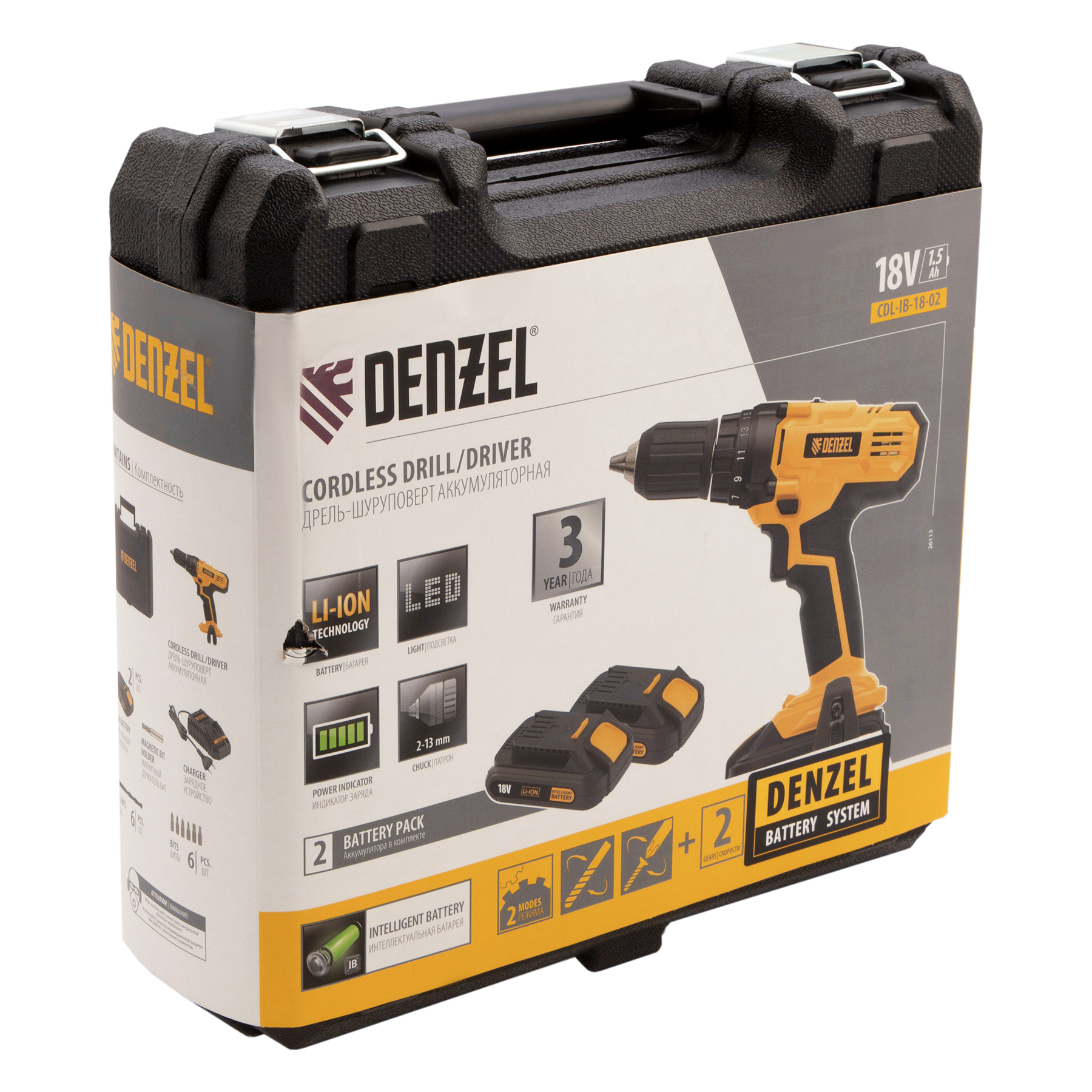 - Универсальность — аккумулятор 1,5 Ач Li-ion совместим с любым инструментом 18V Denzel battery system серии IB.