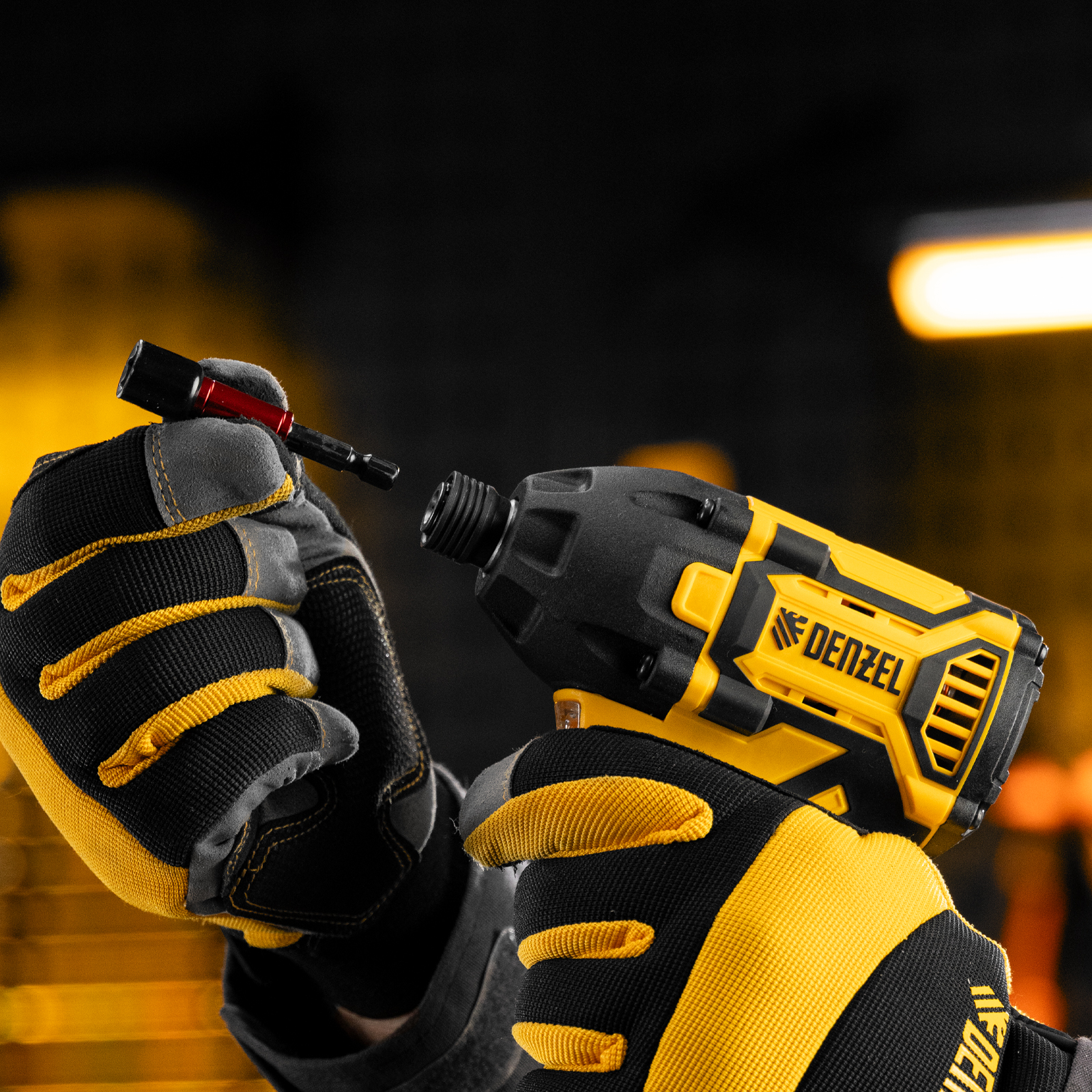 Аккумуляторный ударный винтоверт Denzel CIDH-BL-20-270 26514 с бесщеточным двигателем работает от аккумулятора Li-Ion 20 В и предназначен для работы с резьбовым крепежом: винтами, шурупами, гайками. Максимальный крутящий момент достигает 270 Н·м, что позволяет эффективно решать поставленные задачи. Частота вращения шпинделя плавно регулируется в пределах установленного диапазона путем изменения степени нажатия на клавишу выключателя — такое решение облегчает настройку оптимального режима работы. Ударный механизм позволяет успешно справляться с туго затянутым или заржавевшим крепежом.