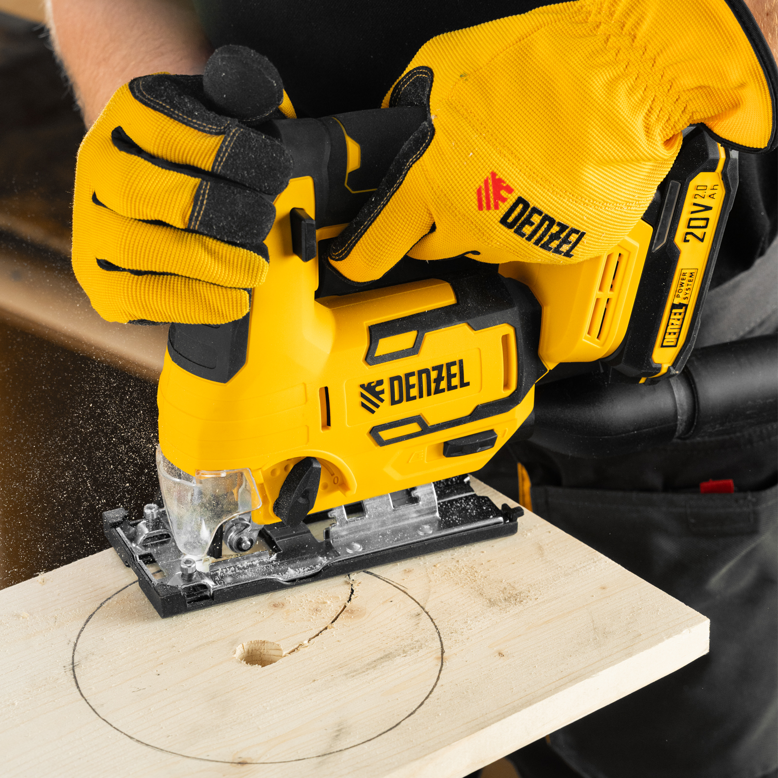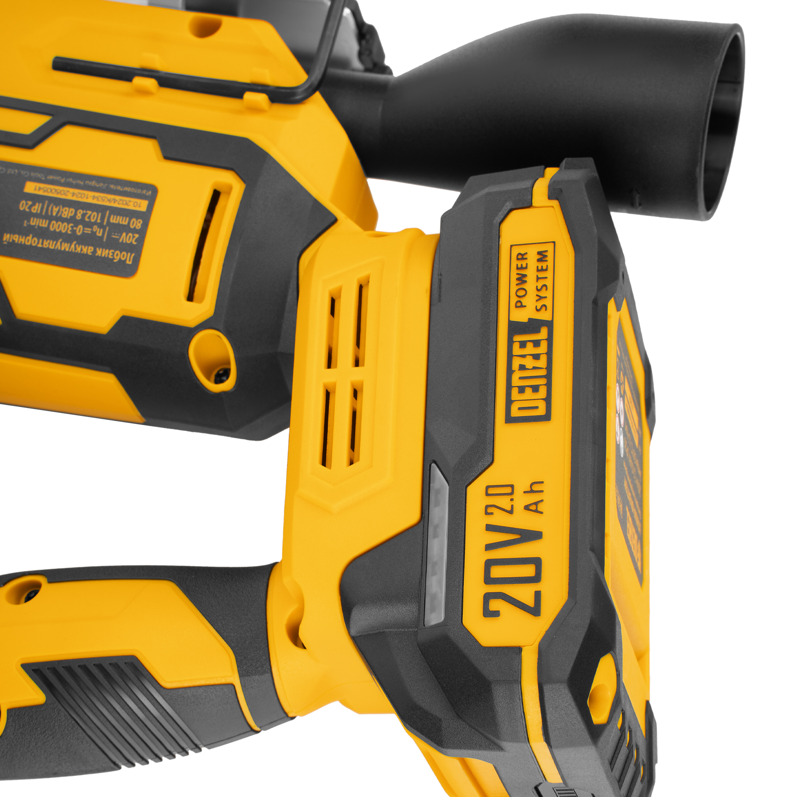- Универсальный источник питания — аккумулятор Li-Ion емкостью 2 А·ч совместим со всеми инструментами единой платформы Denzel Power System 20V.