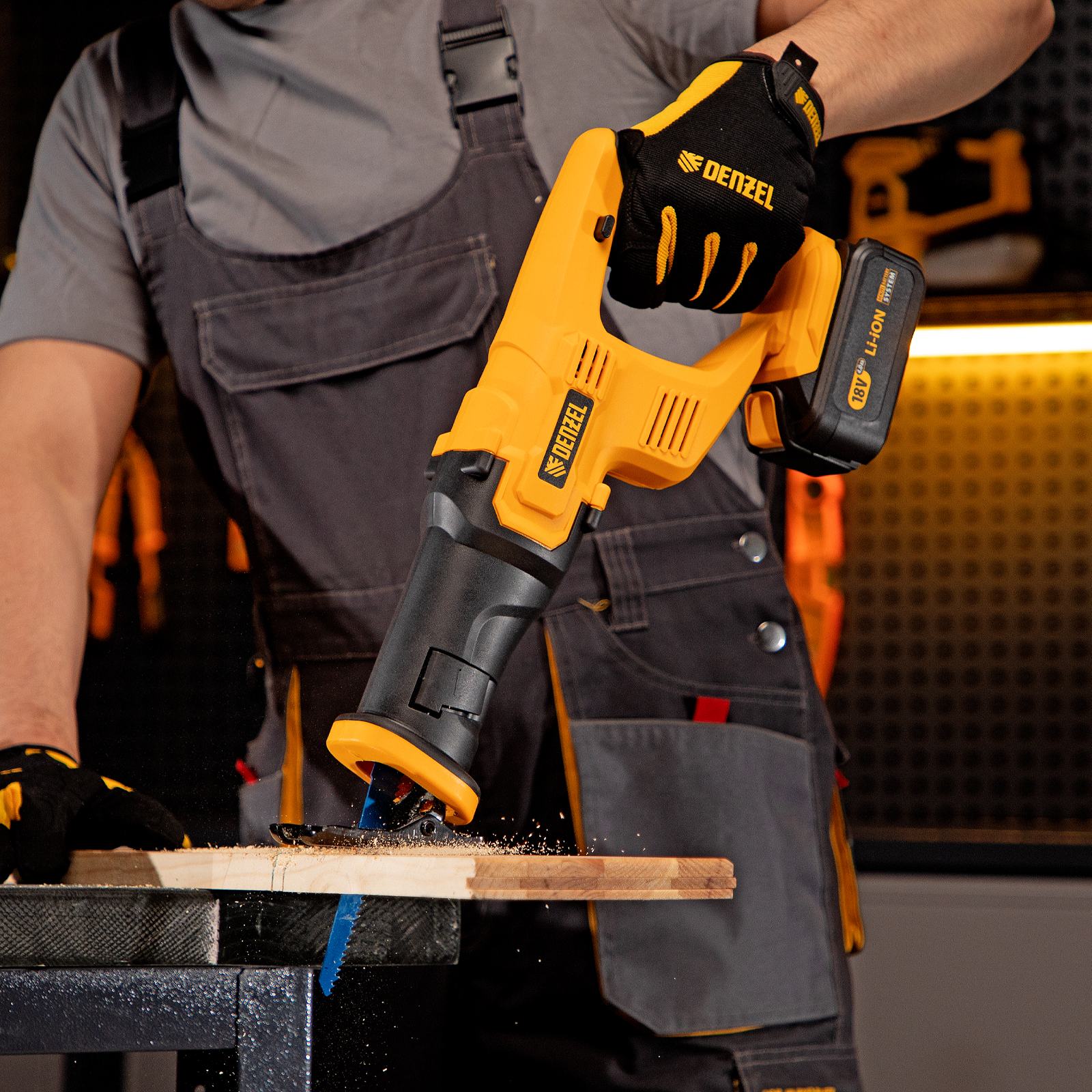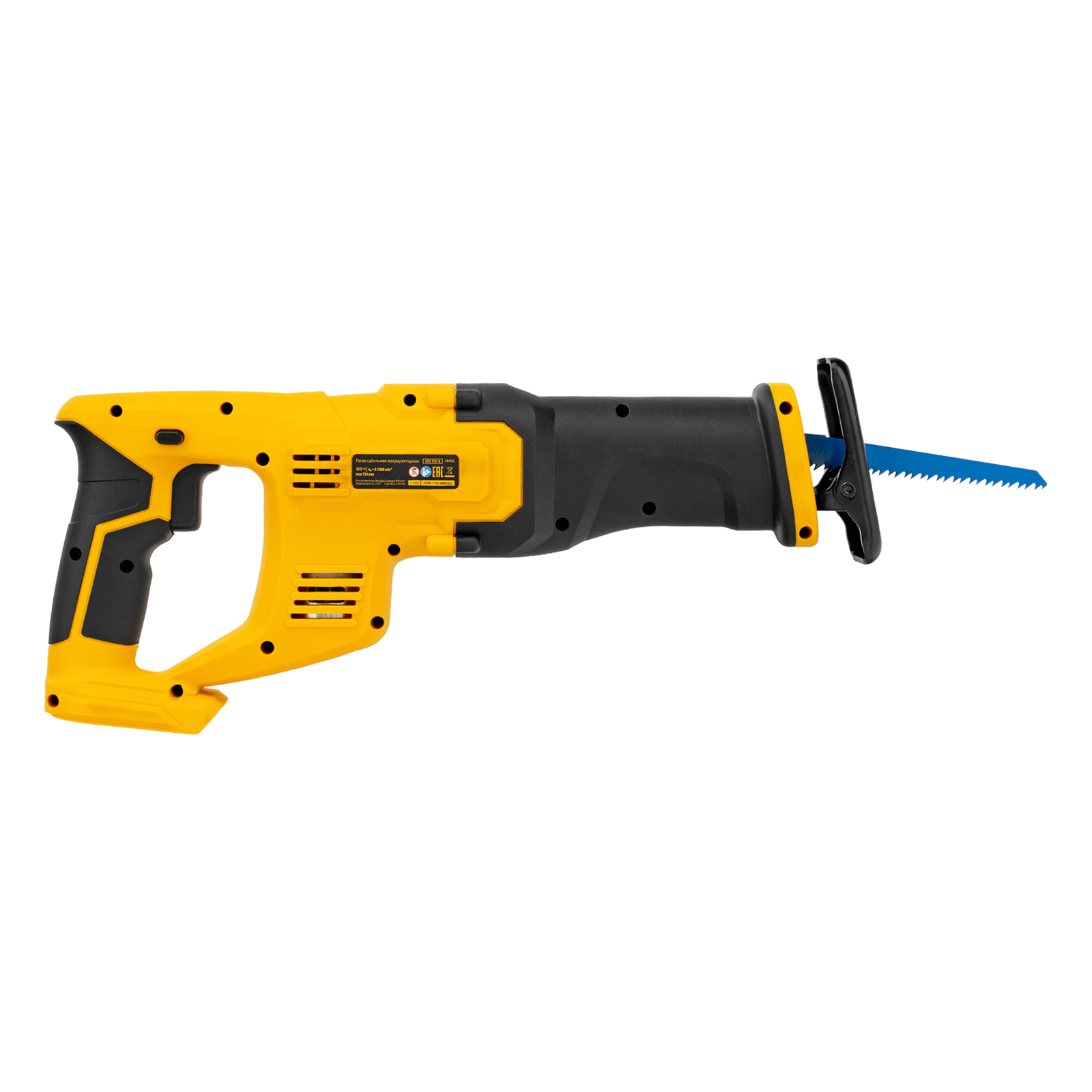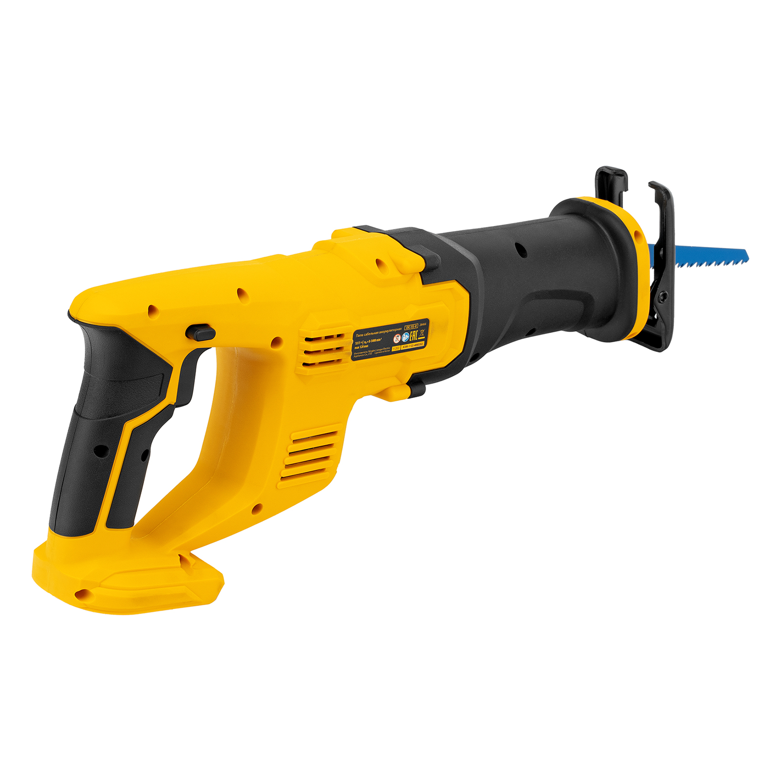 Сабельная аккумуляторная пила Denzel CRC-115-0 28466 работает от аккумулятора Li-Ion с рабочим напряжением 18 В. Предназначена для распила фанеры, досок, ДСП, ДВП, пластика, а также для обрезки веток. Максимальная глубина пропила в древесине составляет 115 мм, в стали — 10 мм. Оснастка совершает до 3000 ходов в минуту, что обеспечивает эффективную работу. ,Пила поставляется без аккумулятора и зарядного устройства, к ней подходит универсальный аккумулятор емкостью 4 А/ч, совместимый с любым инструментом единой платформы Denzel battery system 18V серии IB.