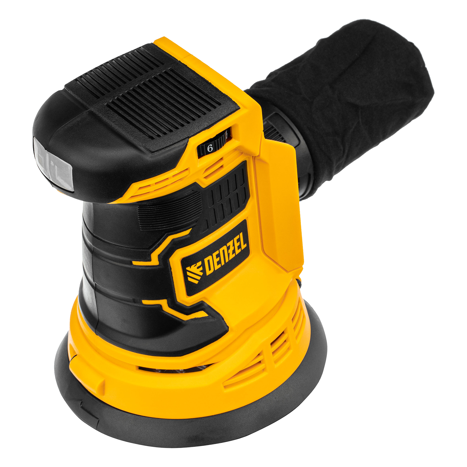 - Универсальность — к шлифовальной машине подходит аккумулятор 4Ач Li-ion, совместимый с любым инструментом 18V Denzel battery system серии IB (в комплект поставки не входит).