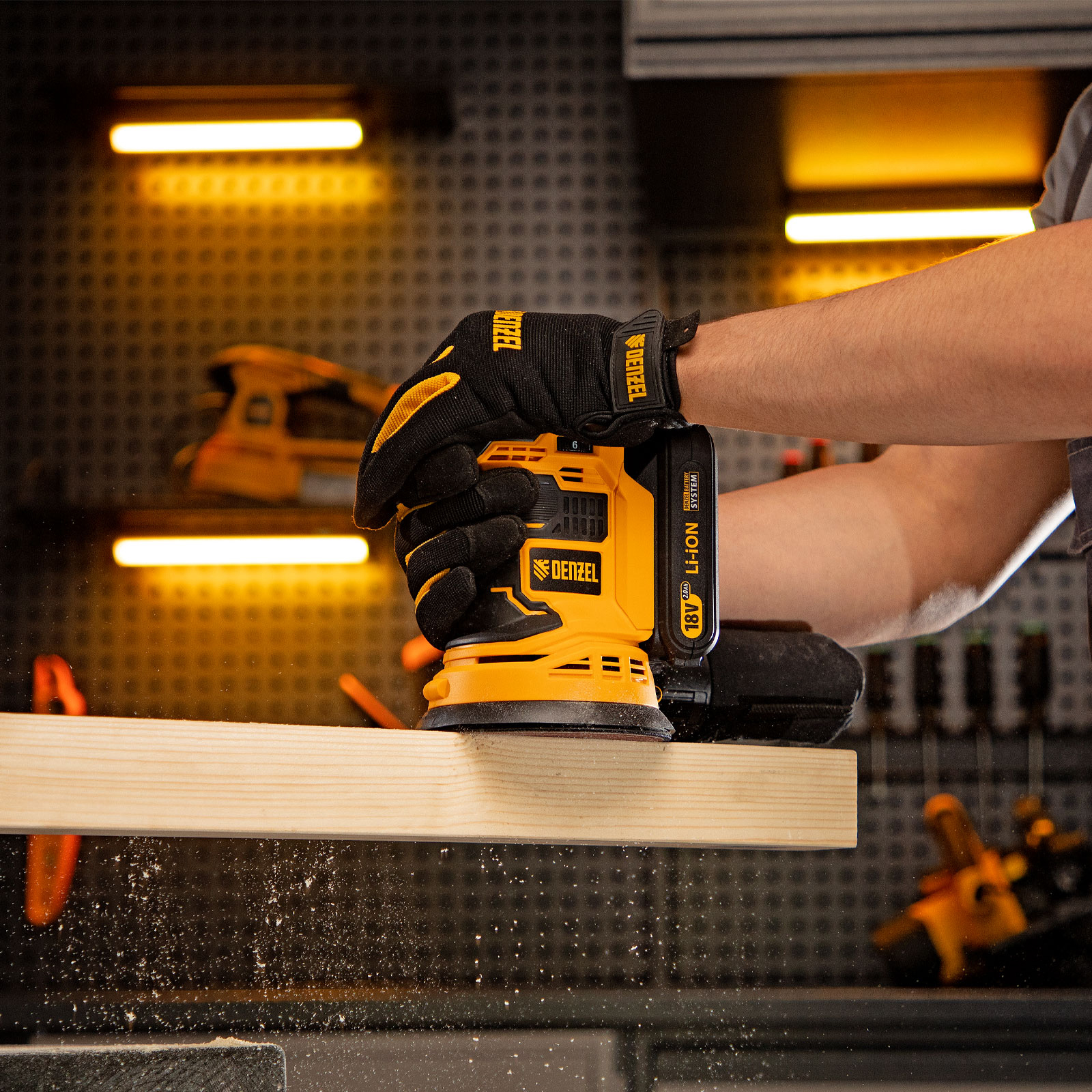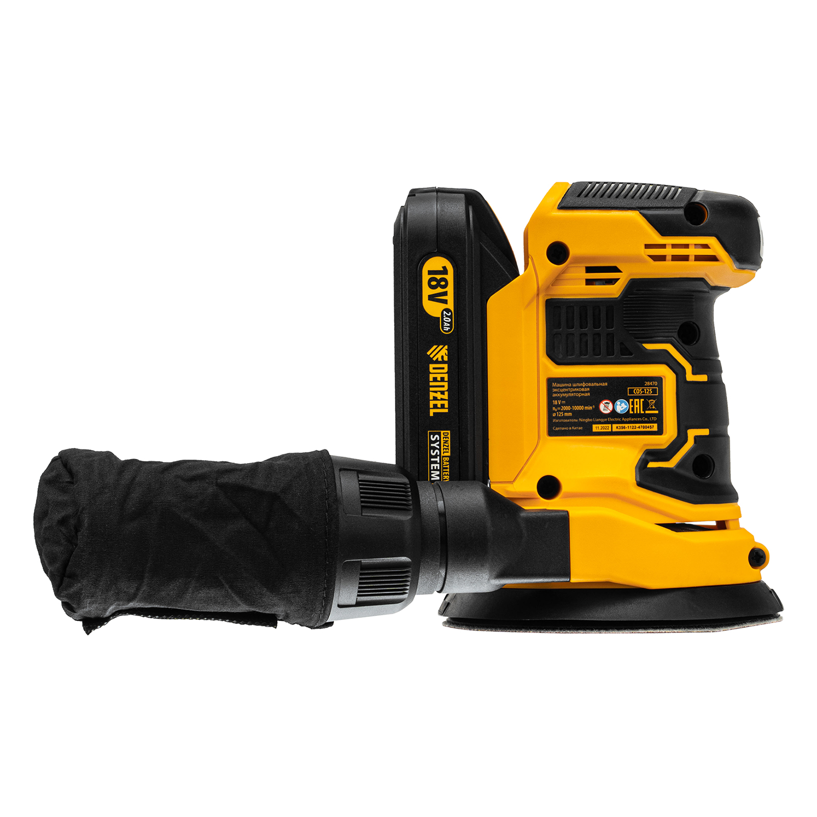 Аккумуляторная эксцентриковая шлифовальная машина Denzel COS-125 28470 работает от источника питания Li-Ion емкостью 2 А/ч, с рабочим напряжением 18 В. Предназначена для выполнения зачистных, шлифовальных и полировальных работ по древесине, металлу, пластику и камню. Применяется со шлифовальными и полировальными кругами диаметром 125 мм, скорость вращения составляет 2000-10000 об/мин, благодаря чему можно эффективно решать различные задачи.,Универсальный аккумулятор с интеллектуальной системой распознавания нагрузки совместим со всеми инструментами единой платформы Denzel battery system 18V серии IB.
