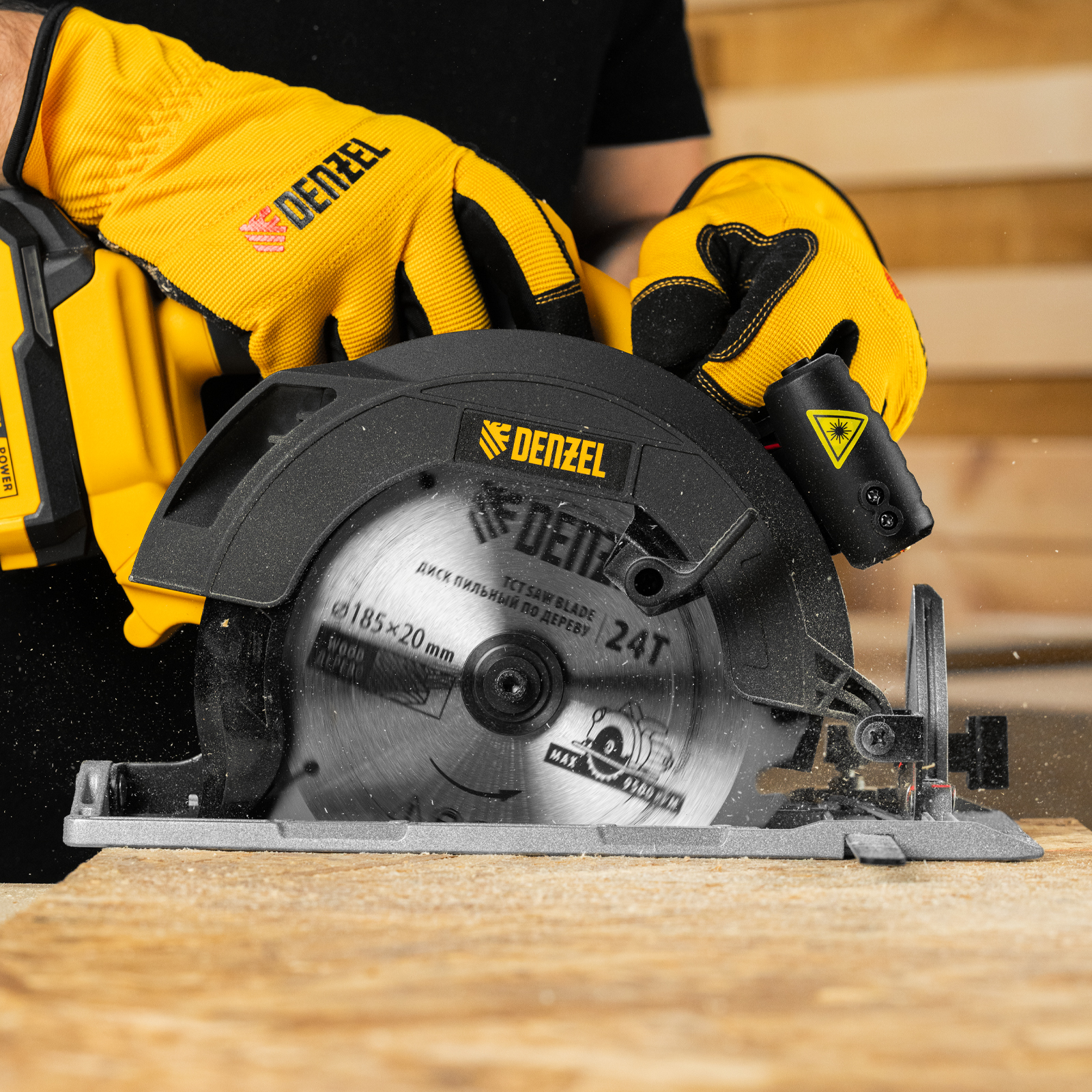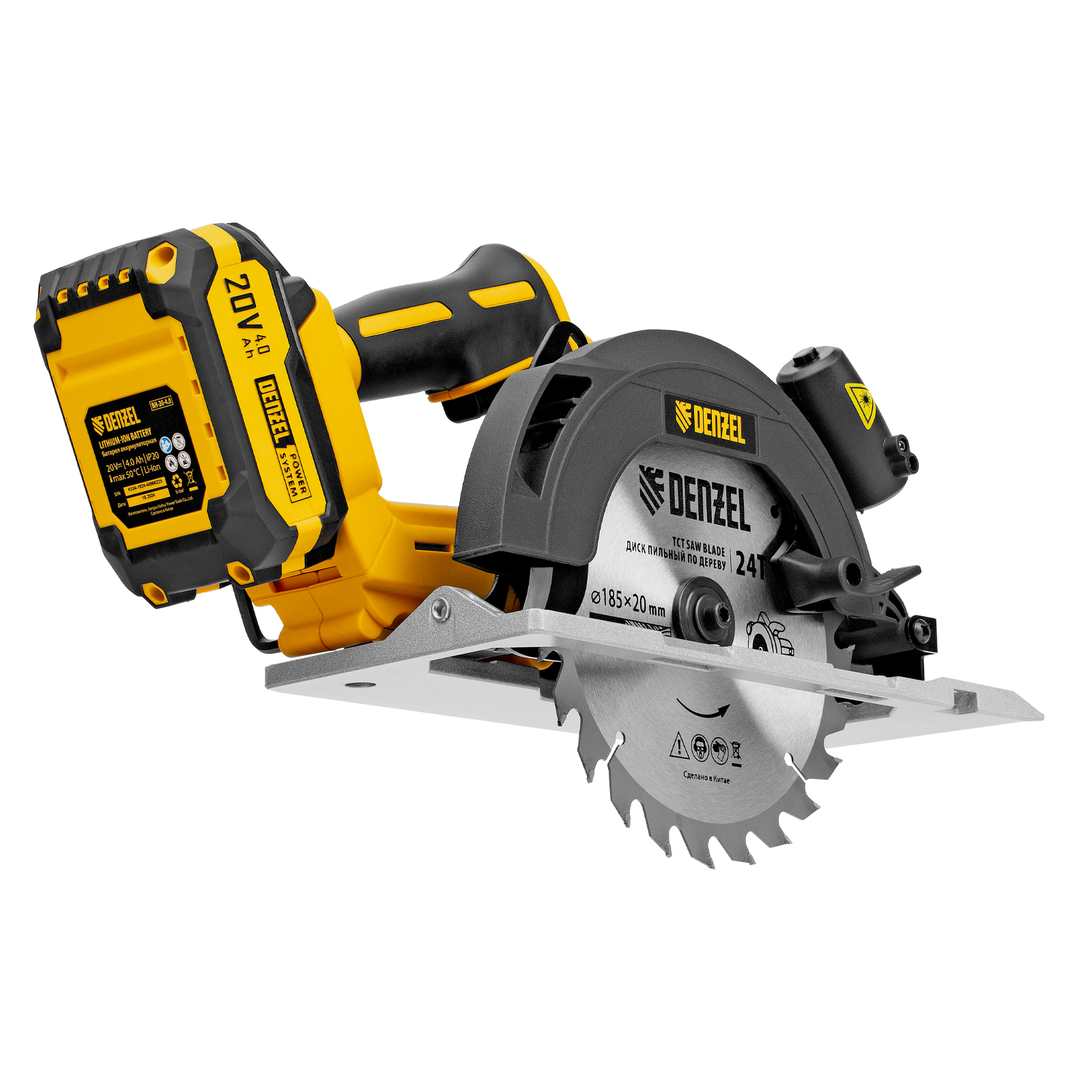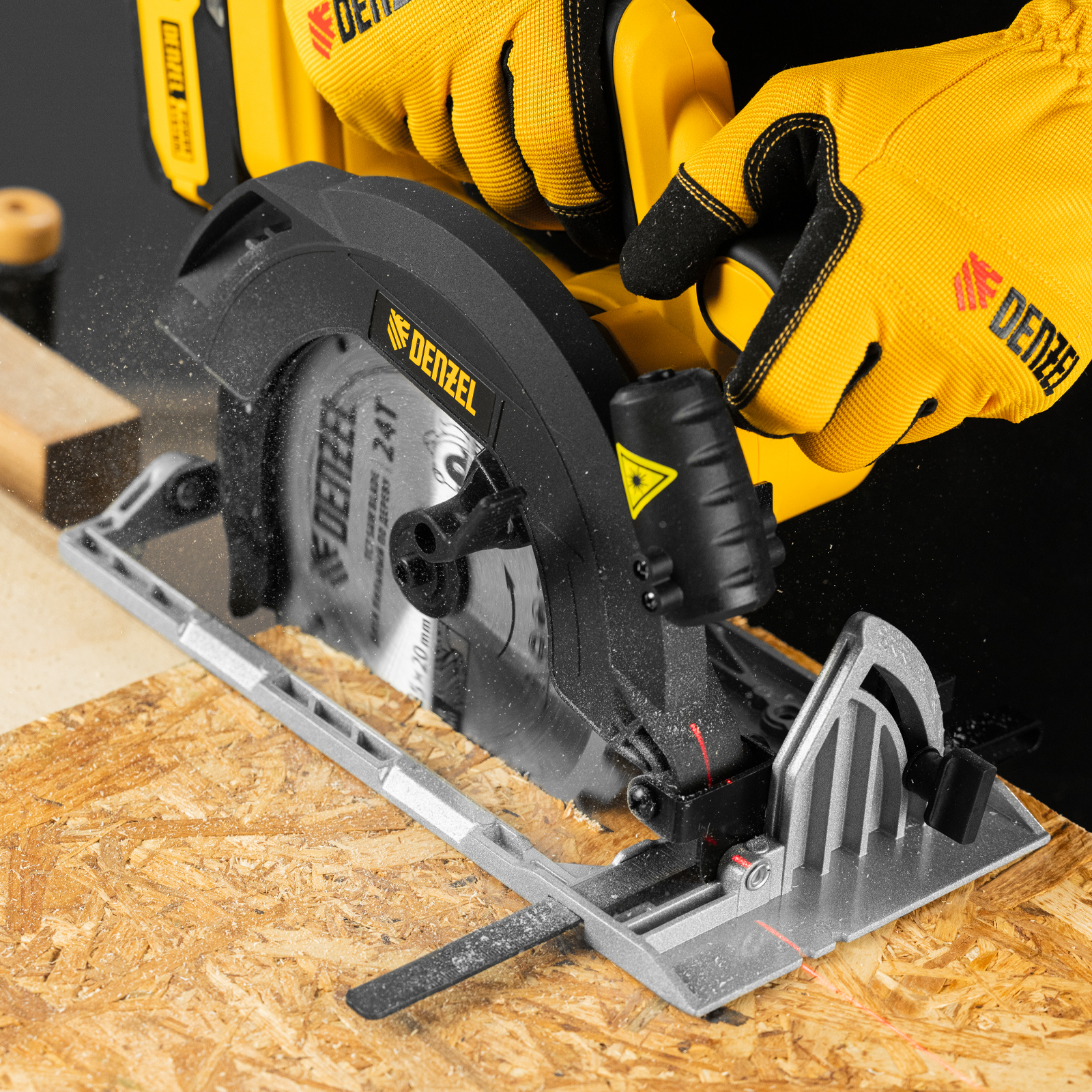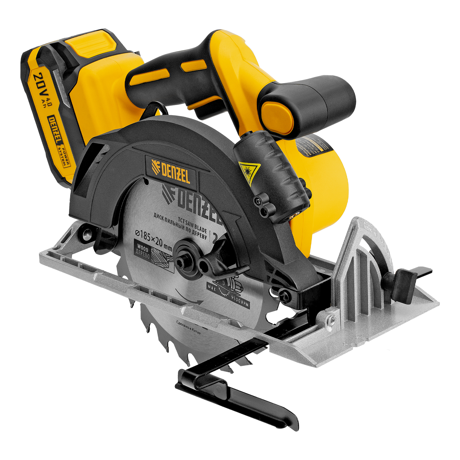 Циркулярная аккумуляторная пила Denzel CCSH-BL-20-185 27409 с бесщеточным двигателем работает от источника питания Li-Ion 20 В и предназначена для распиливания древесины при помощи пильных дисков диаметром 185 мм. При использовании специальной оснастки может использоваться также для работы с алюминиевыми заготовками. Надежный бесщеточный двигатель поддерживает частоту вращения шпинделя 4000 об/мин и обеспечивает стабильно высокую производительность в течение всего срока службы инструмента. Двигатель не требует сложного обслуживания, что упрощает уход за пилой. Максимальная глубина пропила под углом 90° составляет 65 мм, под углом 45° — 45 мм. Циркулярная пила рекомендована для решения различных задач в быту.