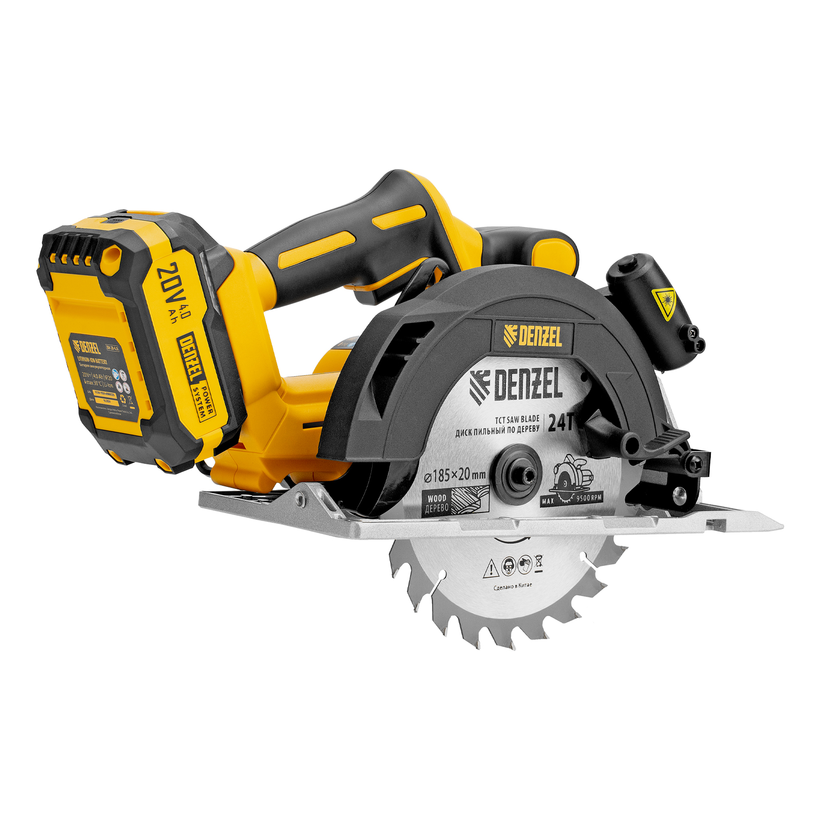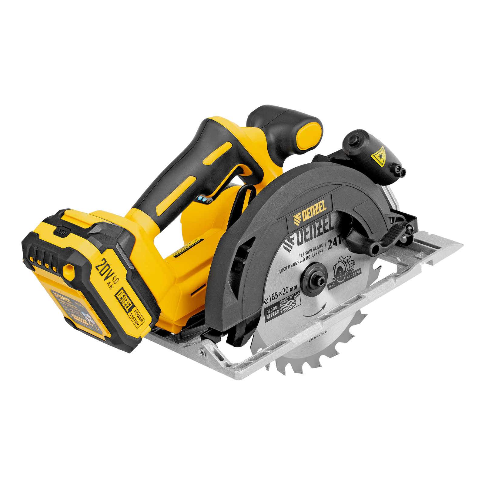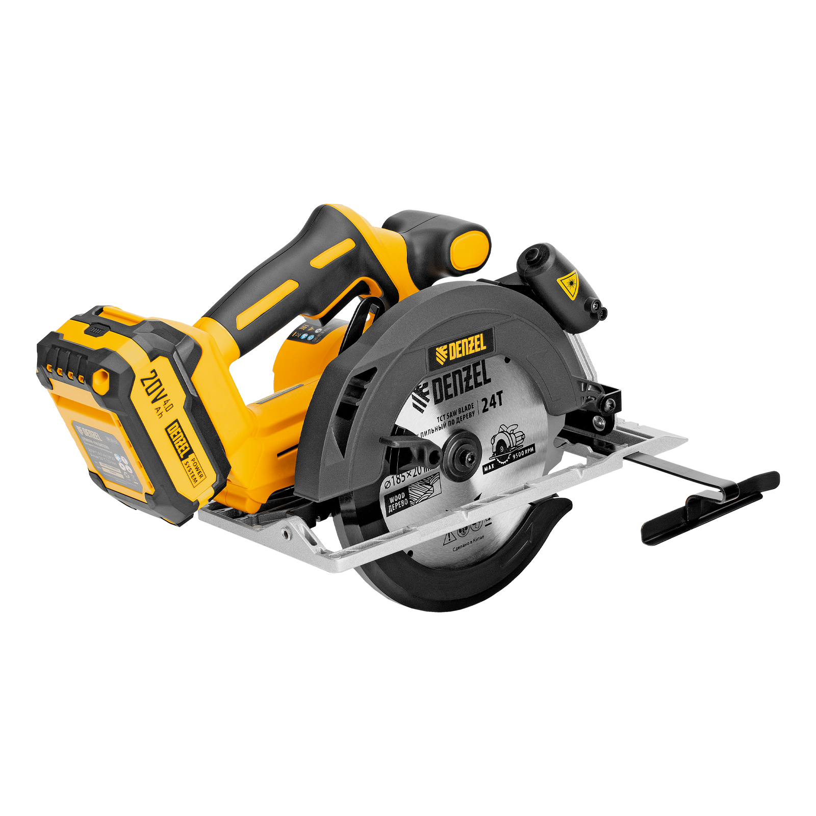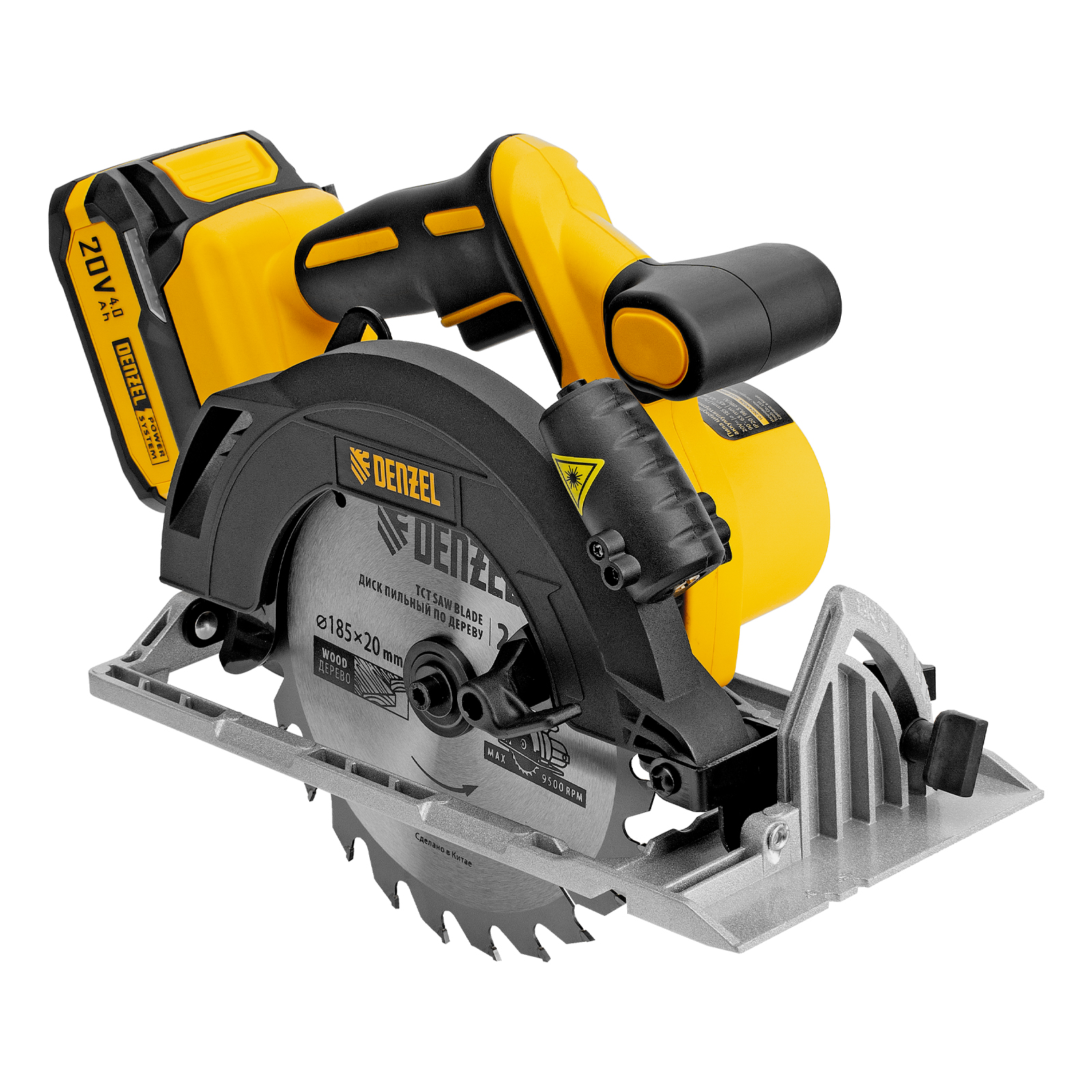Циркулярная аккумуляторная пила Denzel CCSH-BL-20-185 27409 с бесщеточным двигателем работает от источника питания Li-Ion 20 В и предназначена для распиливания древесины при помощи пильных дисков диаметром 185 мм. При использовании специальной оснастки может использоваться также для работы с алюминиевыми заготовками. Надежный бесщеточный двигатель поддерживает частоту вращения шпинделя 4000 об/мин и обеспечивает стабильно высокую производительность в течение всего срока службы инструмента. Двигатель не требует сложного обслуживания, что упрощает уход за пилой. Максимальная глубина пропила под углом 90° составляет 65 мм, под углом 45° — 45 мм. Циркулярная пила рекомендована для решения различных задач в быту.