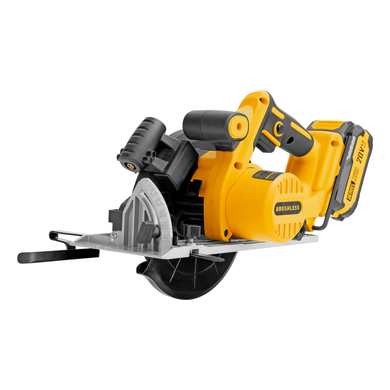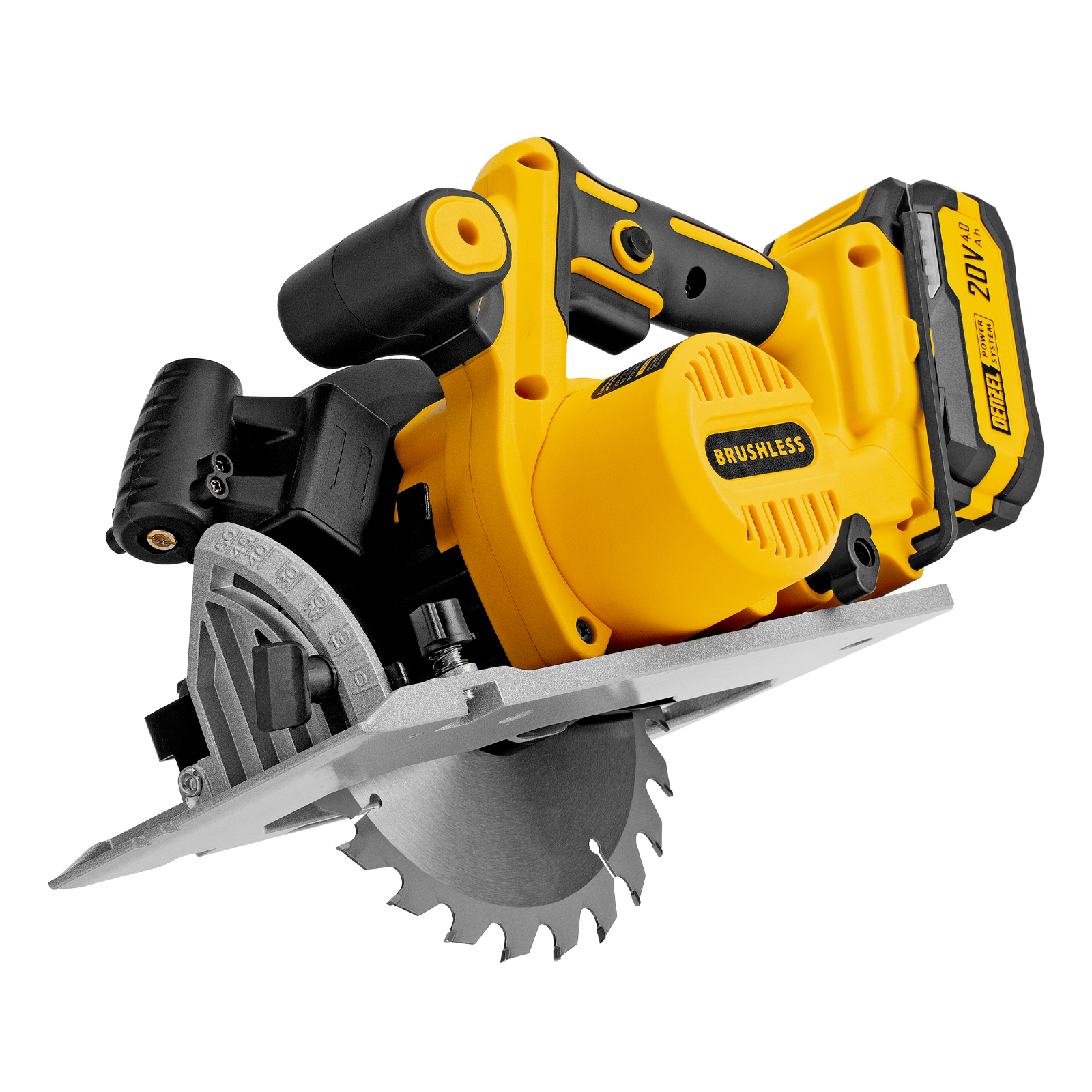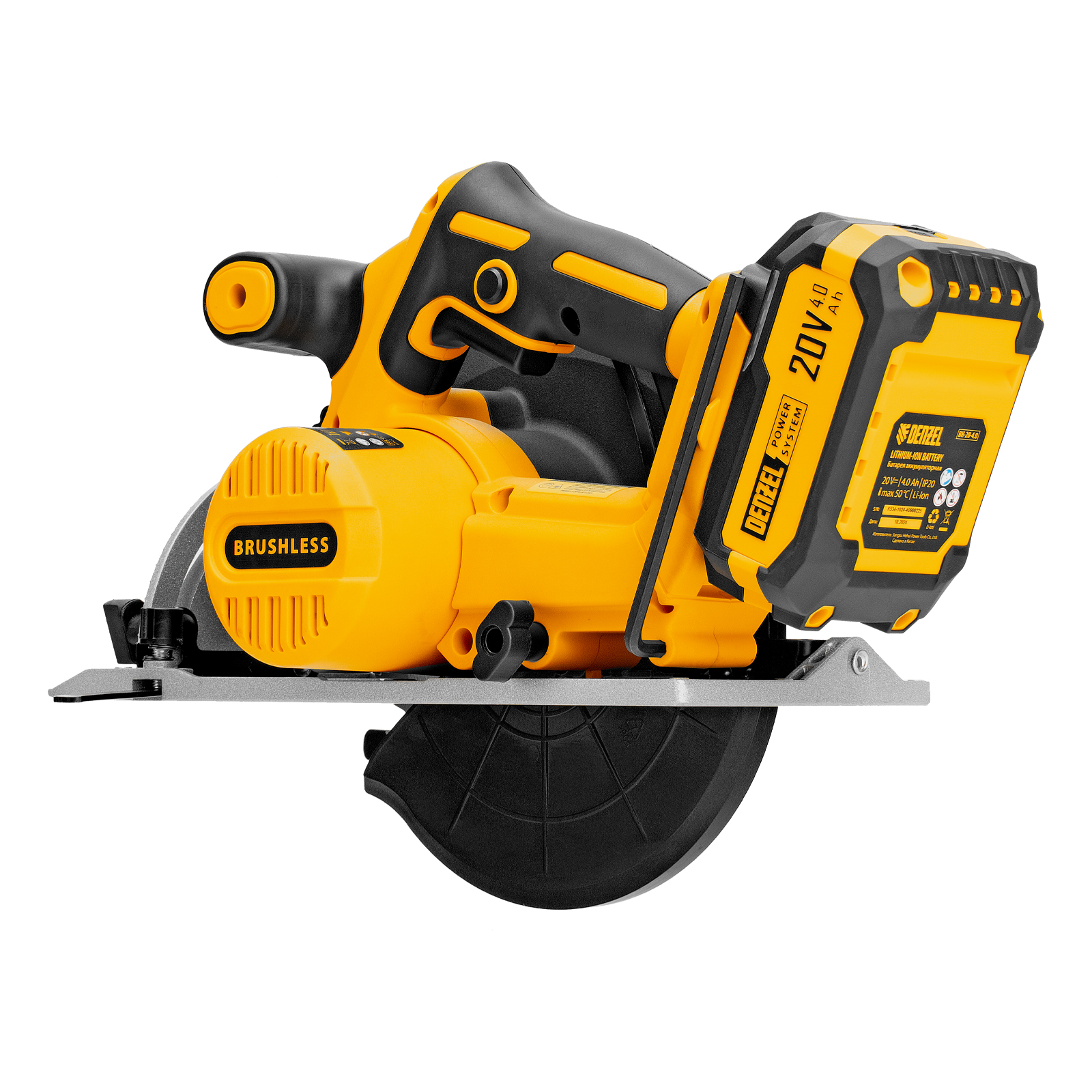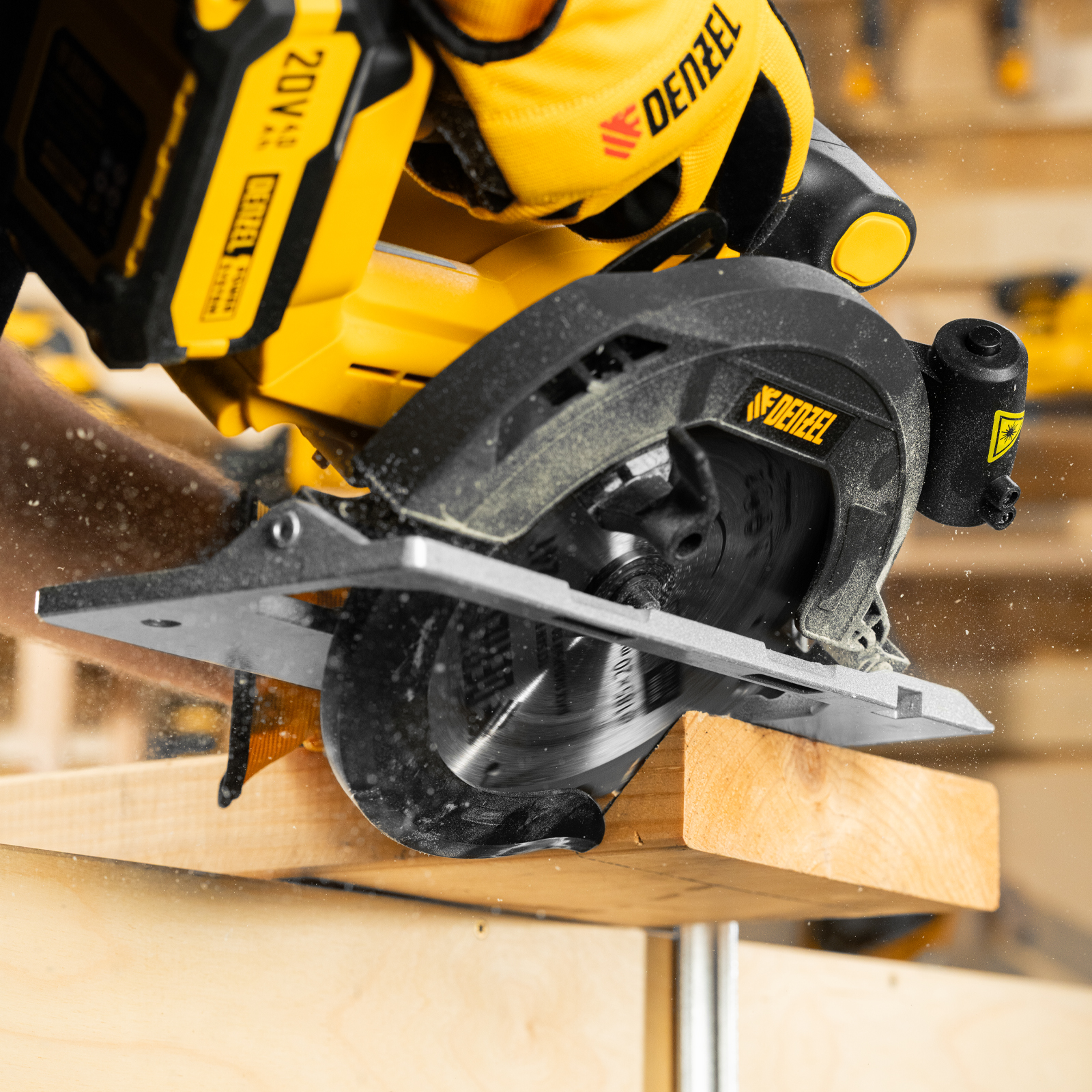 Циркулярная аккумуляторная пила Denzel CCSH-BL-20-185 27409 с бесщеточным двигателем работает от источника питания Li-Ion 20 В и предназначена для распиливания древесины при помощи пильных дисков диаметром 185 мм. При использовании специальной оснастки может использоваться также для работы с алюминиевыми заготовками. Надежный бесщеточный двигатель поддерживает частоту вращения шпинделя 4000 об/мин и обеспечивает стабильно высокую производительность в течение всего срока службы инструмента. Двигатель не требует сложного обслуживания, что упрощает уход за пилой. Максимальная глубина пропила под углом 90° составляет 65 мм, под углом 45° — 45 мм. Циркулярная пила рекомендована для решения различных задач в быту.