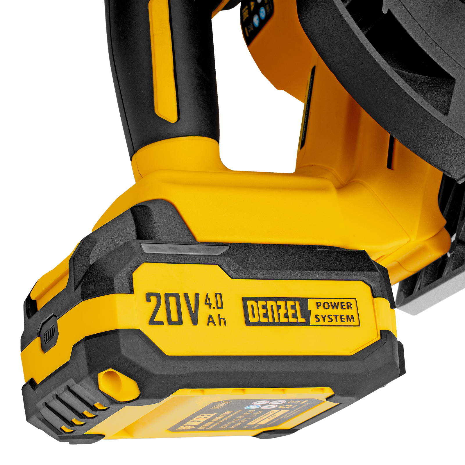 - Универсальный источник питания — аккумулятор Li-Ion емкостью 4 А·ч совместим со всеми инструментами единой платформы Denzel Power System 20V.