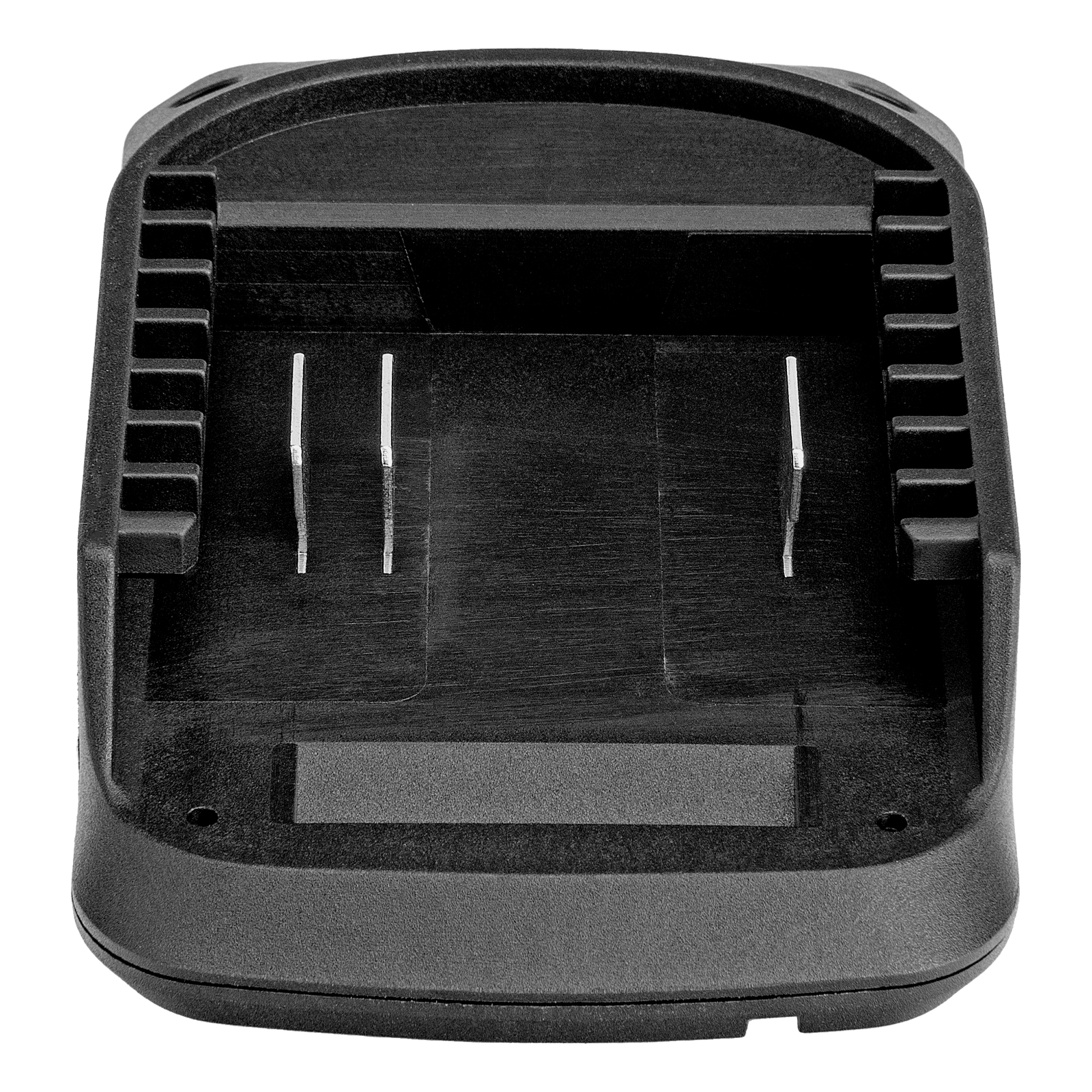 - Простое использование — достаточно присоединить верхнюю часть адаптера к инструменту или зарядному устройству платформы Denzel Power System 18 V, а на нижнюю часть установить аккумулятор Denzel 20 V.