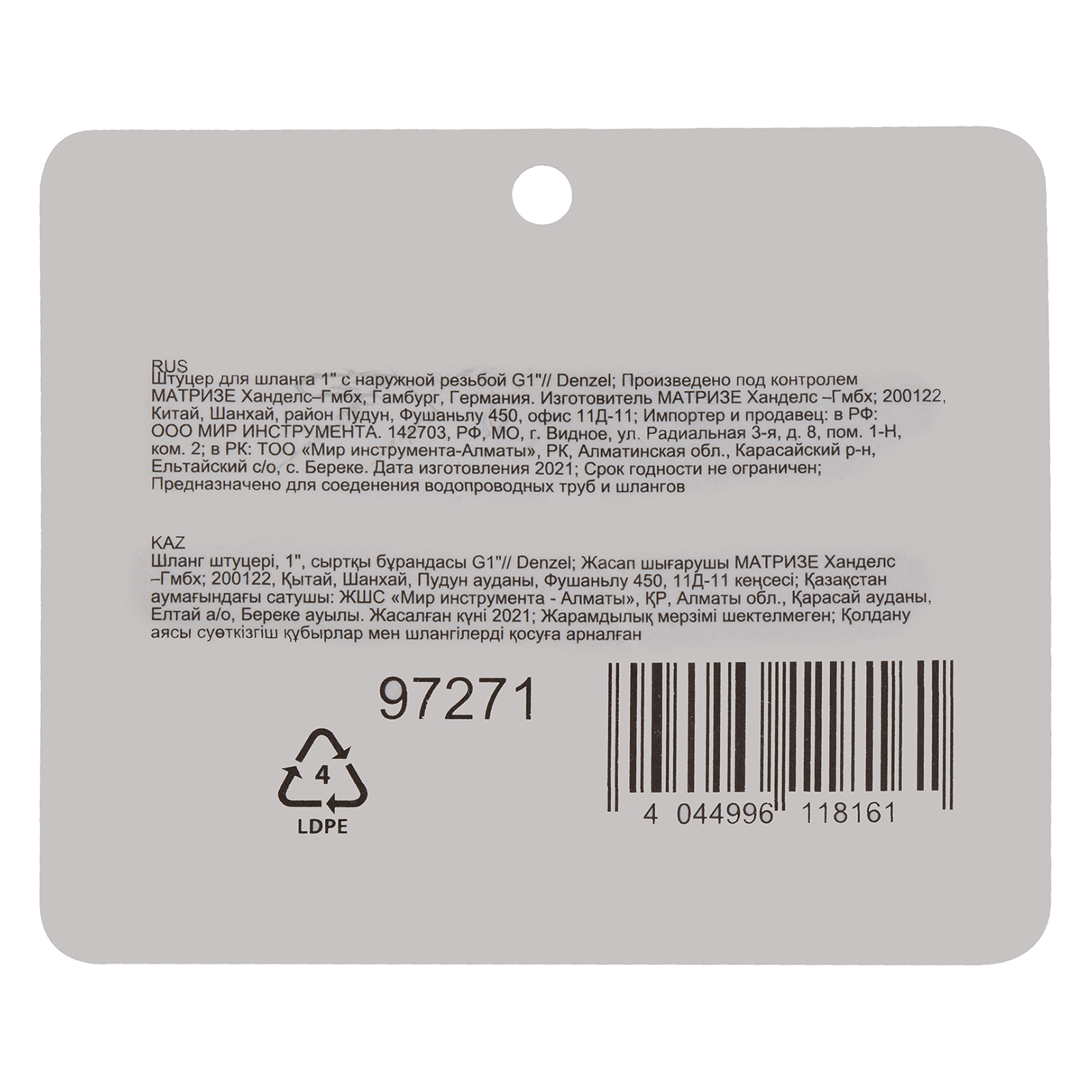 Штуцер Denzel 97271 с наружной резьбой G1 предназначен для плотного соединения насоса или насосной станции с садовым шлангом диаметром 1 дюйм. Используется для организации системы откачки воды или полива на дачном участке.