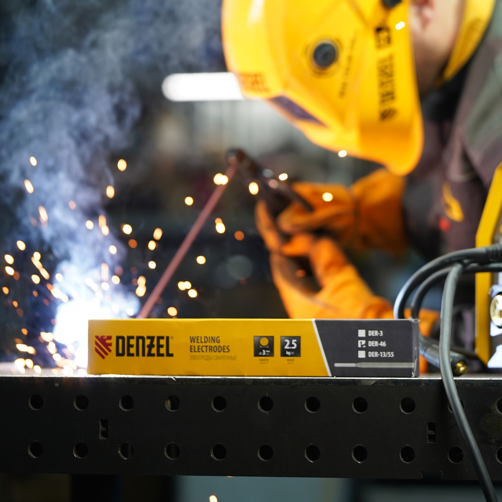 Электроды Denzel 97504 марки DER-46, диаметром 3 мм, с рутиловым покрытием красного цвета, 2,5 кг в упаковке, предназначены для ручной дуговой сварки деталей из углеродистых и низколегированных конструкционных сталей толщиной до 5 мм при максимальном токе 140 А. Позволяют получать швы, устойчивые к вибрациям и воздействию агрессивных сред. Толщина обмазки выше, чем у аналогичных электродов других торговых марок, что обеспечивает высокое качество шва. Электроды подходят для создания нахлестных, угловых и стыковых соединений в рядовых конструкциях, потолочных и вертикальных швов, оптимальны для сварки газовых и водопроводных труб с низким давлением.
