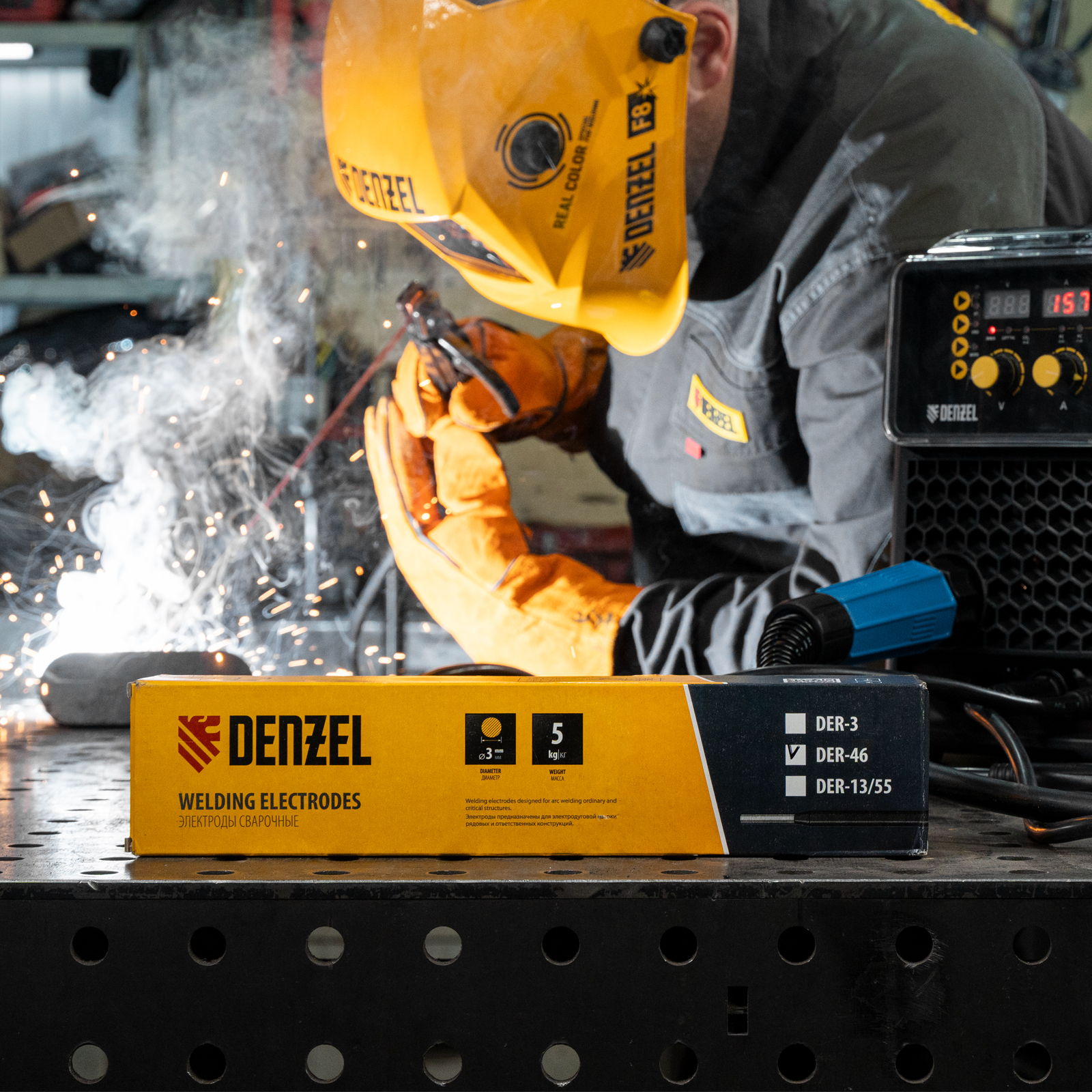 Электроды Denzel DER-46 97515 диаметром 3 мм, с рутиловым покрытием красного цвета, 5 кг в упаковке, предназначены для ручной дуговой сварки деталей из углеродистых сталей и низколегированных конструкционных сталей при максимальном токе 140 А. Подходят для заготовок толщиной до 5 мм. Удобны для работы короткими швами, т.к. обеспечивают быстрый первичный и повторный поджиг дуги. Электроды подходят для создания нахлестных, угловых и стыковых соединений в рядовых конструкциях, потолочных и вертикальных швов, оптимальны для сварки газовых и водопроводных труб с низким давлением.