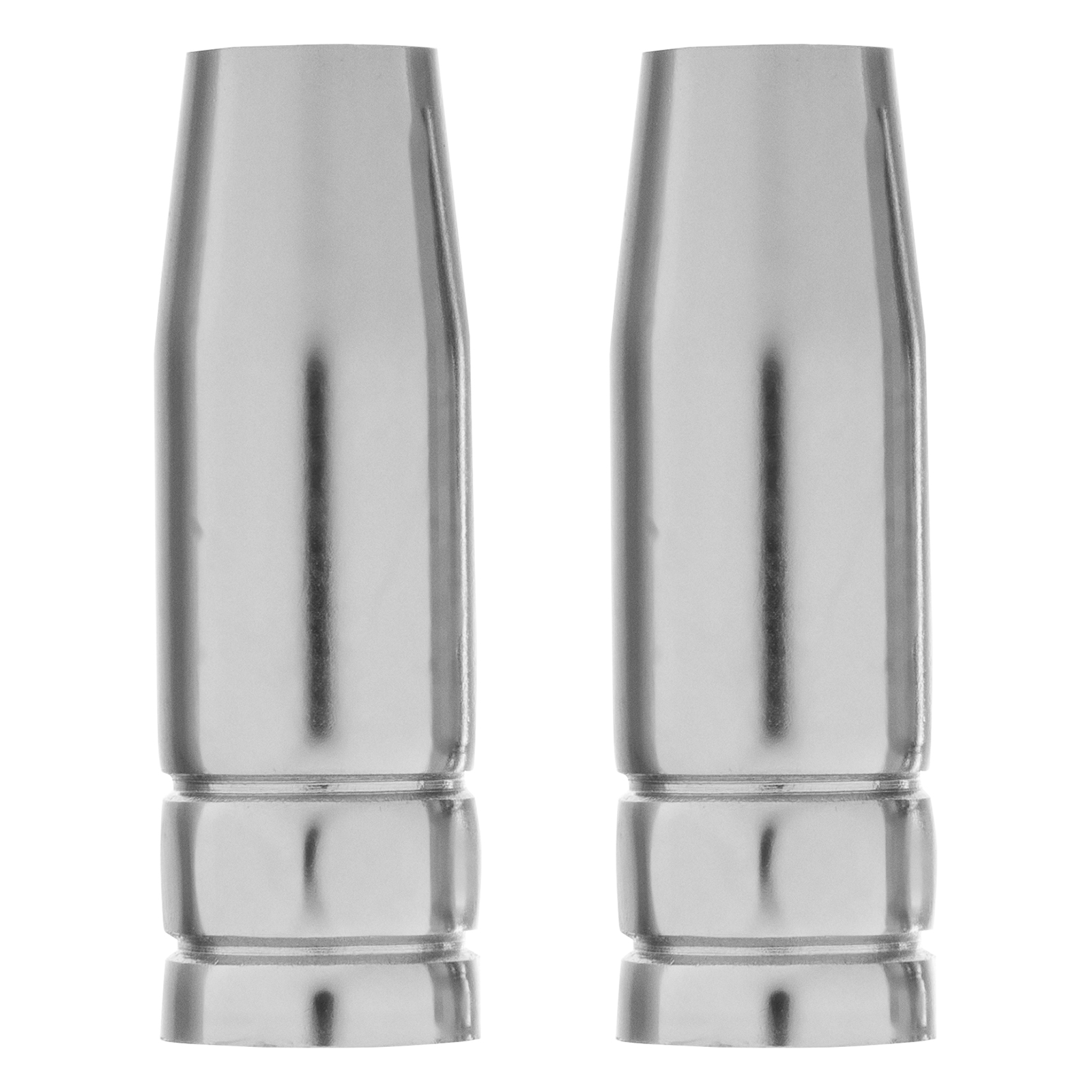 Газовое сопло Denzel 93646 диаметром 12 мм и длиной 53 мм, 2 шт. в упаковке, совместимо с MIG-горелками типа 15, в том числе с моделью Denzel 93641. Позволяет восстановить работоспособность горелки в случае изнашивания установленной детали. Подходит для проведения полуавтоматической сварки.