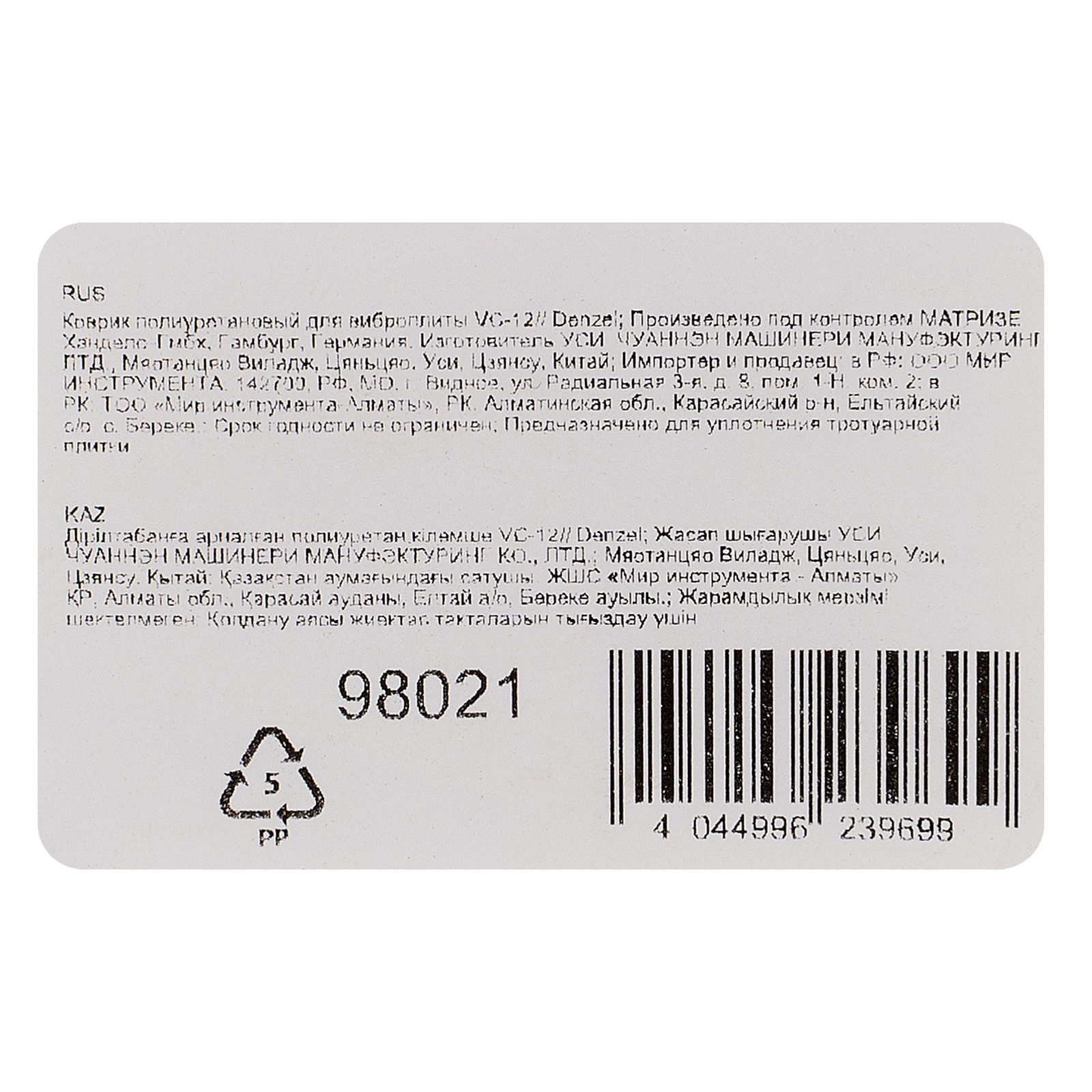 Полиуретановый коврик Denzel 98021 предназначен для установки на виброплиту Denzel VC-12. Используется во время укладки тротуарной плитки. Обеспечивает бережное уплотнение на любых поверхностях.