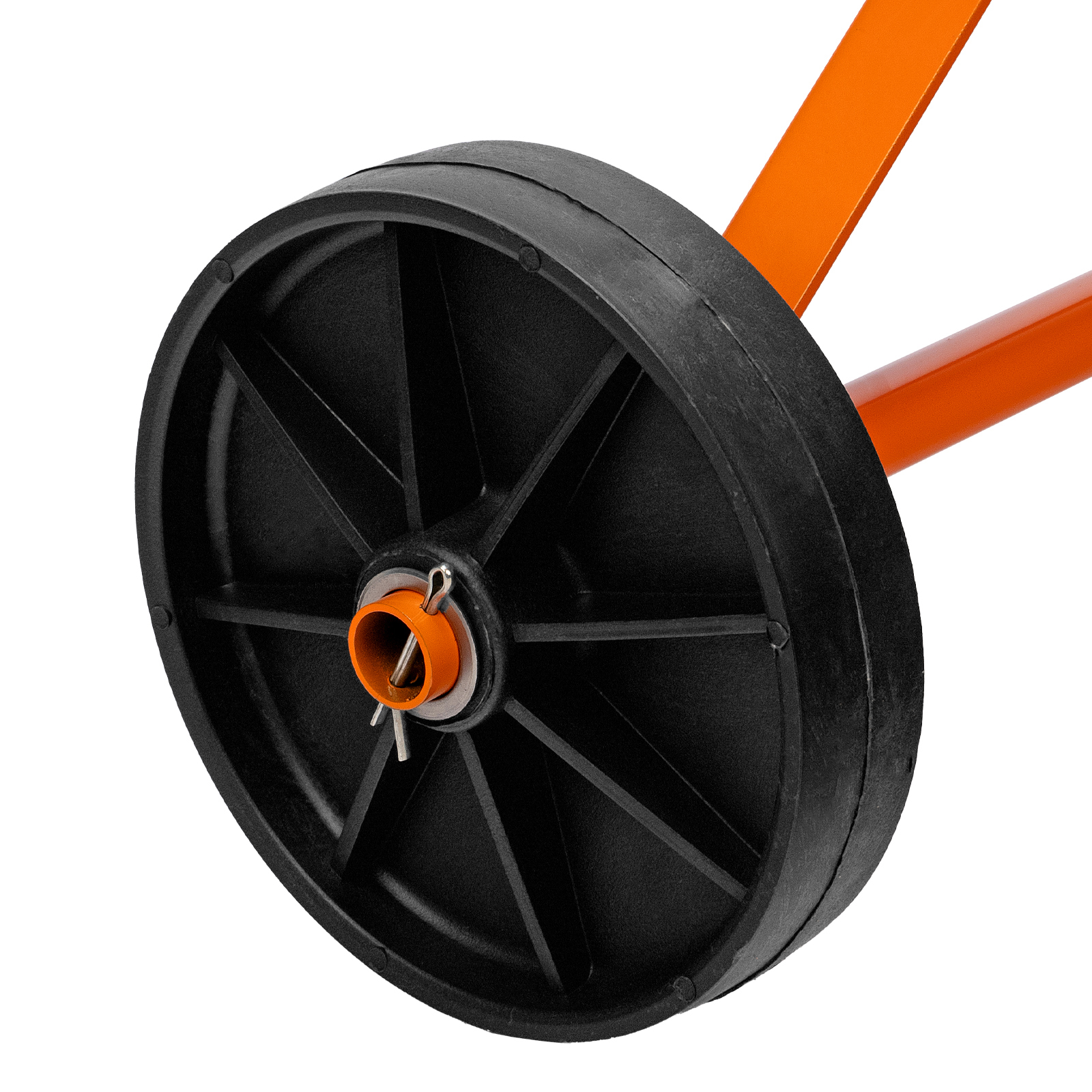 - Мобильность — маневренные колеса из прочного пластика облегчают перемещение бетоносмесителя по неровной земле, что особенно удобно на строительной площадке.