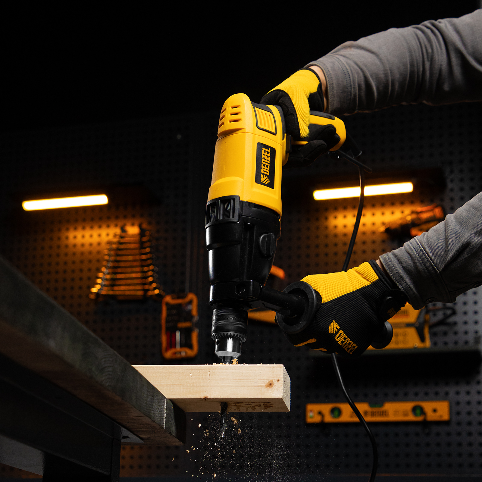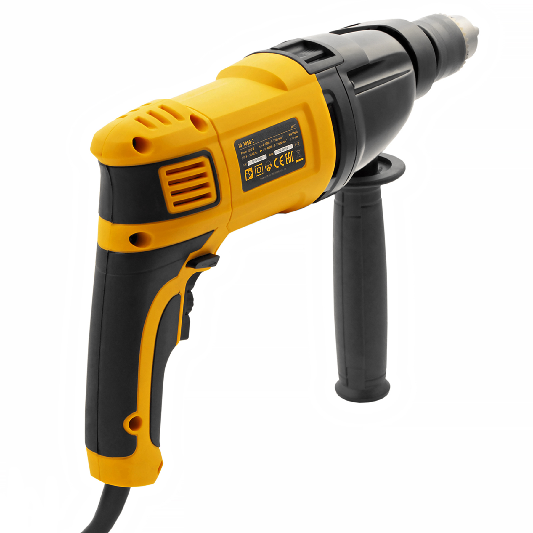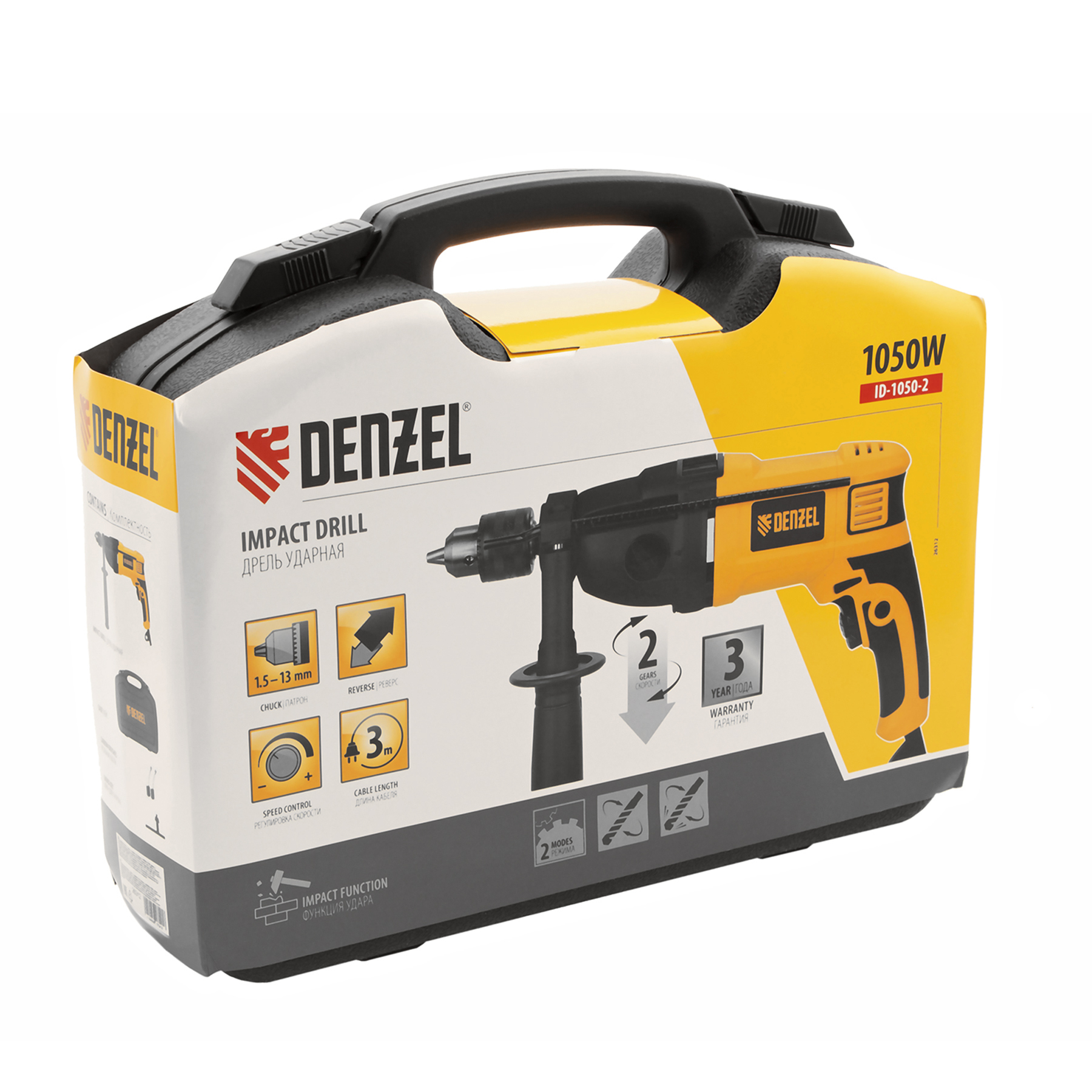 Ударная дрель Denzel ID-1050-2 26312 мощностью 1050 Вт, поддерживает 2 скорости вращения оснастки 0-3000/0-1100 об/мин и частоту ударов 0-48000/0-17600 уд/мин. Используется для ручного или ударного сверления металла, древесины, легкого бетона, кирпича, плитки или пластика. Сверлит отверстия диаметром до 25 мм в древесине, до 13 мм в бетоне и до 13 мм в металле. Эффективное сверление твердых материалов обеспечивает массивный промщит ударного механизма. Дрель работает со сверлами с диаметром хвостовика 1,5-13 мм, что позволяет эффективно решать различные задачи.