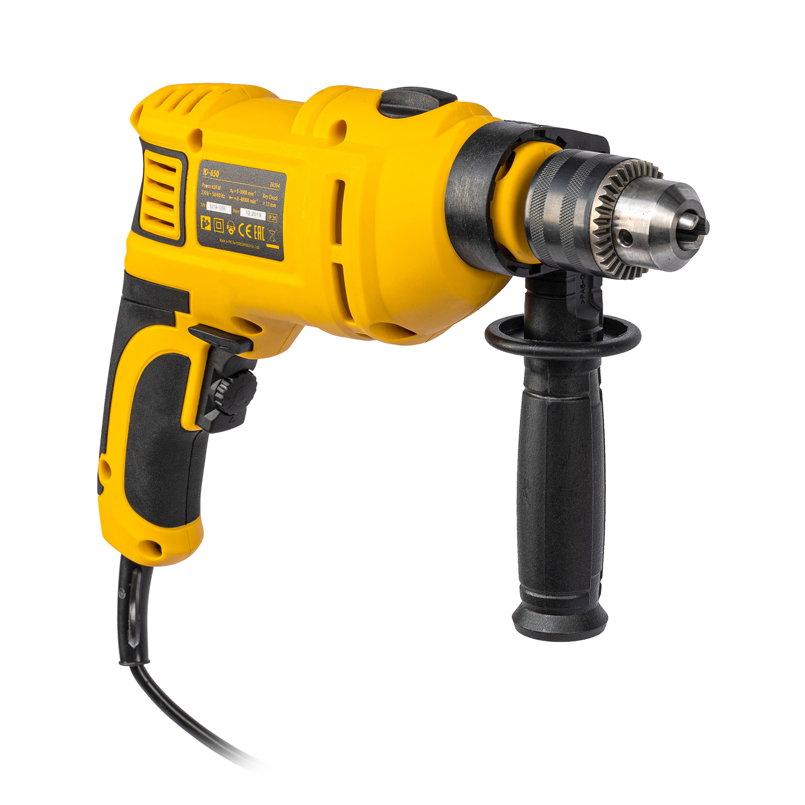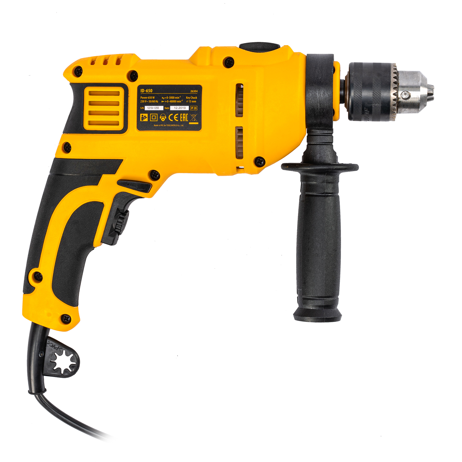 Ударная дрель Denzel ID-650 26304 мощностью 650 Вт поддерживает скорость вращения оснастки 0-3000 об/мин и частоту ударов 48000 уд/мин. Используется для ручного или ударного сверления металла, древесины, легкого бетона, кирпича, плитки или пластика. Сверлит отверстия диаметром до 25 мм в древесине, до 13 мм в бетоне и до 13 мм в металле. Эффективное сверление твердых материалов обеспечивает массивный промщит ударного механизма. Дрель работает со сверлами с диаметром хвостовика 1,5-13 мм, что позволяет эффективно решать различные задачи.