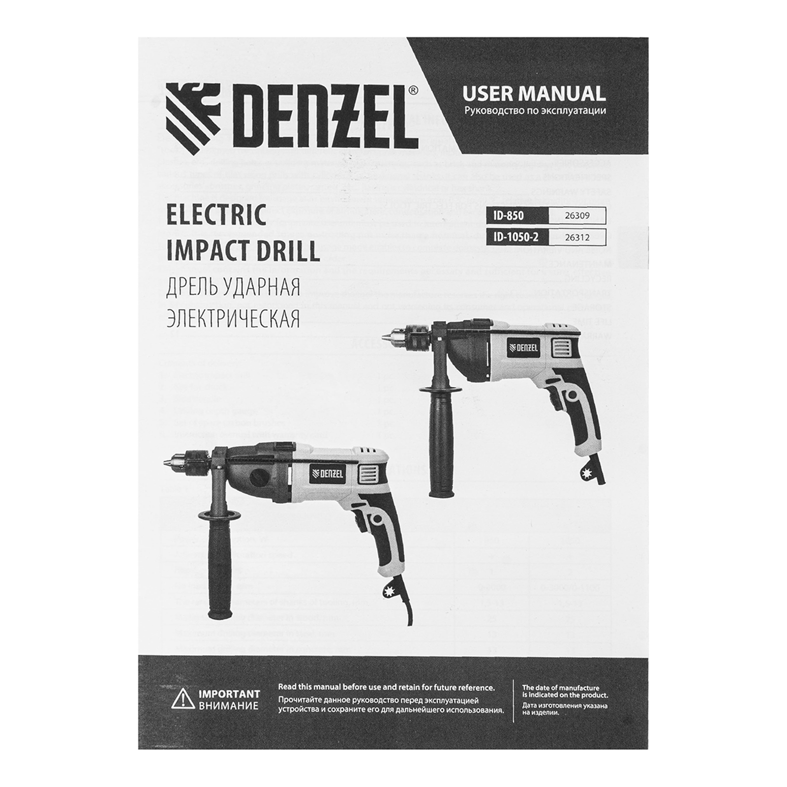 Ударная дрель Denzel ID-850 26309 мощностью 850 Вт поддерживает скорость вращения оснастки 0-3000 об/мин и частоту ударов 48000 уд/мин. Используется для ручного или ударного сверления металла, древесины, легкого бетона, кирпича, плитки или пластика. Сверлит отверстия диаметром до 25 мм в древесине, до 13 мм в бетоне и до 13 мм в металле. Эффективное сверление твердых материалов обеспечивает массивный промщит ударного механизма. Дрель работает со сверлами с диаметром хвостовика 1,5-13 мм, что позволяет эффективно решать различные задачи.